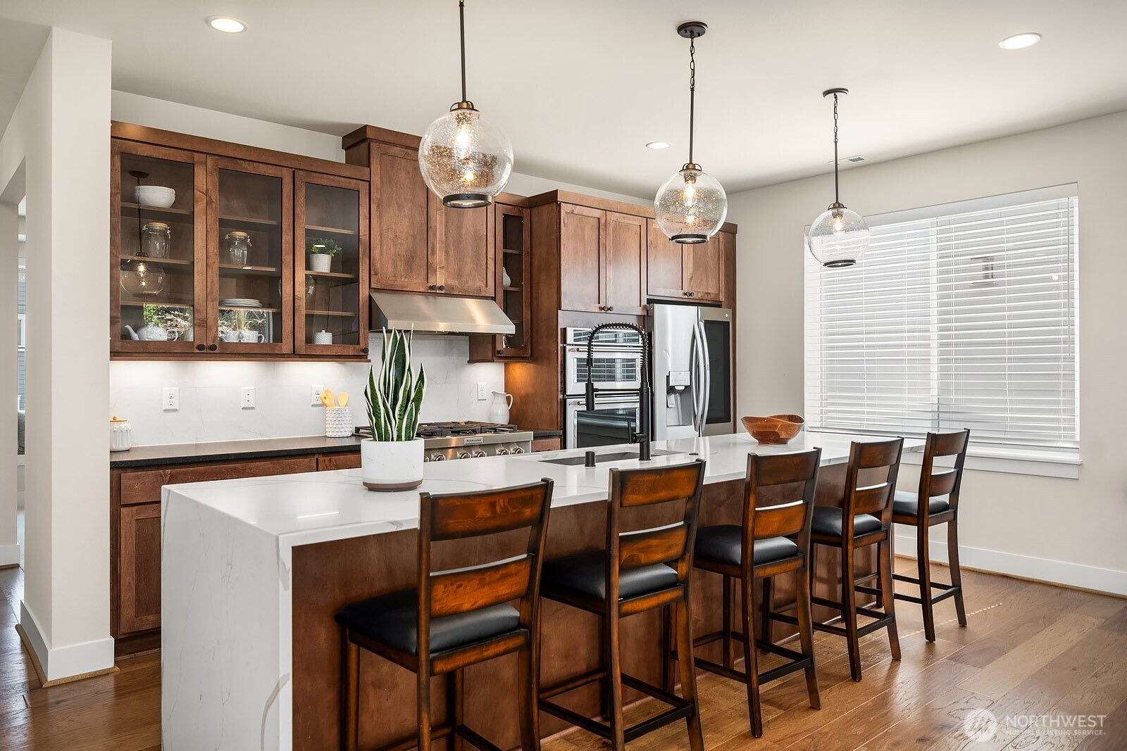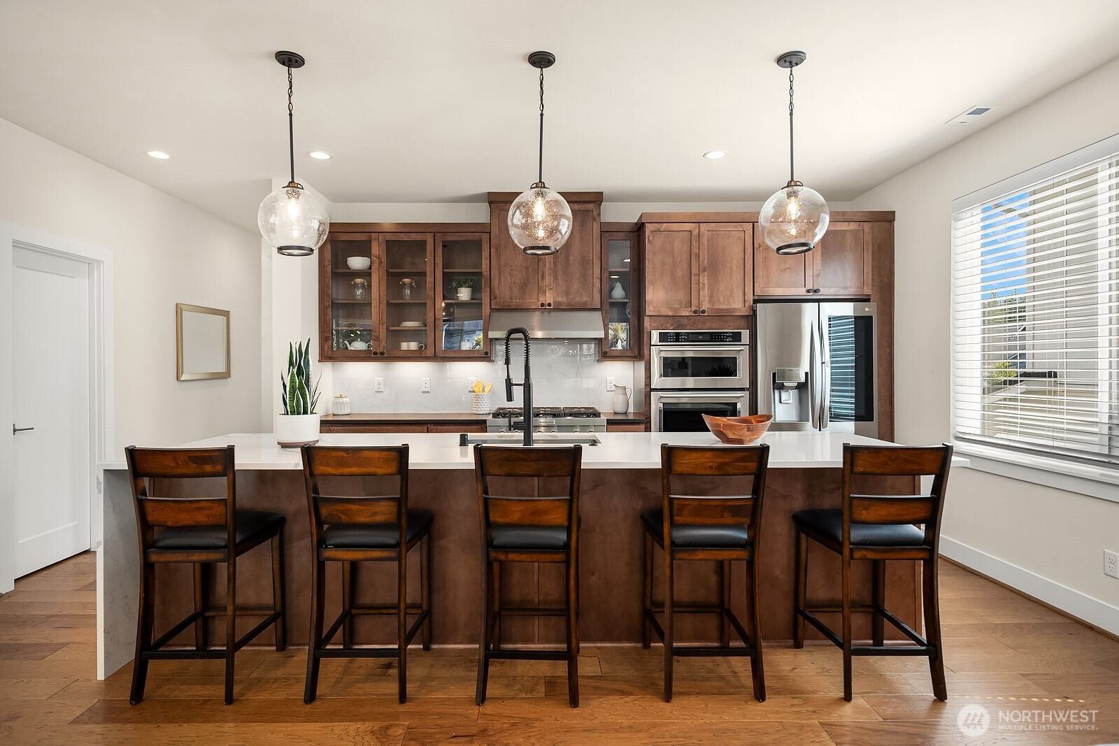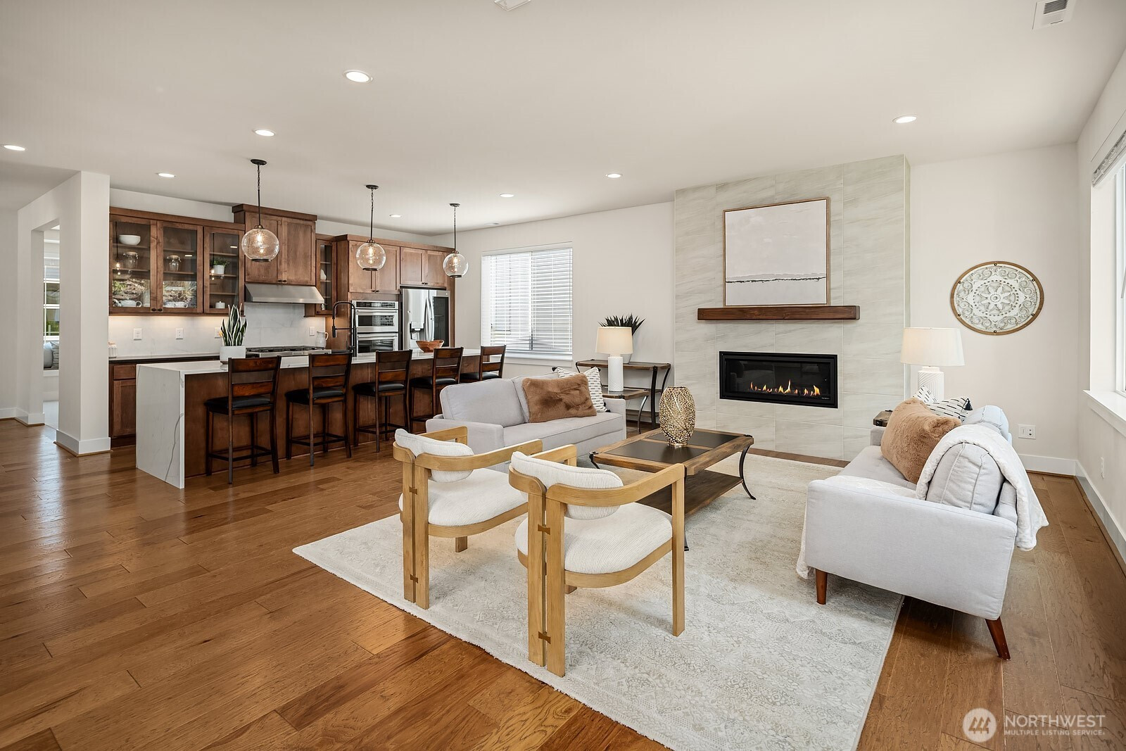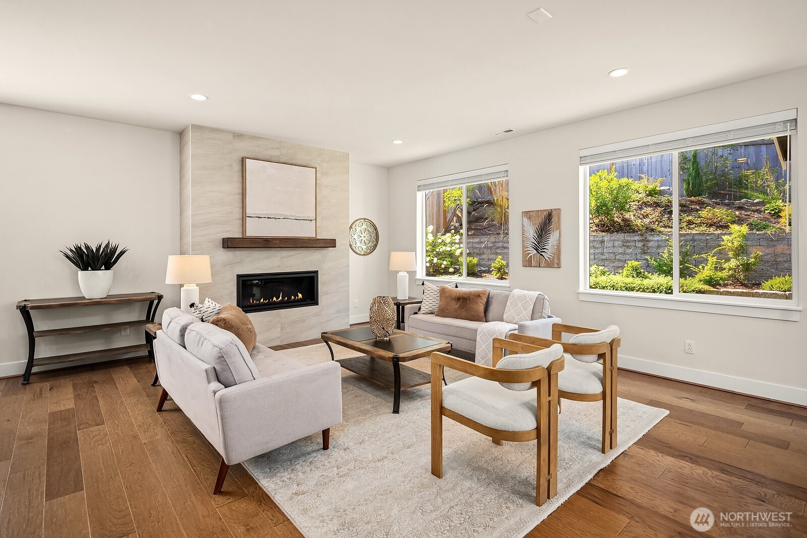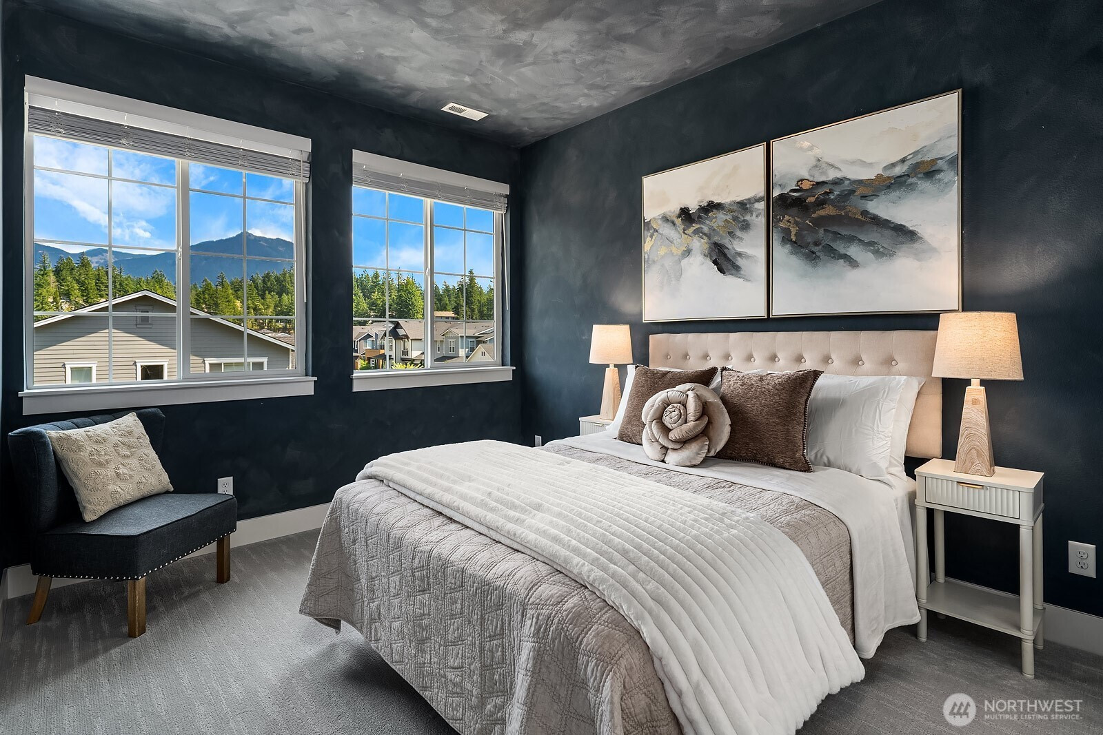 A rare opportunity to enjoy elevated living with comfort, style, & convenience at an amazing price point. Rising above the rest w/ stunning mountain views and exceptional craftsmanship. This 5-bed contemporary home is impeccably maintained & upgraded throughout, it offers true move-in perfection. Highlights include hardwoods throughout, a tiled spa-inspired ensuite, designer finishes, A/C, EV charger, & whole-house Generac generator for peace of mind. The versatile lower level is ideal for multi-generational living or guest quarters. Outdoor living shines w/ a covered patio, terraced & private backyard, w/ river & trail access just moments away. Come see what North Bend has to offer — Award-winning schools to endless outdoor adventures.