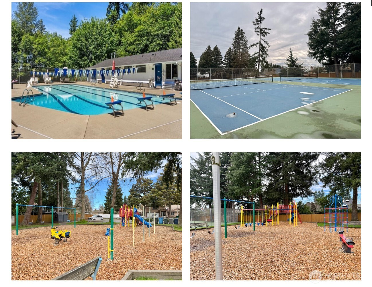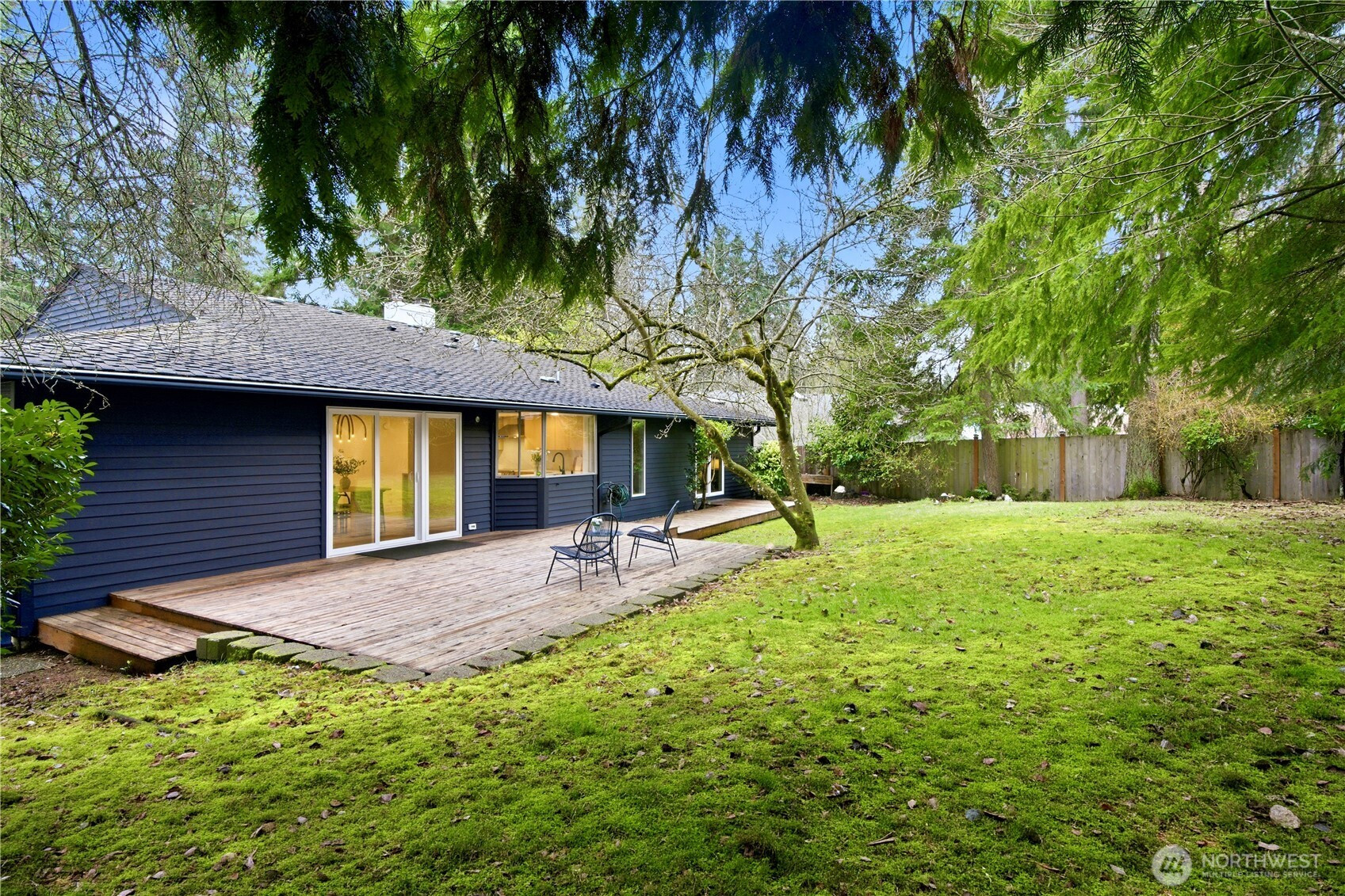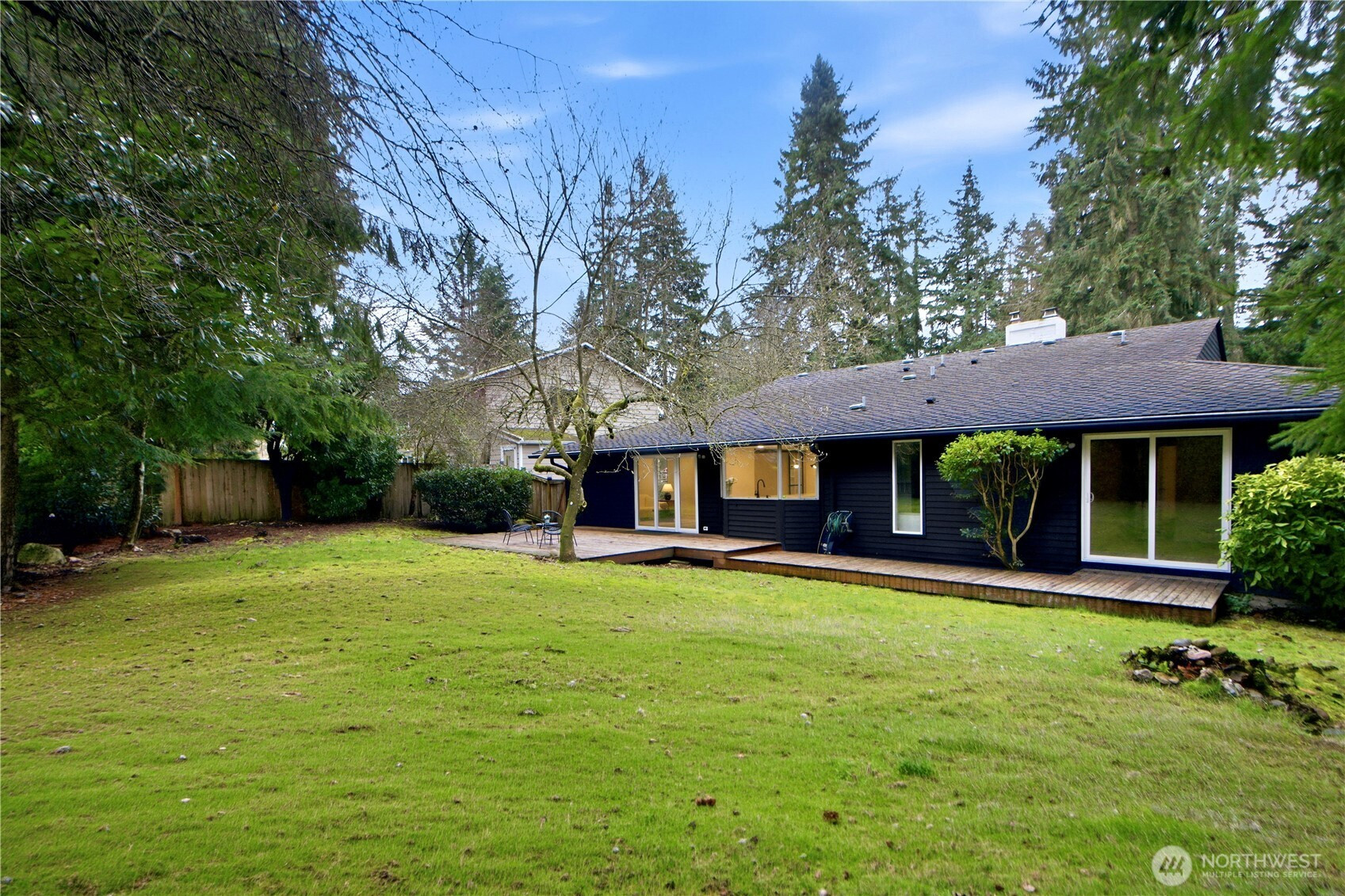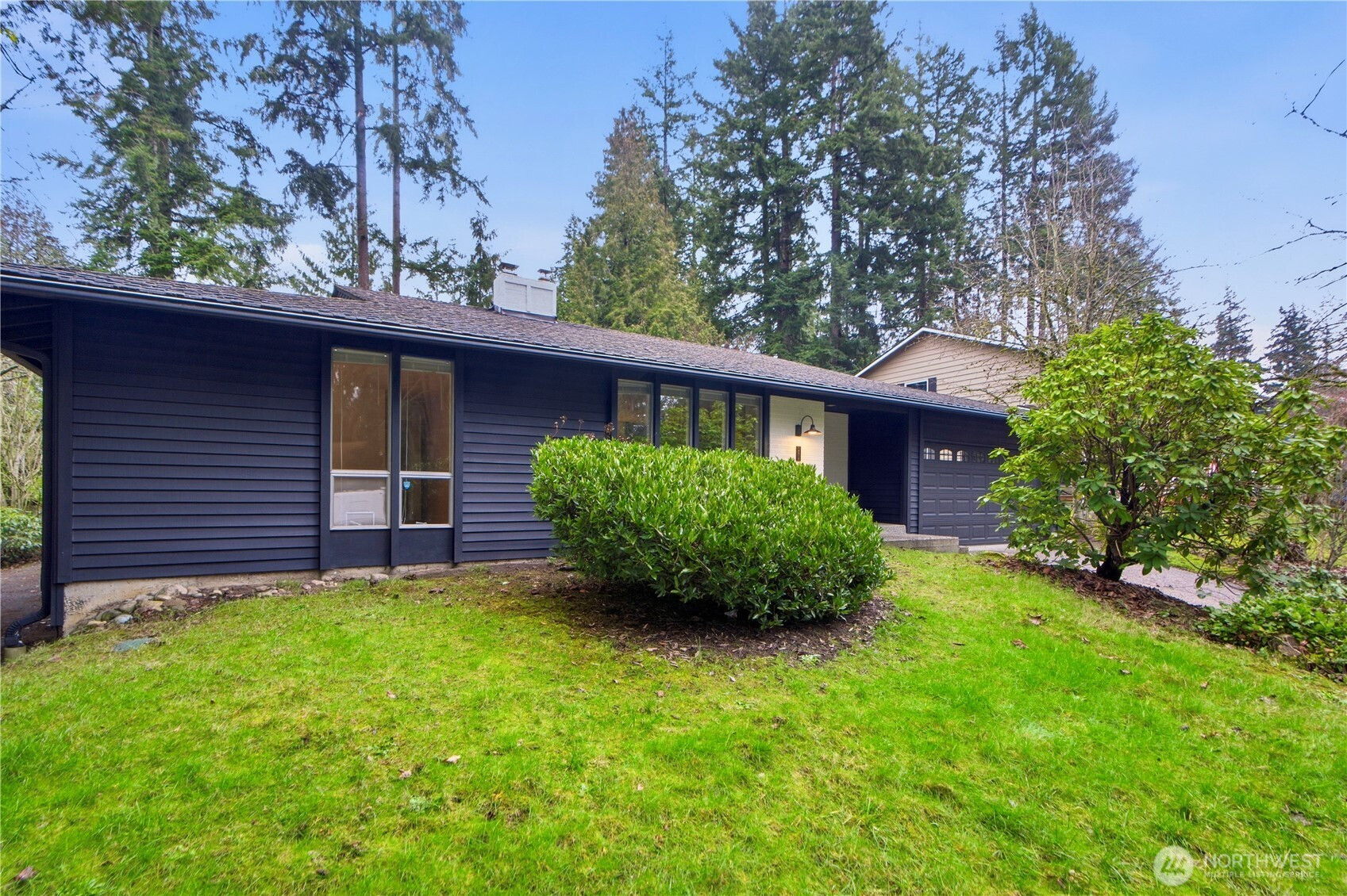 Rare find 2310 sqft luxury updated rambler situated on a premier 10000+ sqft lot in an unbeatable Kirkland location. Just 5 minutes to Totem Lake Village and 15 minutes to Downtown Bellevue, this home has been meticulously reimagined with a curated design. This turnkey residence features a permitted 200-amp electrical panel upgrade with EV charger, new windows and sliding doors, new water heater, and new attic insulation. Step inside to discover seamless wide-plank flooring and a sunny living room with fireplace. The open space kitchen boasts custom cabinetry with solid brass hardware, a stunning quartz waterfall island with a matching full-height slab backsplash, a professional 36" 6-burner Thor range, and Bosch dishwasher. Dining area, accented by a signature West Elm chandelier, flows to a massive deck and a private, fully-fenced backyard. The thoughtful layout offers three oversized bedrooms and a dedicated home office, with each bedroom featuring its own generous walk-in closet. The primary suite is a true retreat with standalone tub, double vanity, custom solid-wood walk-in closet. Designer Bedrosians tile in all bathrooms. Complete with extra RV/boat parking space, this home is nestled in a quiet community with a private pool, playground, and tennis courts. Don’t miss this one-of-a-kind Kirkland masterpiece!