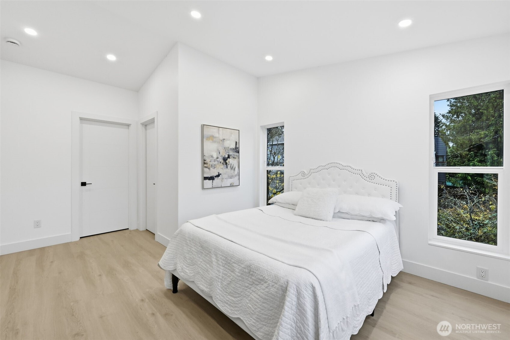 Located in the Haller Lake area, this thoughtfully designed new construction home offers 3-bed, 2.5-bath, 1-car garage across 1,089 SF of modern living space. The open-concept main floor features a bright kitchen with quartz countertops, stainless steel appliances, Premium LVP flooring, dining area, and air conditioning. Upstairs, all bedrooms feature vaulted ceilings, including the primary suite with ensuite bath and walk-in closet. Two additional bedrooms and full bath complete the upper level. Garage is EV charger ready. Outside, enjoy a private yard with patio, ample parking and potential RV parking. Conveniently located near parks, shopping, restaurants, transit, and light rail in a quiet neighborhood just minutes from Lakeside School.