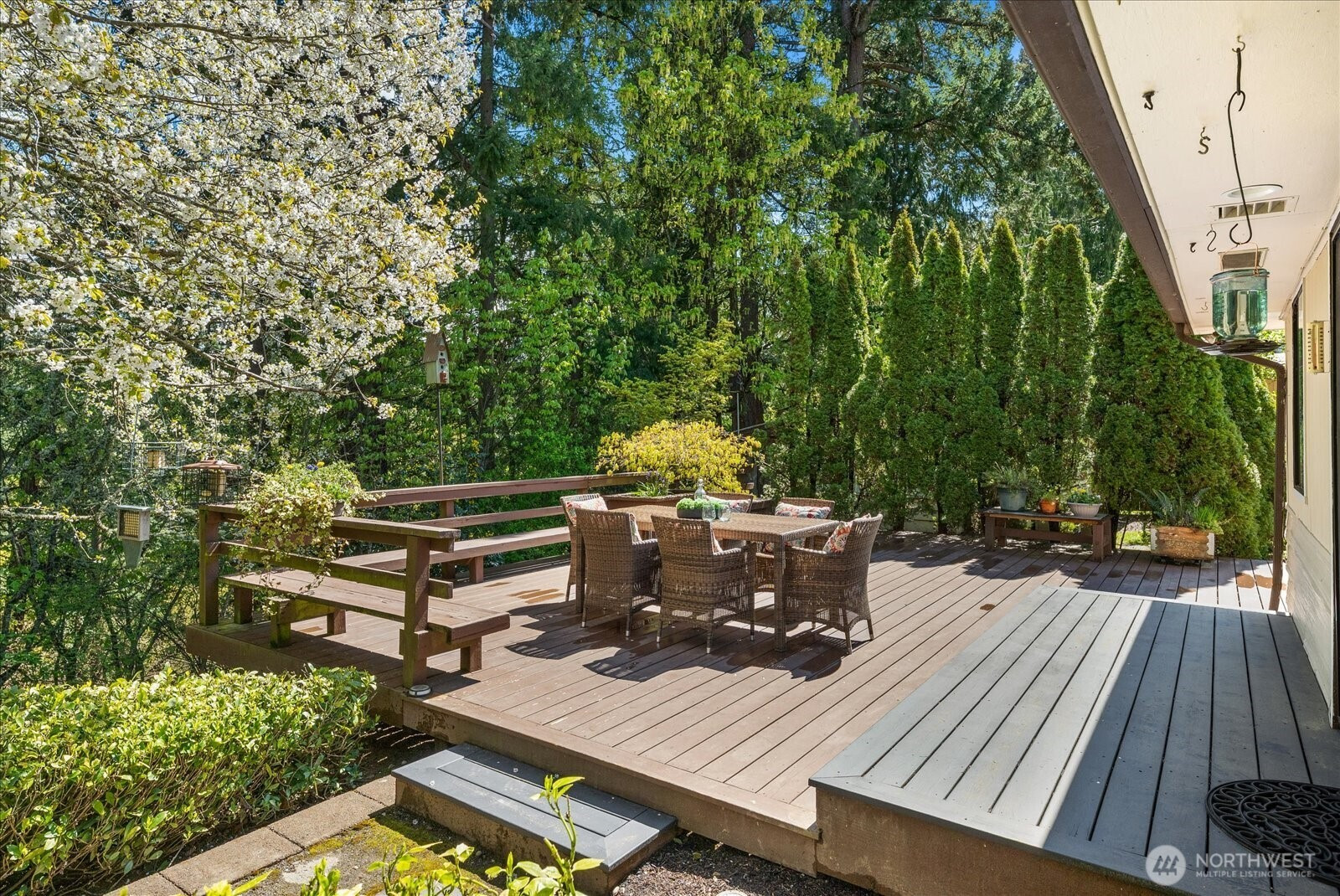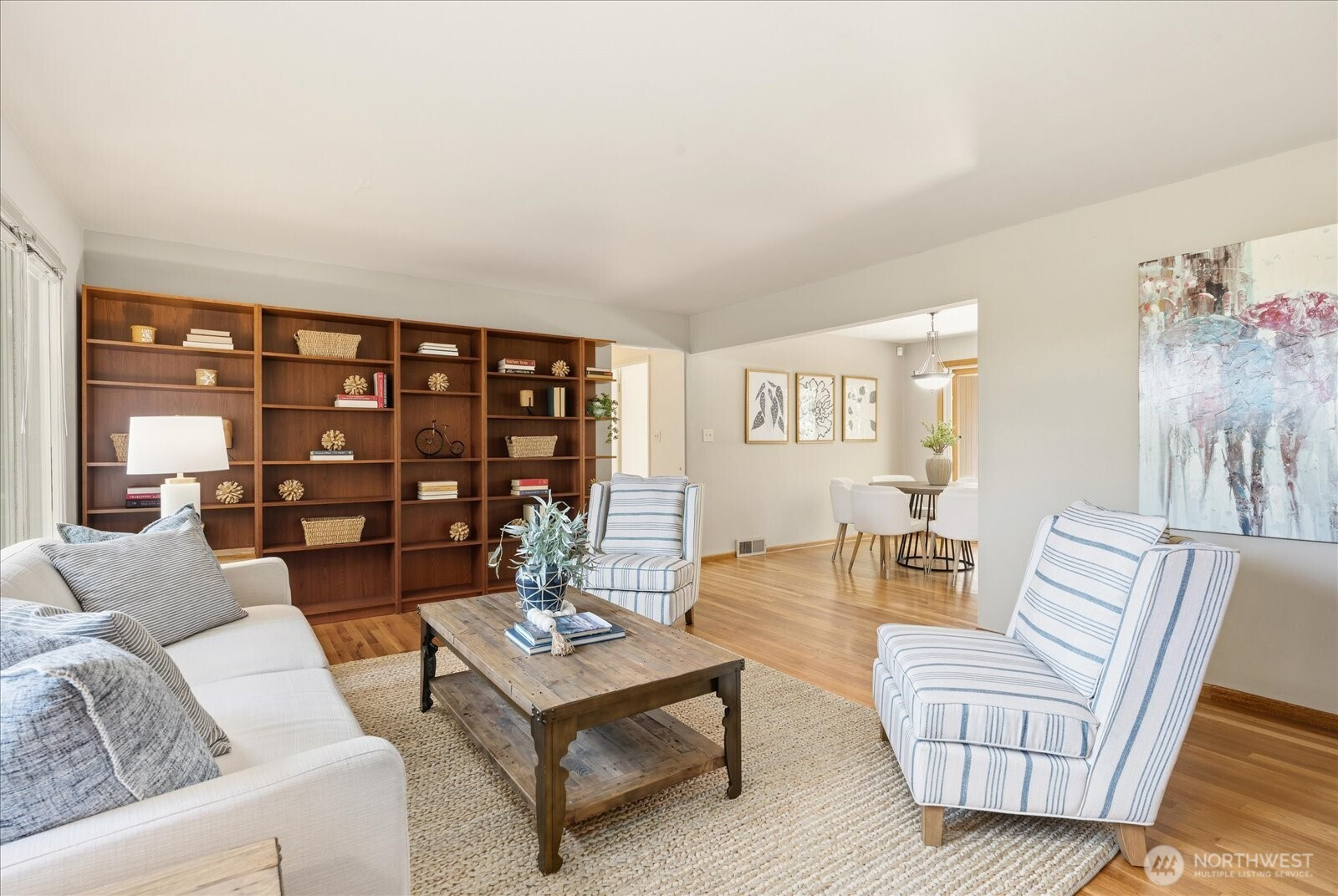 Charming Seahurst rambler w/views of Puget Sound & the Olympic Mountains. This 3-bedroom, 3-bath home + a versatile den/office (or 4th bedroom) features beautiful hardwood floors, cozy gas fireplace in the den & a separate utility room for added convenience. The spacious primary en suite offers a walk-in closet & overlooks a covered veranda & expansive entertainment-sized deck perfect for relaxing or hosting in a private, serene setting. Walls of windows fill the home w/natural light & frame lovely views of Puget Sound and adjacent Seahurst Park. Opportunity awaits to elevate this home even further - add a second story to capture sweeping, panoramic views of Puget Sound, Vashon Island & the Olympic Mountains. NOTE: with its iconic Little Free Library, this property offers not just a home - but a legacy of community engagement & charm!