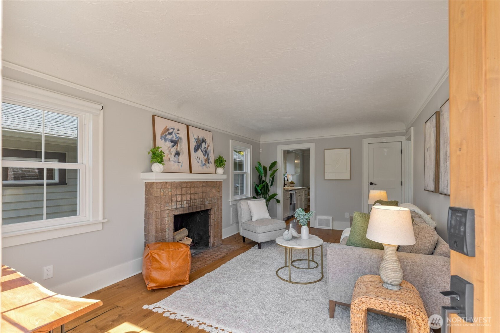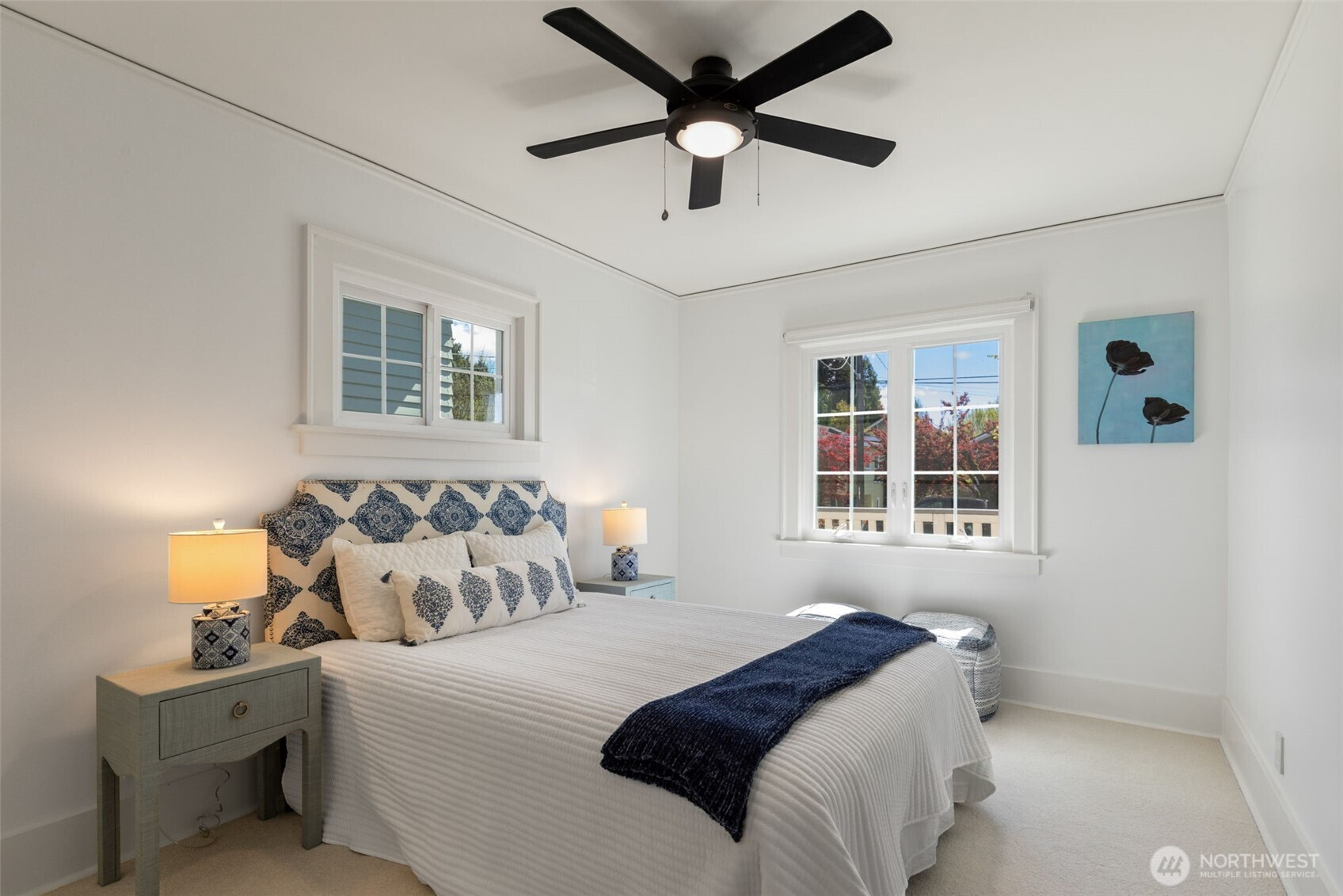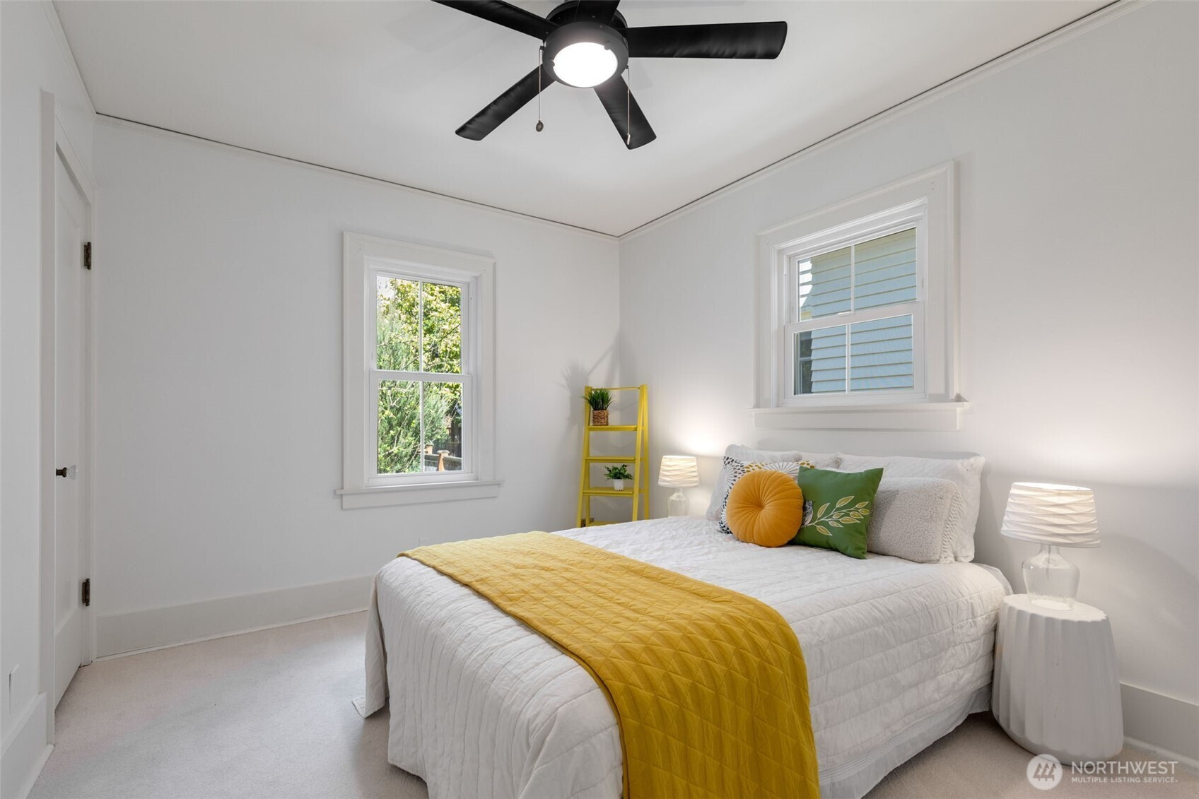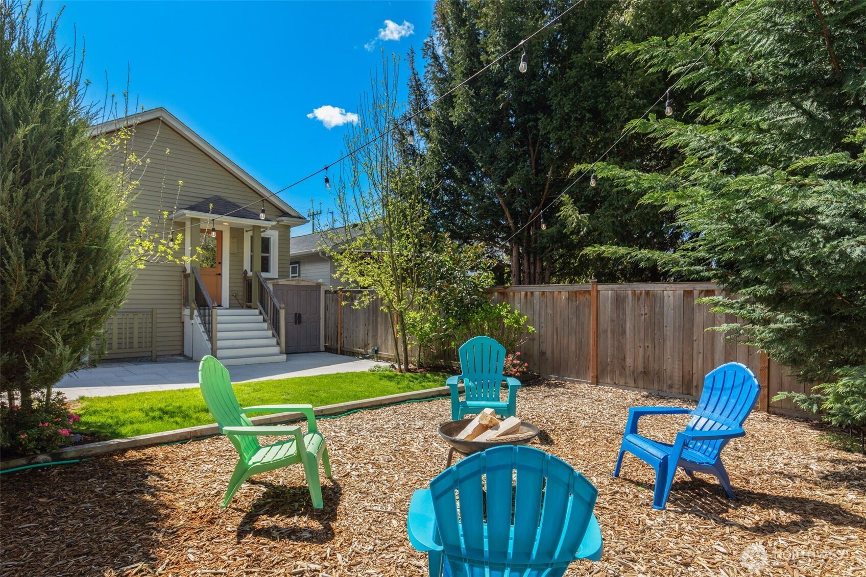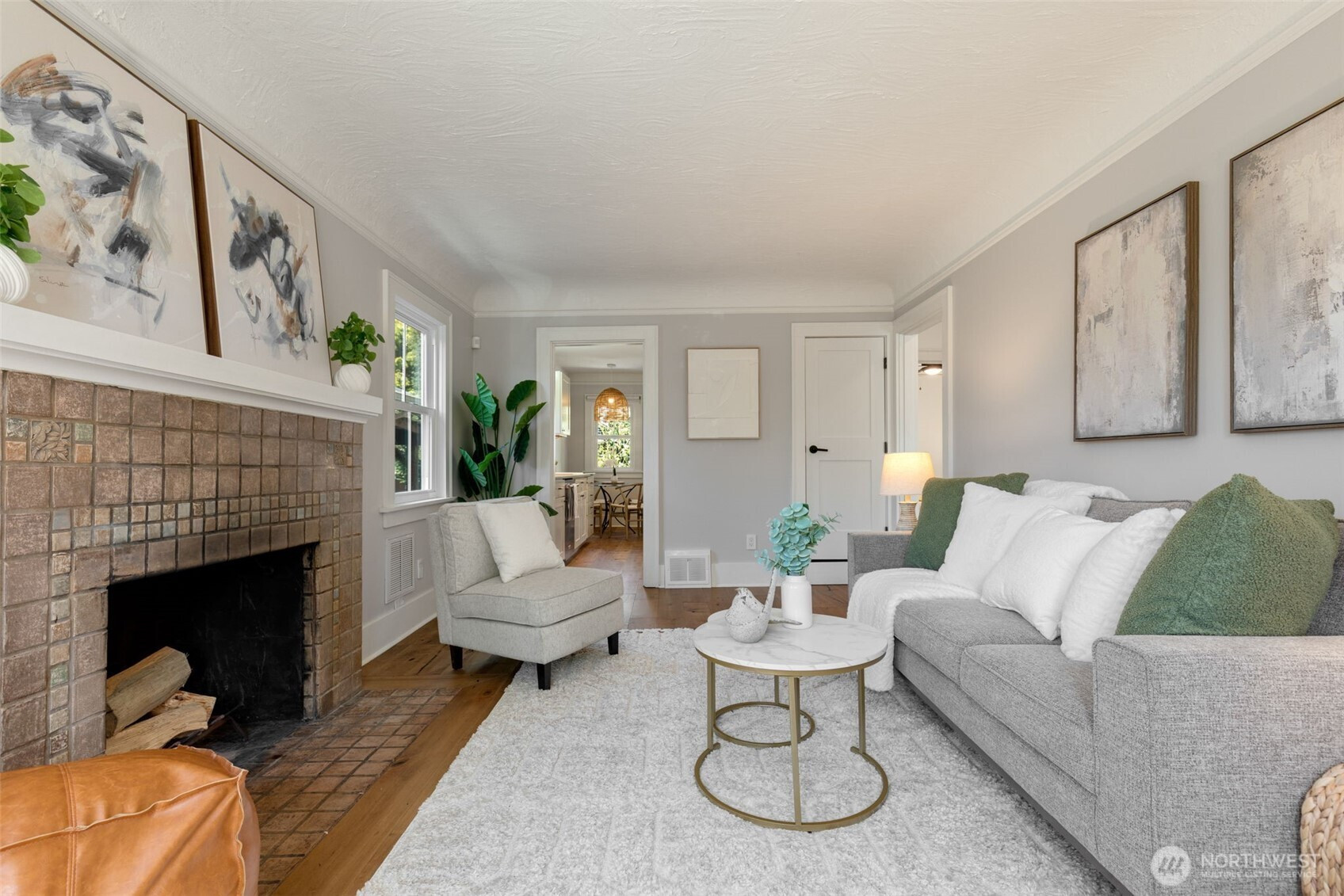 Classic Phinney Ridge charm meets modern flexibility in this thoughtfully updated 1926 Craftsman. The welcoming front porch leads into a light-filled living room with coved ceilings, anchored by an original hand-cast tile fireplace. Two spacious bedrooms and an updated full bath. Kitchen, with stainless appliances, a six-burner gas range, and dining space, features a Dutch door that opens to a sun-drenched backyard, ideal for summer entertaining and late-night campfires. The versatile basement functions as an excellent office, media room, or guest suite, with laundry and a half bath. And here's where it gets interesting: a potential rental studio or MIL / ADU with its own exterior entrance, full kitchen, three-quarter bath, and washer/dryer. House-hack homeownership, host extended guests, or just turn on rental income whenever you want, like during the World Cup this summer! Fresh paint and carpet, newer windows and flooring, and a brand-new high-efficiency furnace. Rare off-street parking space. A short walk to all that Phinney Ridge and Greenwood have to offer: some of the best shops, bars, and restaurants in Seattle. Easy access to transportation, South Lake Union, and downtown. Charming, turnkey, and full of possibilities. Do not miss this unique PhinneyWood gem!