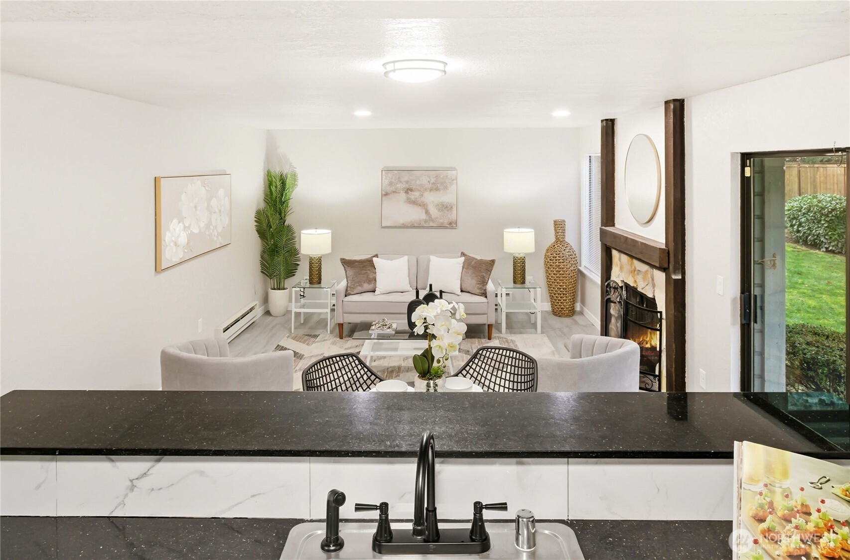 Modern Elegance – Your Ground-Floor Oasis. Experience the perfect blend of modern comfort and effortless living in this stunning, refreshed & remodeled 2-bedroom, 2-bathroom condo. Situated on the ground floor for easy access, this home greets you with brand-new LVP flooring and a crisp, fresh interior paint. The primary bedroom is spacious with its own bath and closet. The second bedroom is generous. The main bathroom with quartz countertops and new floors and lights. Kitchen with elegant granite countertops and a streamlined layout that flows seamlessly into the laundry area. The heart of the home is an open-concept living area, where a cozy wood-burning fireplace serves as the perfect centerpiece. The sliding door opens to the back porch perfect for relaxation and coffee/tea. The water heater is newer 2021. 1 covered parking space is assigned to the unit with a storage room. Community also has outdoor swimming pool, clubhouse & ample guests parking. No rental cap and no special assessment. Convenient location near grocery stores, restaurants and golf courses.