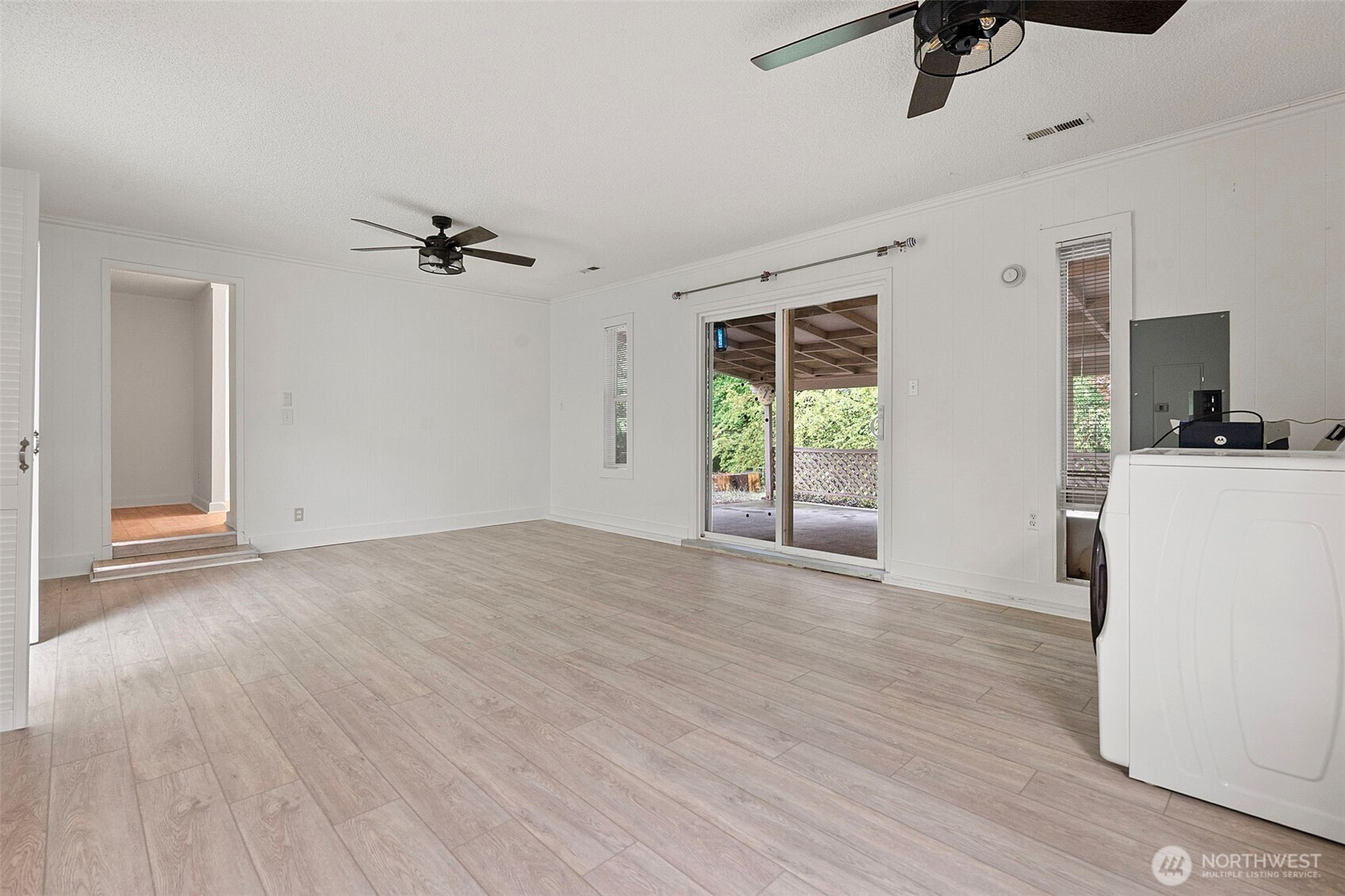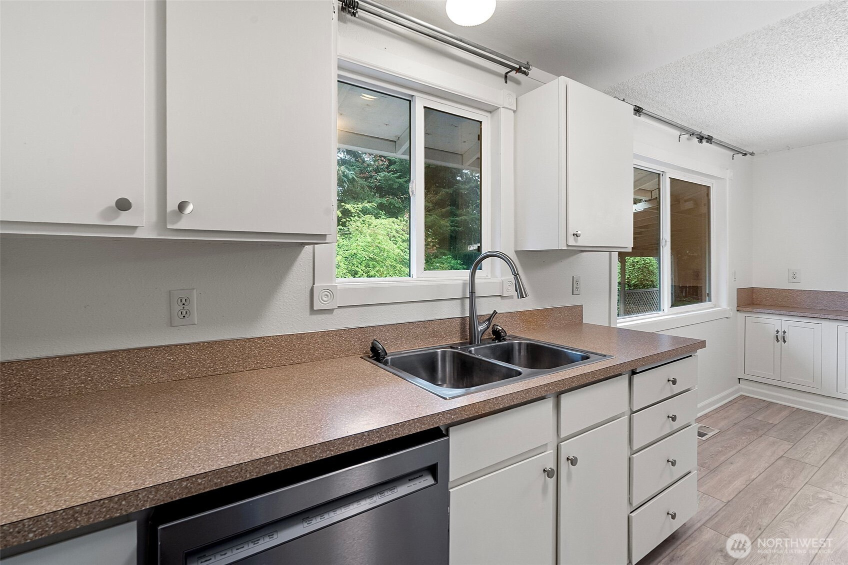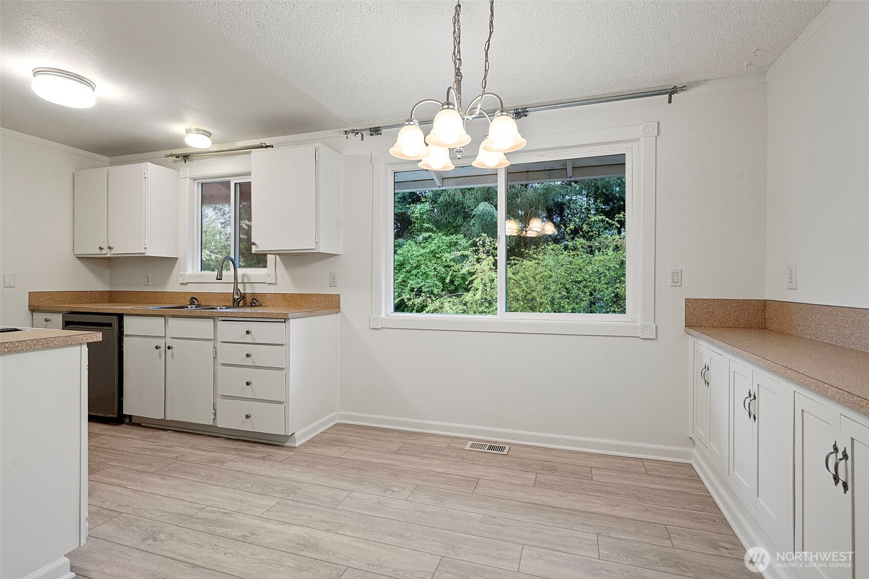 Located in the sought-after Maple Heights neighborhood, this well-maintained rambler sits on a large corner lot with mature landscaping and no HOA. Offering 3 bedrooms and 1.75 baths, the home features a functional layout with a primary suite that includes an attached bath and walk-in closet. Fresh interior paint and new LVP flooring run throughout, creating a clean, updated feel. The kitchen offers additional cabinetry and a breakfast bar/prep area, providing both storage and workspace, and opens to the main living area with a cozy gas fireplace. A spacious bonus room adds flexibility—perfect for a second living area, home office, or potential additional bedroom. The home also includes two separate laundry areas for added convenience. Major systems have been updated with a newer gas furnace and tankless water heater. Outside, enjoy a covered back patio ideal for year-round use, along with a large yard and RV/EV power hookup. Conveniently located near shopping, schools, and Maplewood Park, this home offers comfort, versatility, and a prime location.