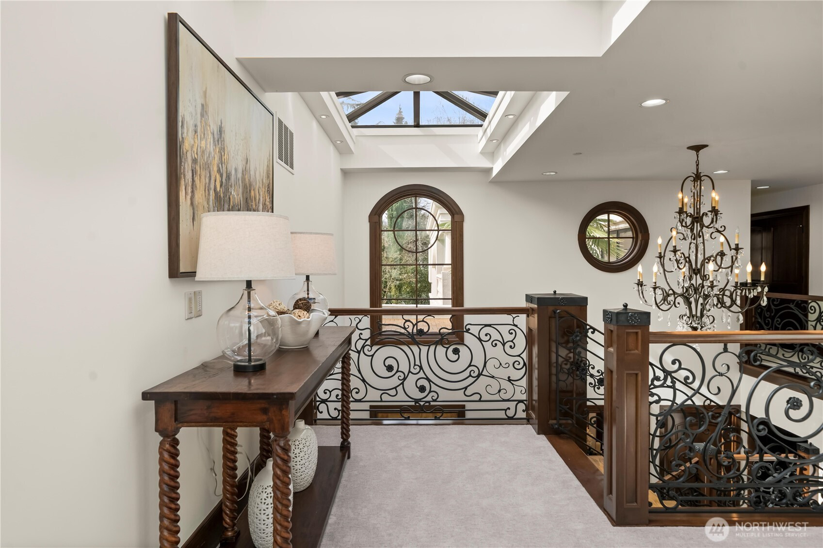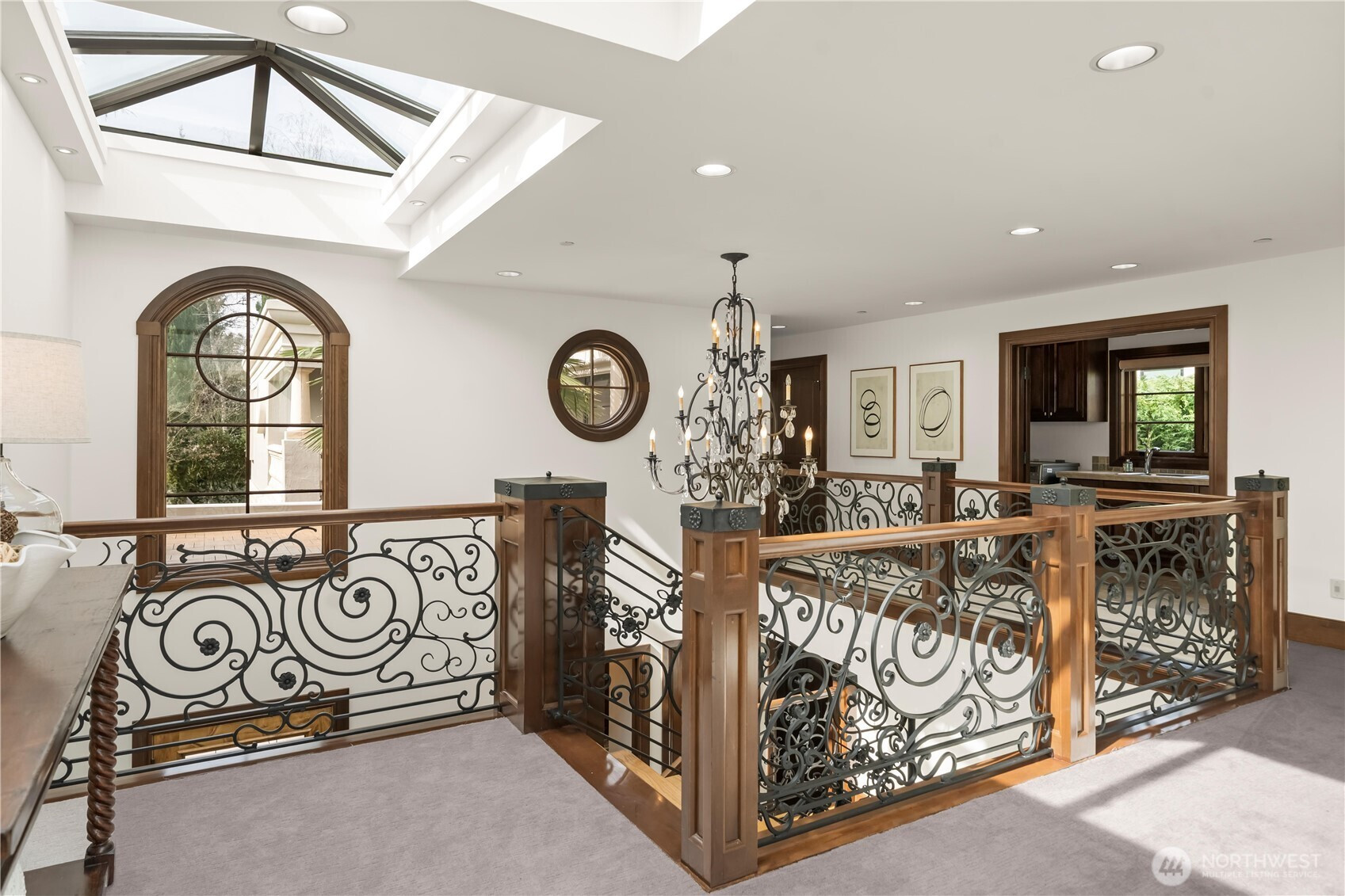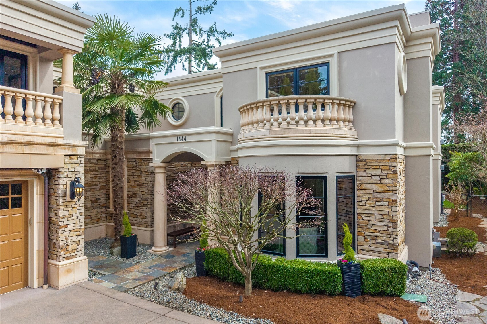 Designed by renowned architect Vassos Demetriou, this sophisticated Medina residence features a dramatic linear skylight spanning the length of the home, complete with integrated shading that filters soft natural light throughout. Ideally positioned along Medina’s coveted Gold Coast, this modern Mediterranean home showcases timeless materials and offers four bedroom suites, including two primary suites. A soaring entry opens to interiors defined by clean architectural lines and abundant natural light. The chef’s kitchen, equipped with top-tier appliances, serves as the centerpiece and seamlessly connects to expansive living and entertaining spaces, thoughtfully designed for both everyday living and gatherings. The primary suite offers a private retreat with a tranquil balcony, spa-inspired bath, and a calm, refined atmosphere. Additional highlights include a dedicated office, private guest wing, media lounge, and wine room. A sculptural architectural staircase adds a distinctive design element, enhancing the home’s sense of scale and visual appeal. Designed with seamless indoor-outdoor flow, the home opens to a private setting suited for both relaxation and entertaining. Located within the Bellevue School District and just minutes from Medina Elementary, the Green Store, Overlake Golf & Country Club, and Downtown Bellevue