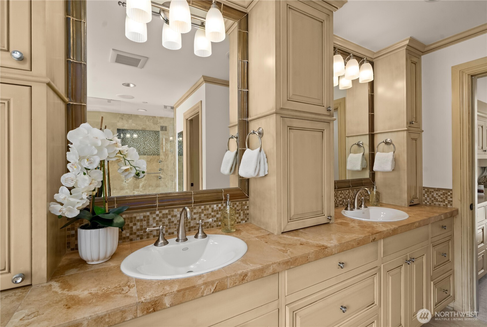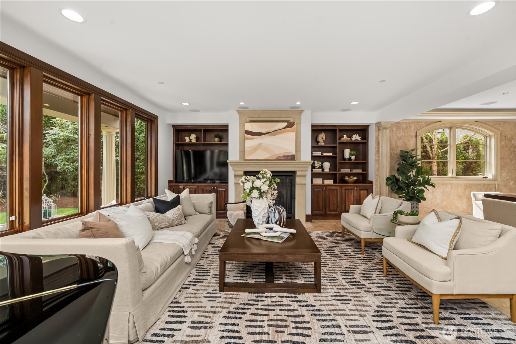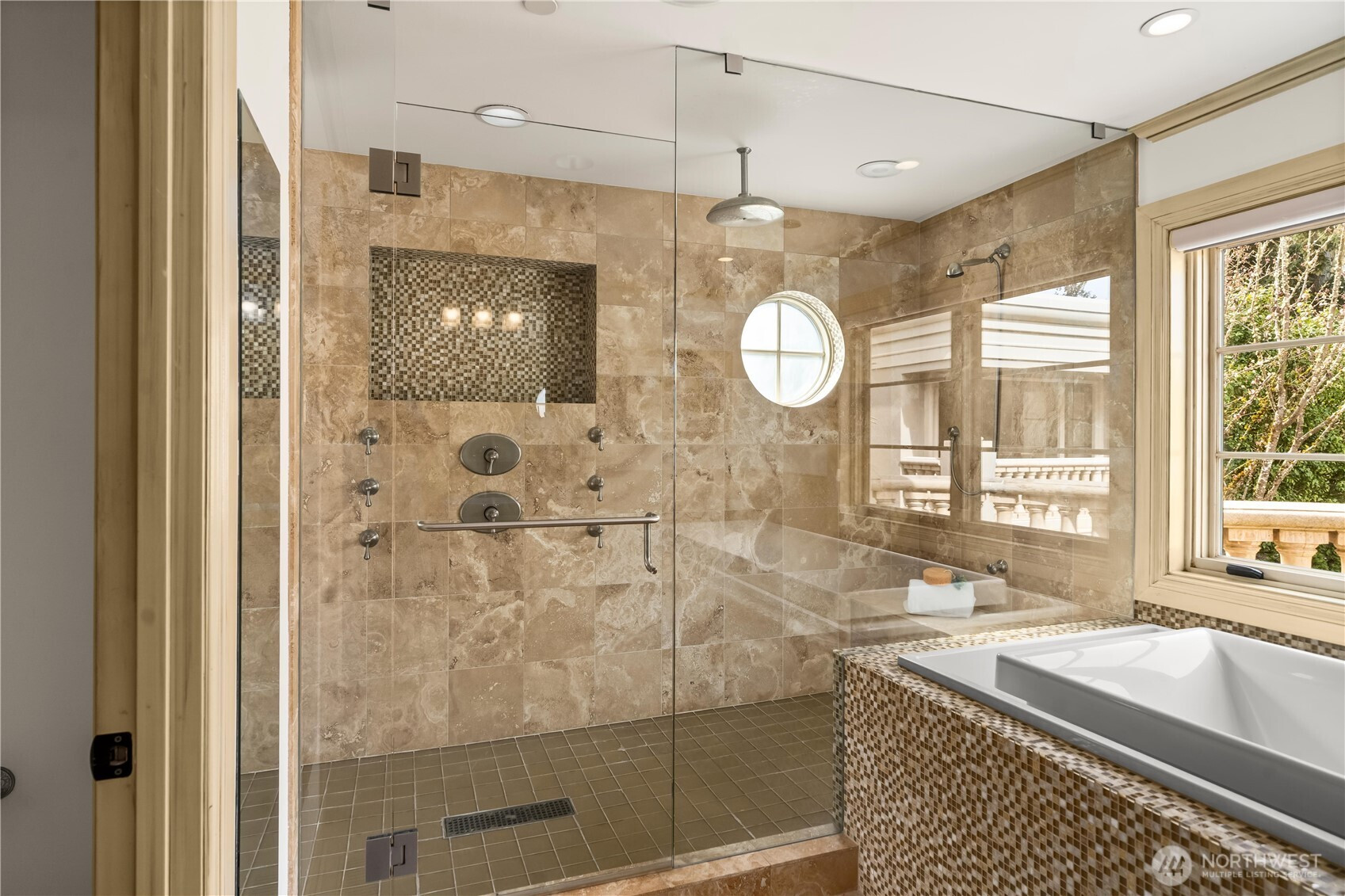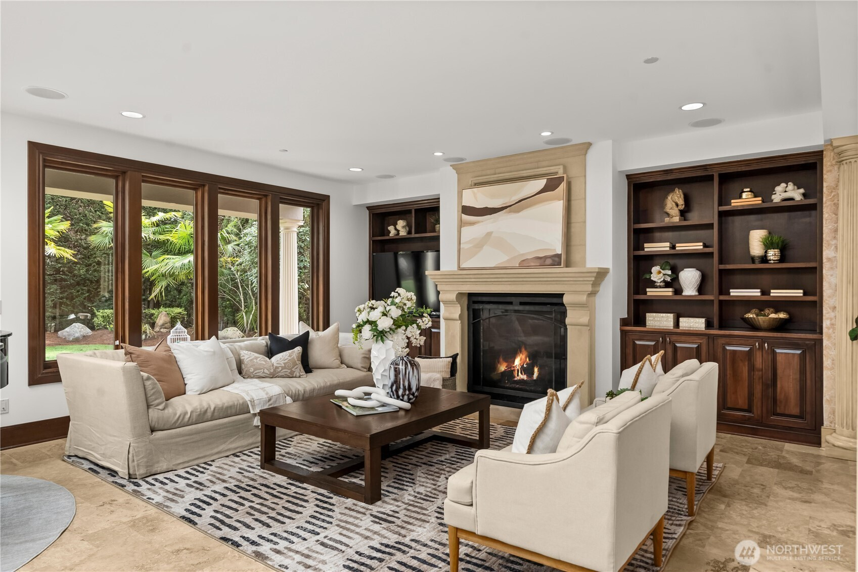 Designed by renowned architect Vassos Demetriou, this sophisticated Medina residence features a dramatic linear skylight spanning the length of the home, complete with integrated shading that filters soft natural light throughout. Ideally positioned along Medina’s coveted Gold Coast, this modern Mediterranean home showcases timeless materials and offers four bedroom suites, including two primary suites. A soaring entry opens to interiors defined by clean architectural lines and abundant natural light. The chef’s kitchen, equipped with top-tier appliances, serves as the centerpiece and seamlessly connects to expansive living and entertaining spaces, thoughtfully designed for both everyday living and gatherings. The primary suite offers a private retreat with a tranquil balcony, spa-inspired bath, and a calm, refined atmosphere. Additional highlights include a dedicated office, private guest wing, media lounge, and wine room. A sculptural architectural staircase adds a distinctive design element, enhancing the home’s sense of scale and visual appeal. Designed with seamless indoor-outdoor flow, the home opens to a private setting suited for both relaxation and entertaining. Located within the Bellevue School District and just minutes from Medina Elementary, the Green Store, Overlake Golf & Country Club, and Downtown Bellevue
