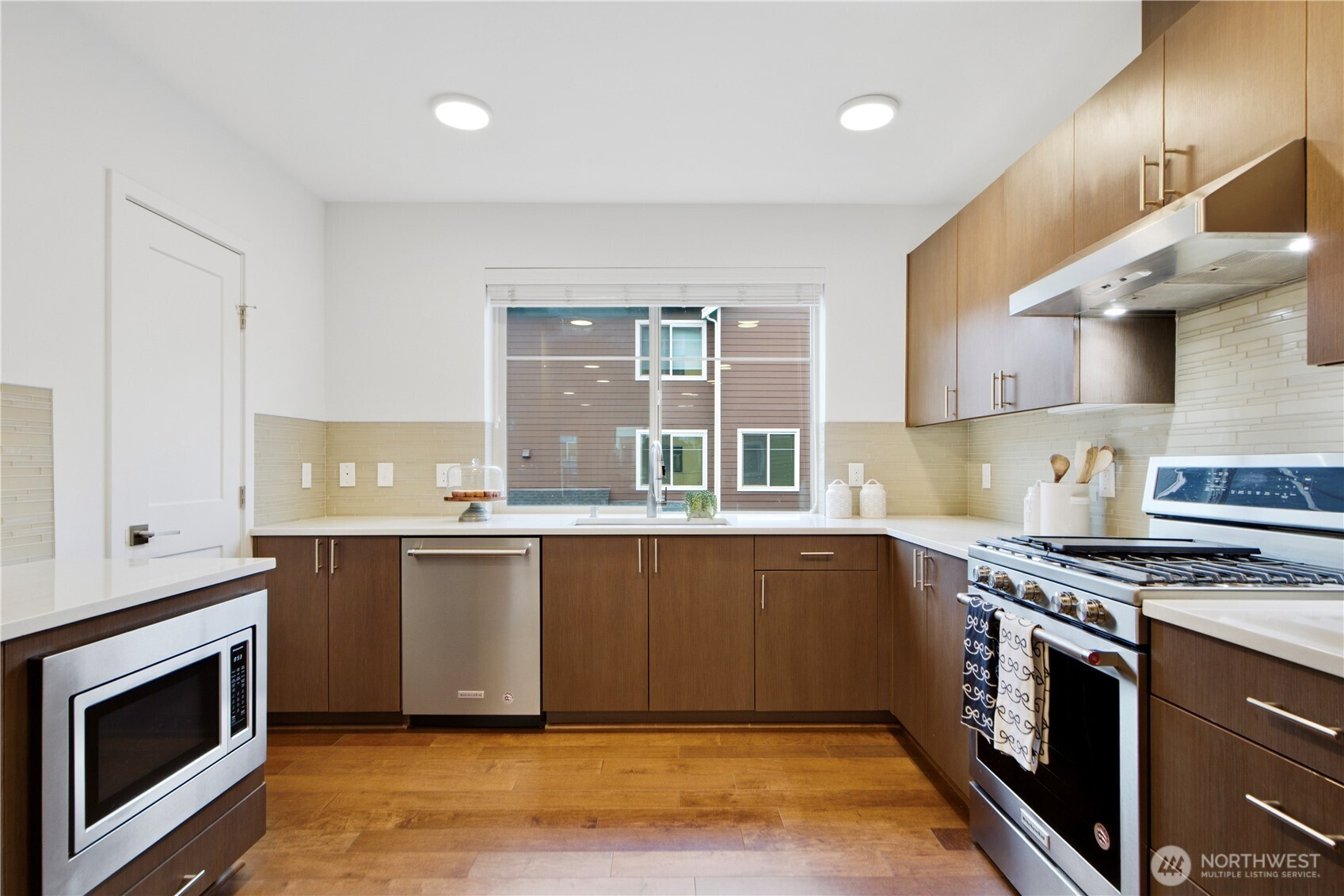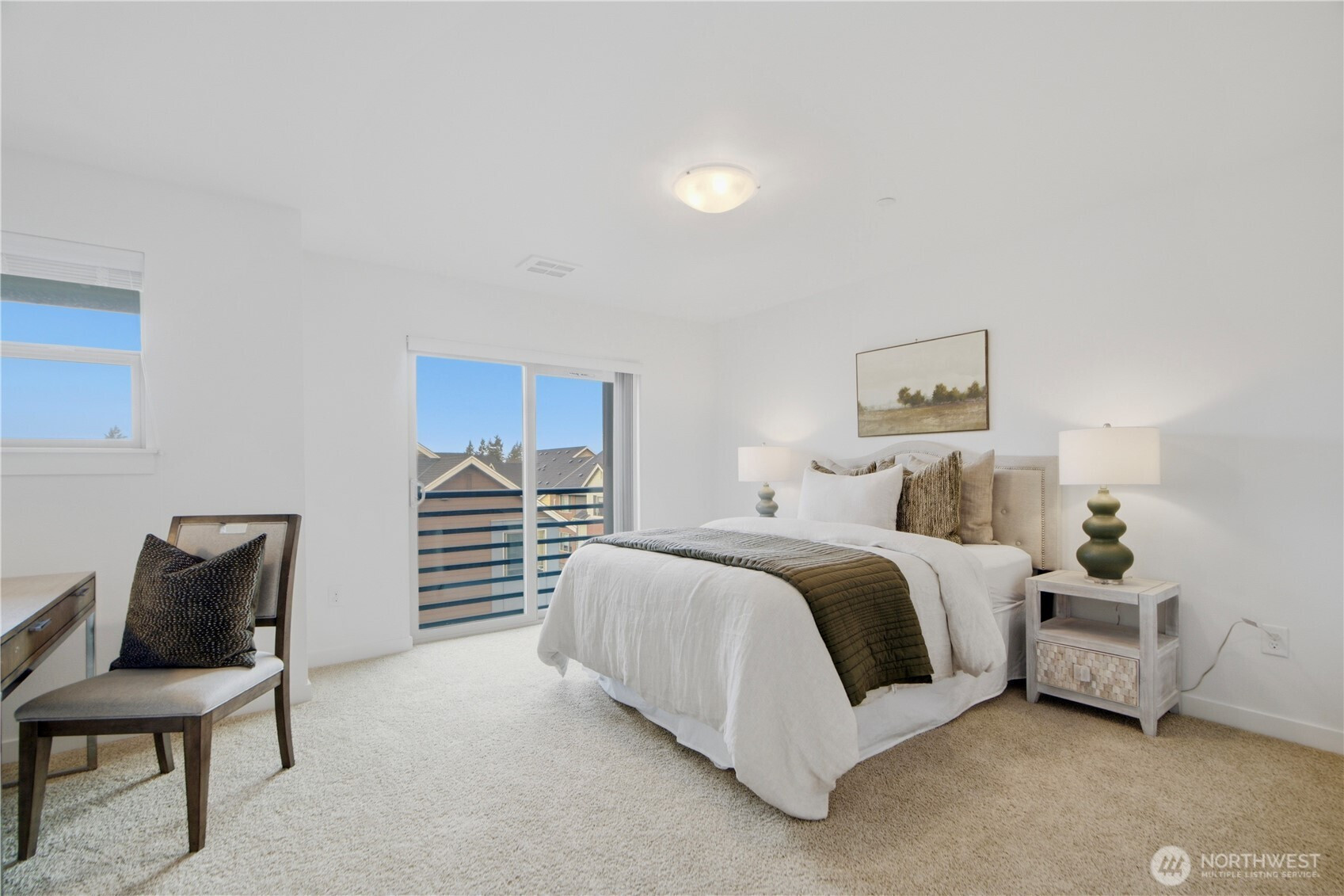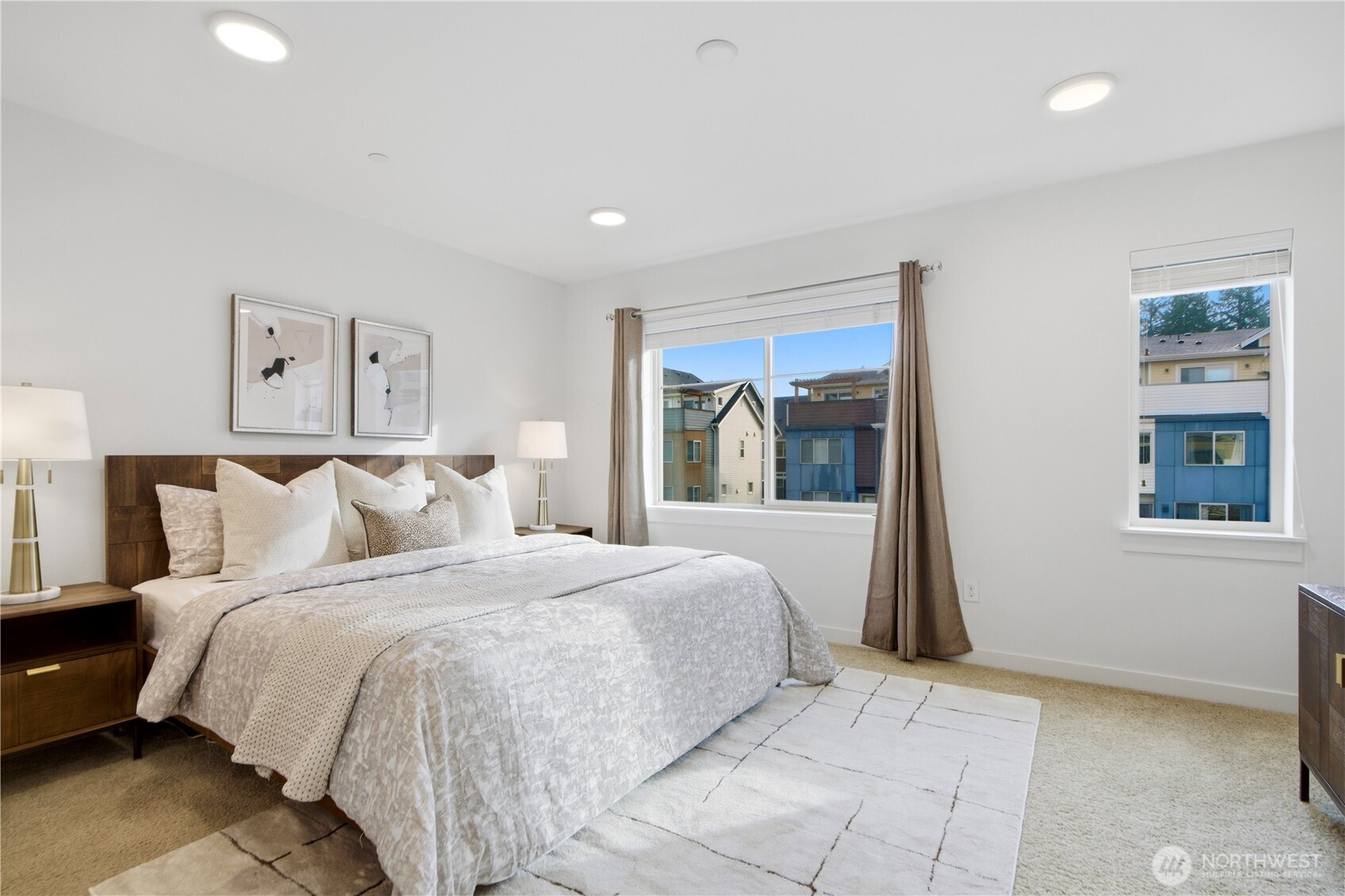 Upton at Crossroads — a Polygon home blending style, comfort, and convenience, just minutes from the Microsoft main campus and steps from bus connections, dining, shopping, and neighborhood parks. This bright, open floor plan includes 3 bedrooms, each with its own bath, a gourmet kitchen with a gas range, walk-in pantry, and double-door refrigerator. The versatile top-floor loft makes an excellent home office, media room, or gym, while two balconies provide the perfect spots to relax. The primary suite is a serene retreat featuring a spacious shower and a walk-in closet. A well-managed HOA covers water, sewer, and earthquake insurance, with no rental cap. Modern living at its finest—don’t miss out!