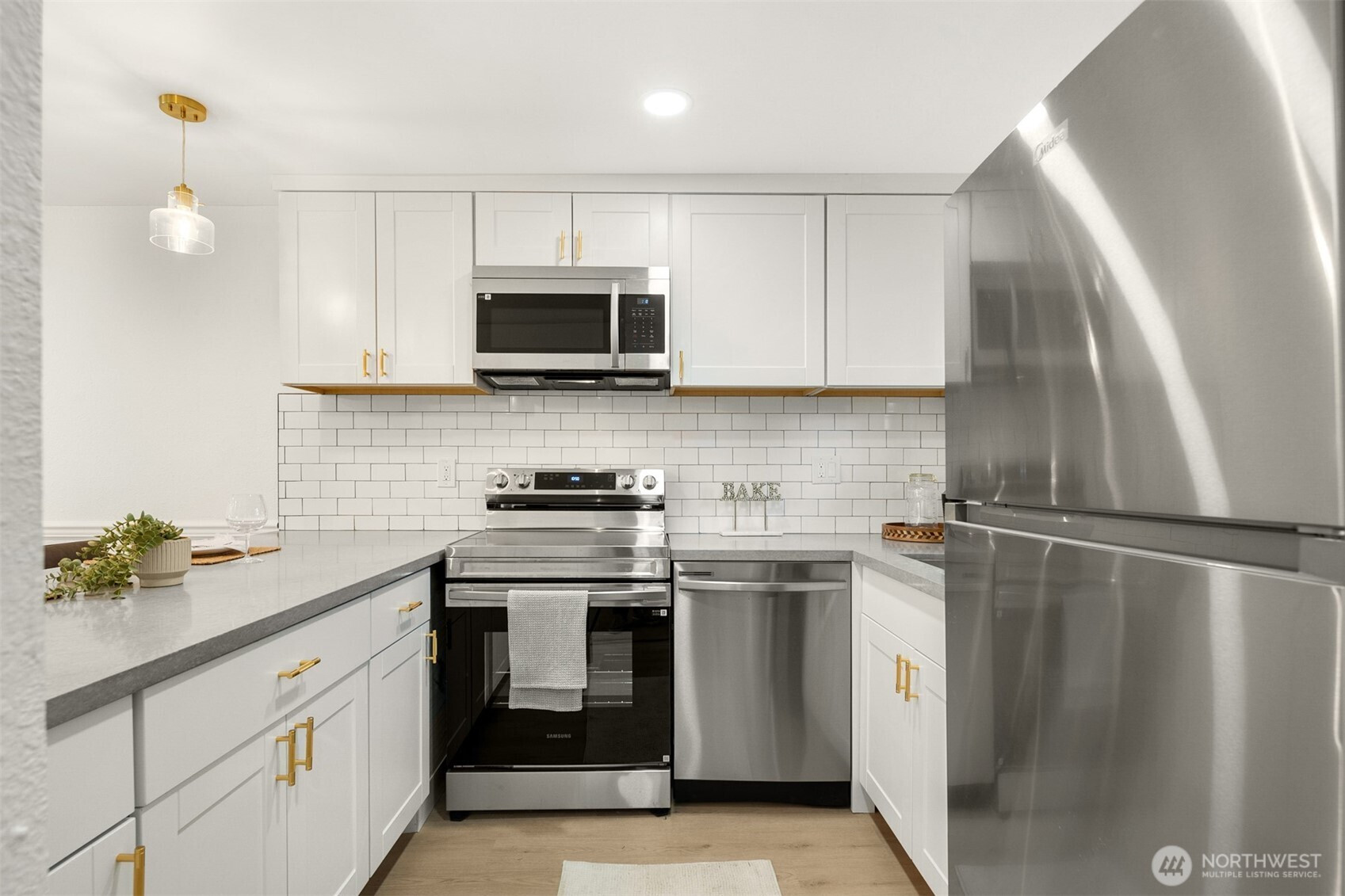 (503) 893-8874Tucked away in a quiet, beautifully maintained community, this spacious 2-bedroom, 2-bath condo is a true retreat. Thoughtfully and meticulously remodeled, the home features stunning new tile work, designer vanities, and elegant stone finishes—every detail carefully chosen to create a warm, refined atmosphere. The brand-new kitchen offers sleek stainless-steel appliances, granite-style counters, a welcoming bar area, and soft accent lighting, perfect for relaxed mornings or easy entertaining. New luxury flooring, modern paint tones, and bright, inviting lighting enhance the sense of comfort throughout. Enjoy the ease of elevator access and the peace of mind that comes with a well-run, attentive, and upkept HOA. Located just a short walk from the Microsoft campus and moments from Overlake, golf, transit, and major routes. No rental cap, no special assessments, EV-charging capability, separate storage, and friendly neighbors complete this hidden gem.