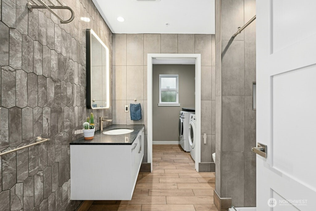 Discover a beautifully custom remodeled home with modern appeal. Every detail met and well thought out, with high-end finishes, stainless steel BOSCH appliances, inductive stove, Grohe and PEX plumbing, soft closed custom Belmont cabinets made in Washington, Deckton waterfall island and counter tops. Magazine worthy bathrooms with dual shower system in primary. New Mitsubishi heat pump, A/C & new water heater. Home is designed for easy living and entertaining. An abundance of natural light, lives open and bright. This exceptional property offers unparalleled privacy with gated entrance and fully fenced spacious backyard. Easy access to I-5, transit, and downtown Seattle. Turnkey and move-in ready. Don’t miss this incredible home.