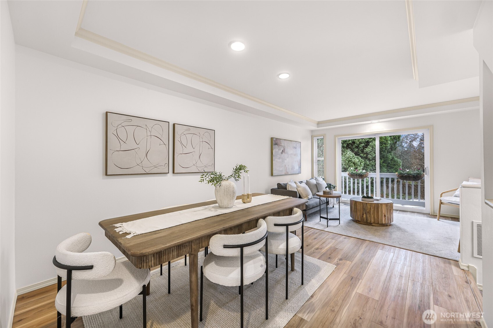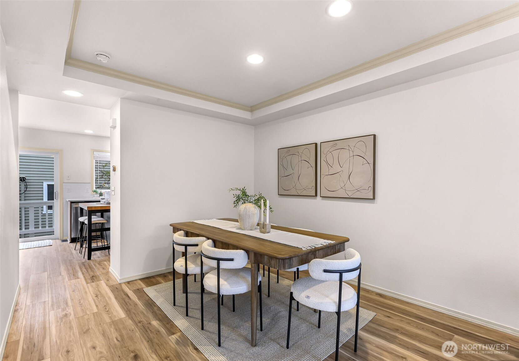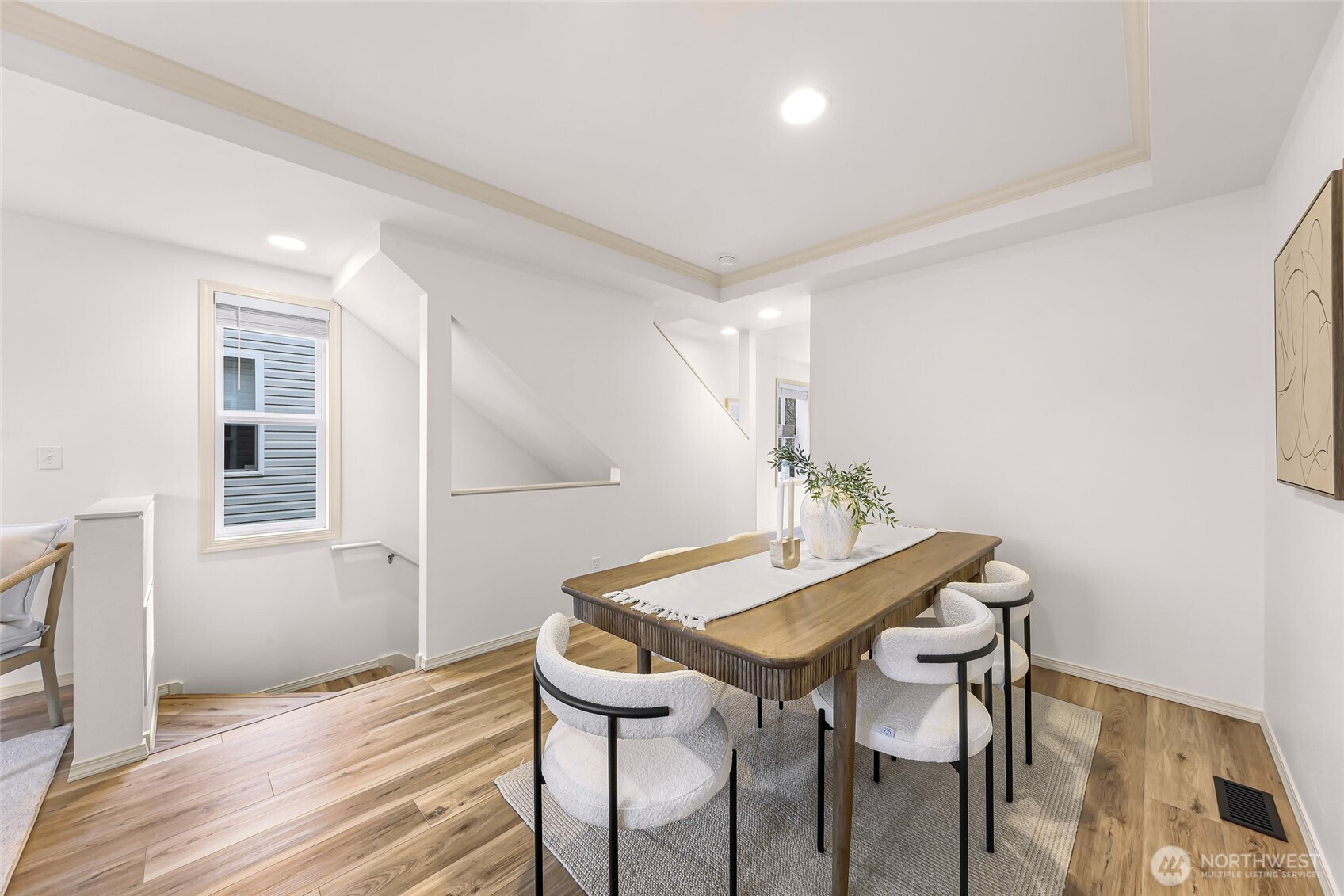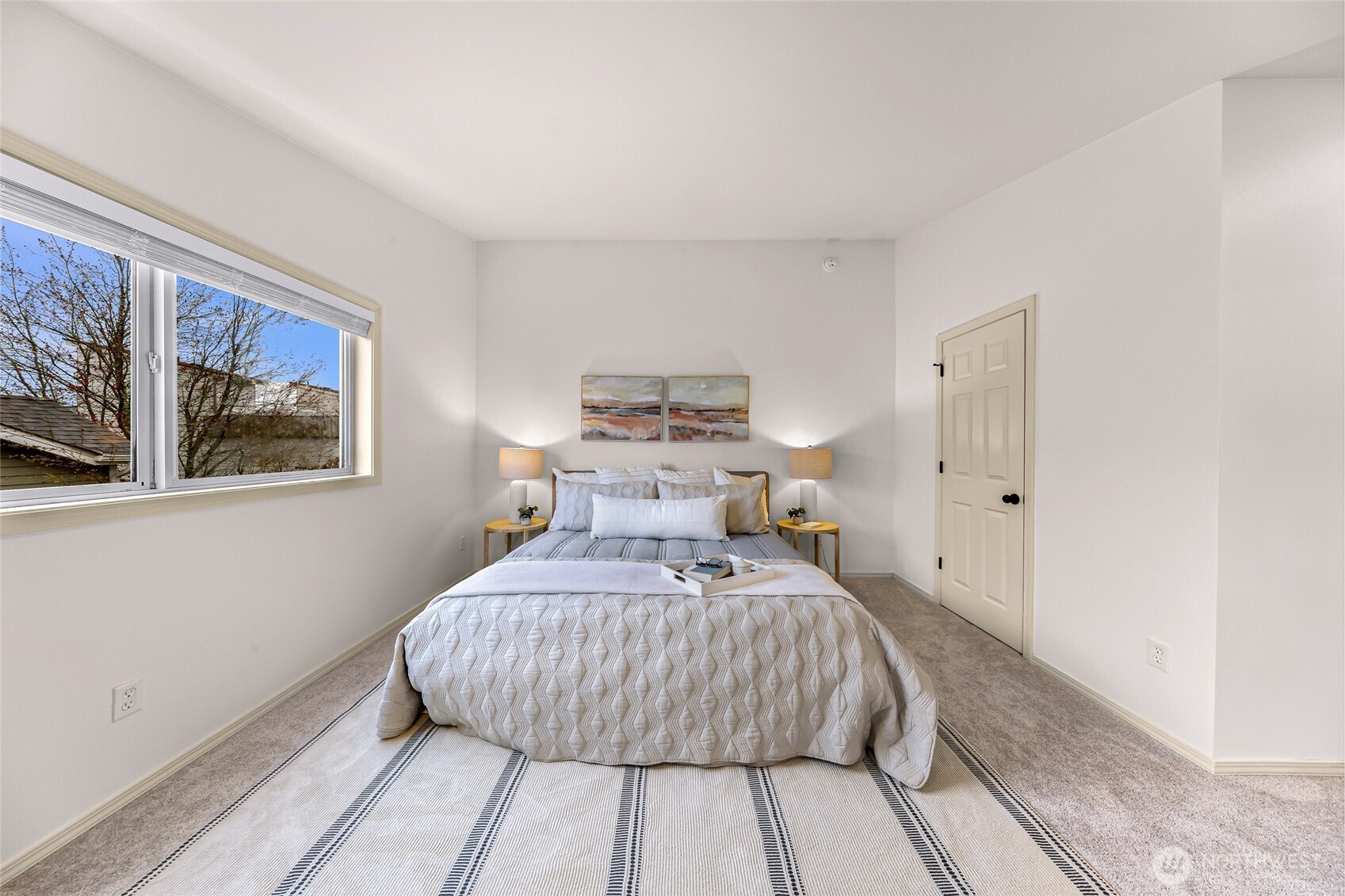 Stylish and turn-key Crown Hill townhome full of natural light and well-designed spaces. This lovely 3 bedroom, 2 full bath home is thoughtfully designed to maximize space without sacrificing function. The timeless kitchen boasts ample cabinetry and a generous pantry for all your culinary storage needs, as well as a gas range and butcher block island to suit the most discerning chef. Don’t forget the sunny south-facing deck to grow your herbs and vegetables! Invite all your friends for unforgettable dinner parties or to cheer on your favorite teams in the spacious living room and dining room. Convenience is paramount in the layout, with a huge primary bedroom + walk-in-closet, sweet second bedroom, as well as laundry, all on the upper level. A private bedroom on the lower level makes an excellent guest room or quiet office space. Incredibly hard to find in townhomes, enjoy a large garage with straight-in access AND wonderful backyard and patio space to round out the perfect place to call home. Located with easy access to Swanson's Nursery, Blue Ridge Coffee House, Metropolitan Market, Soundview Playfield, Carkeek Park, public transit, and many delicious restaurants and local shops. No HOA! Your future in Crown Hill awaits!
