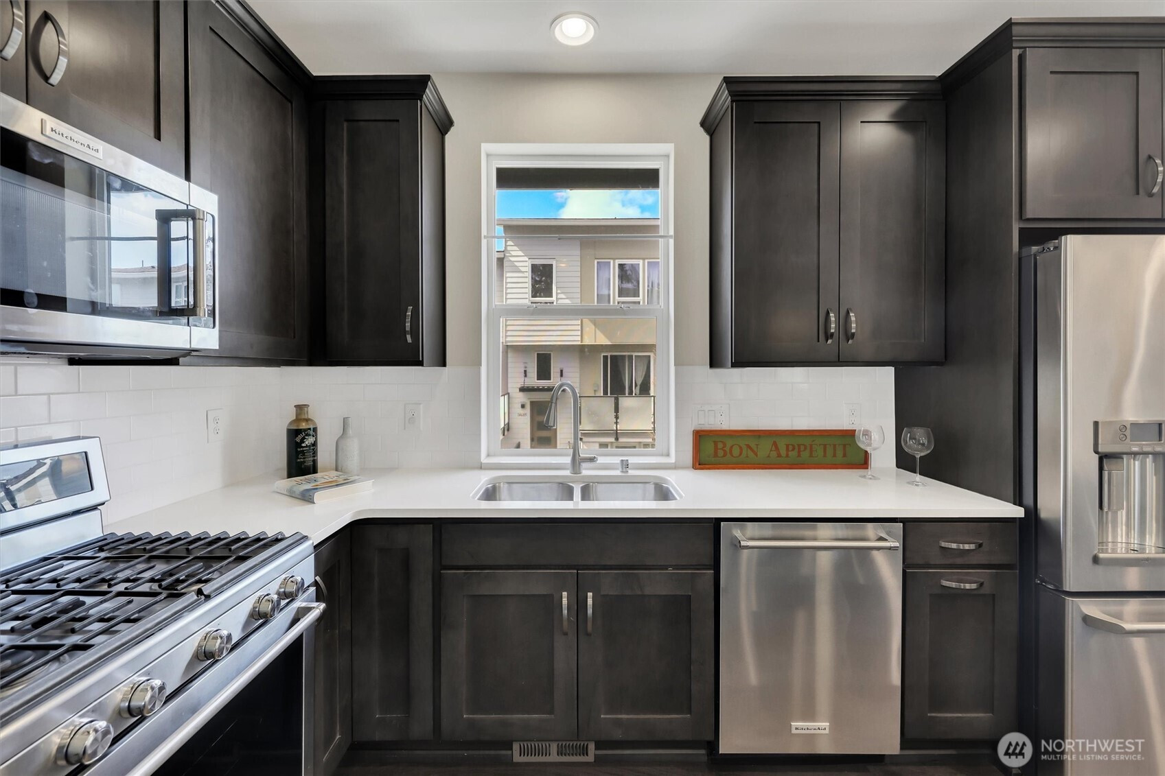 Welcome home to THE ONE! Located in the sought after 12 Degrees North community! This beautifully crafted, modern, single-family home stands out for its expansive open concept design and unbeatable Northeast Seattle location. The main living level is bright, airy, and designed for connection—where generous living and dining spaces flow seamlessly into a contemporary kitchen featuring stainless steel appliances, quartz countertops, and large island. High ceilings, abundant natural light, and beautiful wide plank floors elevate the space. The east facing deck extends the living area to the outdoors. Upstairs, the serene primary ensuite offers a spa inspired bath w/dual walk-in closets, additional bedroom ensuite, and large laundry room. The flexible lower level adds even more versatility with a private 3rd bedroom ensuite with slider to patio—ideal for guests, home office, or multi-generational living. A large 2 car garage completes the package. Enjoy unlimited hot water w/the tankless hot water system and central forced air provide modern comfort and convenience throughout. Set in a prime location near the Burke-Gilman Trail, Lake Washington, light rail, and quick access to I-5, this home delivers outstanding connectivity for both commuting and recreation. Located in a pet friendly community, it’s an exceptional opportunity for homeowners and investors seeking stylish, open concept living in one of Northeast Seattle’s most desirable areas. DON'T MISS THIS!