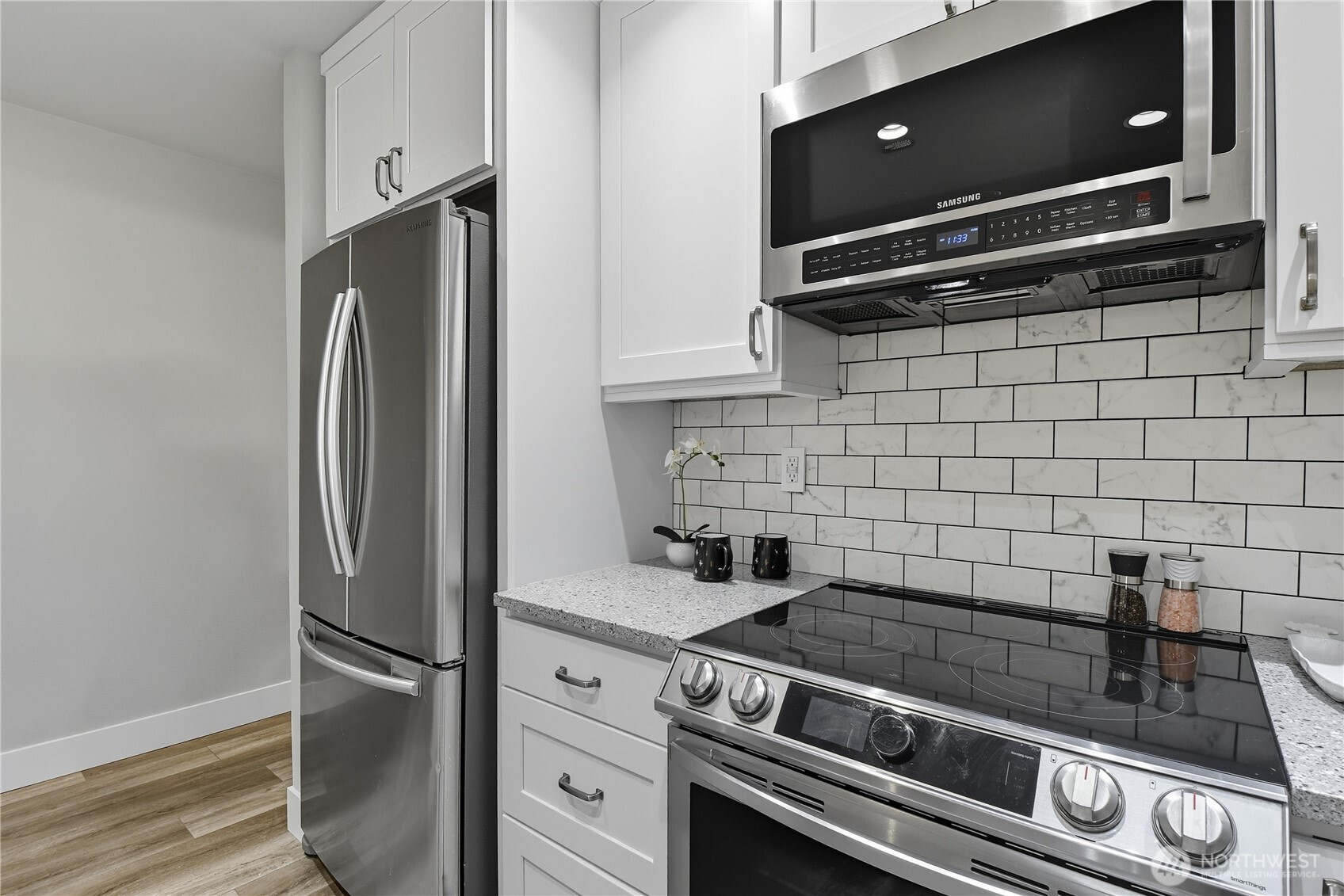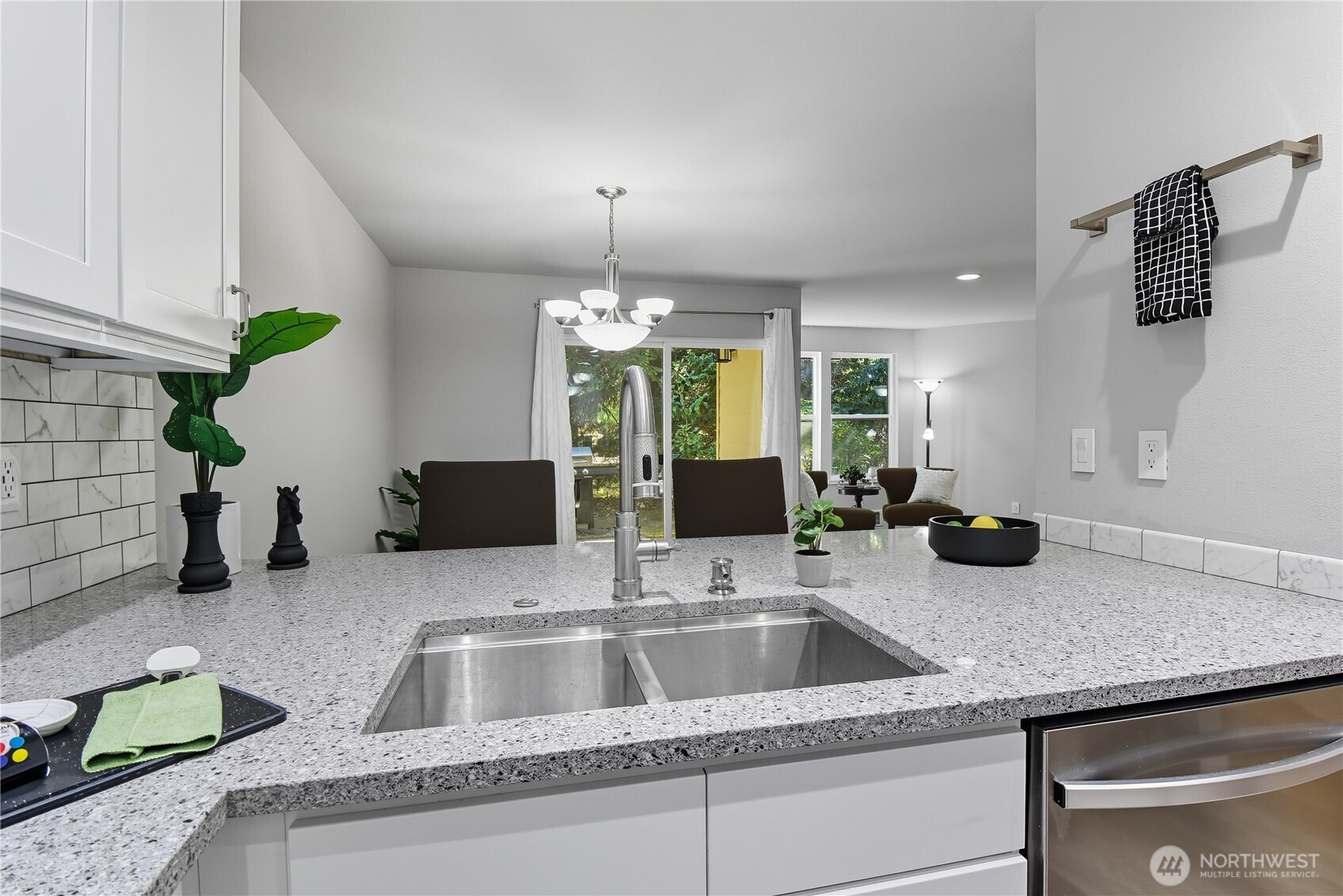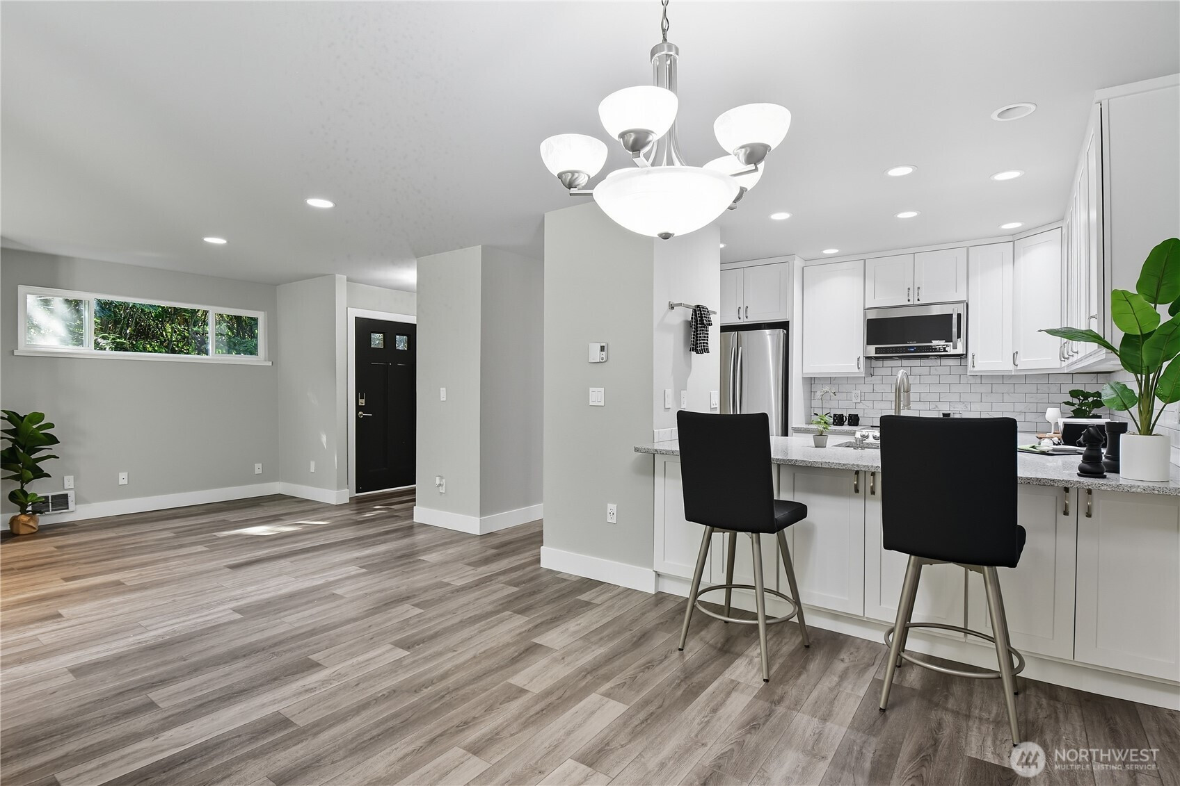 Beautifully Designed with a Modern Flare! This remodeled condo is nestled in PRIME location. Walking distance to Microsoft, Pro Club, Nintendo & East Link Light Rail to Downtown Redmond & Bellevue. Renovated interior with a dedicated workspace/office area. U-shaped kitchen features luxury Samsung SS appliances, countertop eating area, and custom cabinets with generous storage, plus an added pantry closet. LVP flooring in high traffic areas. Both bathrooms remodeled with modern lighting and plumbing fixtures, porcelain tile and glass shower enclosures. Laundry area has a convenient wash sink. One dedicated carport space plus extra exterior storage room. Enjoy pool & clubhouse. 2 pets allowed. A MUST SEE! Listing agent related to seller.