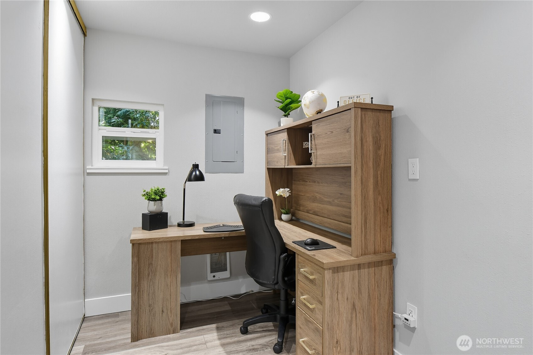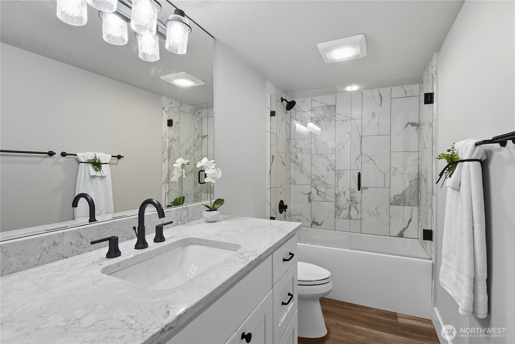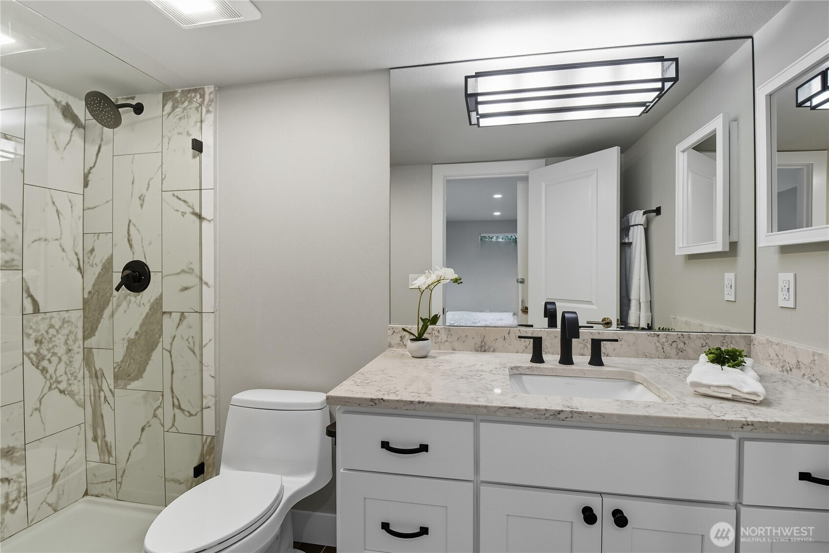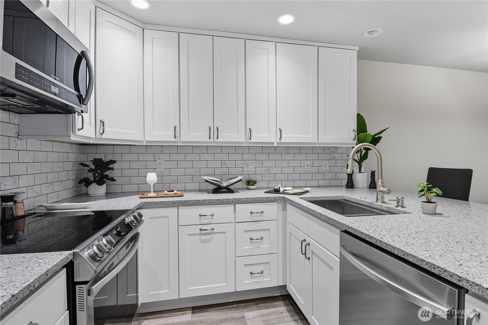 Beautifully Designed with a Modern Flare! This remodeled condo is nestled in PRIME location. Walking distance to Microsoft, Pro Club, Nintendo & East Link Light Rail to Downtown Redmond & Bellevue. Renovated interior with a dedicated workspace/office area. U-shaped kitchen features luxury Samsung SS appliances, countertop eating area, and custom cabinets with generous storage, plus an added pantry closet. LVP flooring in high traffic areas. Both bathrooms remodeled with modern lighting and plumbing fixtures, porcelain tile and glass shower enclosures. Laundry area has a convenient wash sink. One dedicated carport space plus extra exterior storage room. Enjoy pool & clubhouse. 2 pets allowed. A MUST SEE! Listing agent related to seller.
