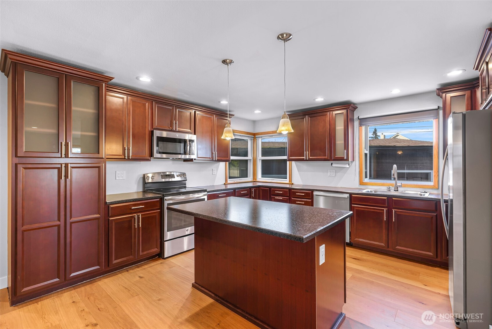 Tucked away in a quiet neighborhood of SeaTac this charming home is offering both comfort and opportunity. Enter to bright, open living spaces with brand-new flooring throughout, and enjoy an expansive kitchen with plenty of counter space and storage. The spacious primary suite features a generous en-suite bathroom and walk-in closet, while approximately 500 sq. ft. of unfinished basement and a large attic provide room for expansion or extra storage. Recent upgrades include a new roof, seismic retrofits, a Mitsubishi central HVAC system, new water heater, updated flooring, and fully redone electrical for modern efficiency. Situated on an oversized ¼-acre double lot with RV parking, black water drainage, and a detached 2-car garage.