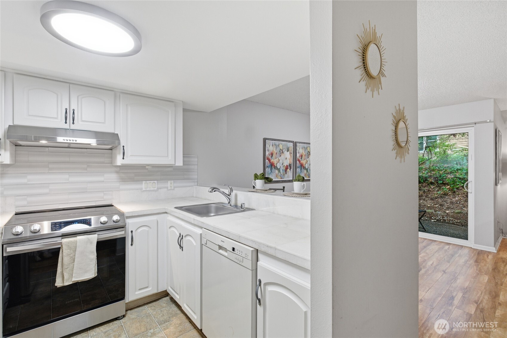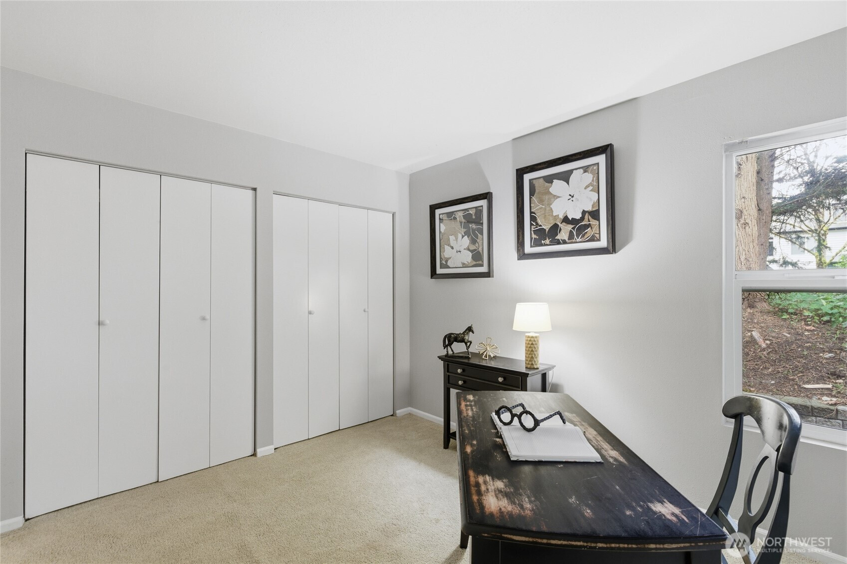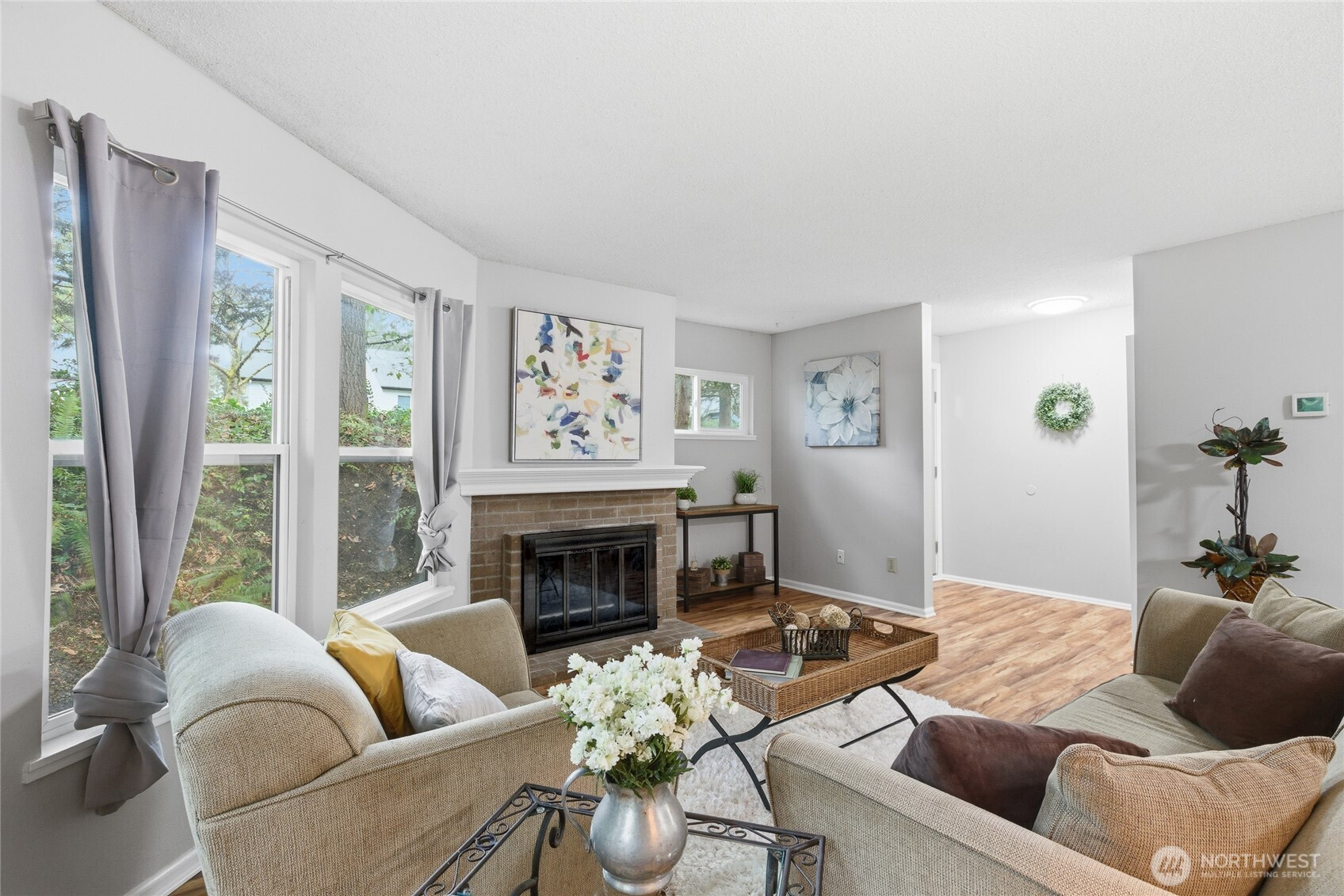 Modern Convenience Meets Serene Living. Nestled in the heart of Bellevue’s Bridle Trails neighborhood, this spacious 2-bedroom, 2-bathroom ground-floor end unit offers the perfect blend of privacy and accessibility. Just blocks from the Microsoft campus and minutes from SR-520, your commute has never been easier. Enjoy an open-concept living area anchored by a cozy wood-burning fireplace, leading out to a charming private patio—ideal for morning coffee. With a little imagination, the oversized utility room provides rare extra space for an office nook, home gym or hobby room - what ever extra space it is you need. Take advantage of community amenities including a pool and clubhouse, all while being situated in the top-rated Bellevue School District. Welcome home to Forest Glade!