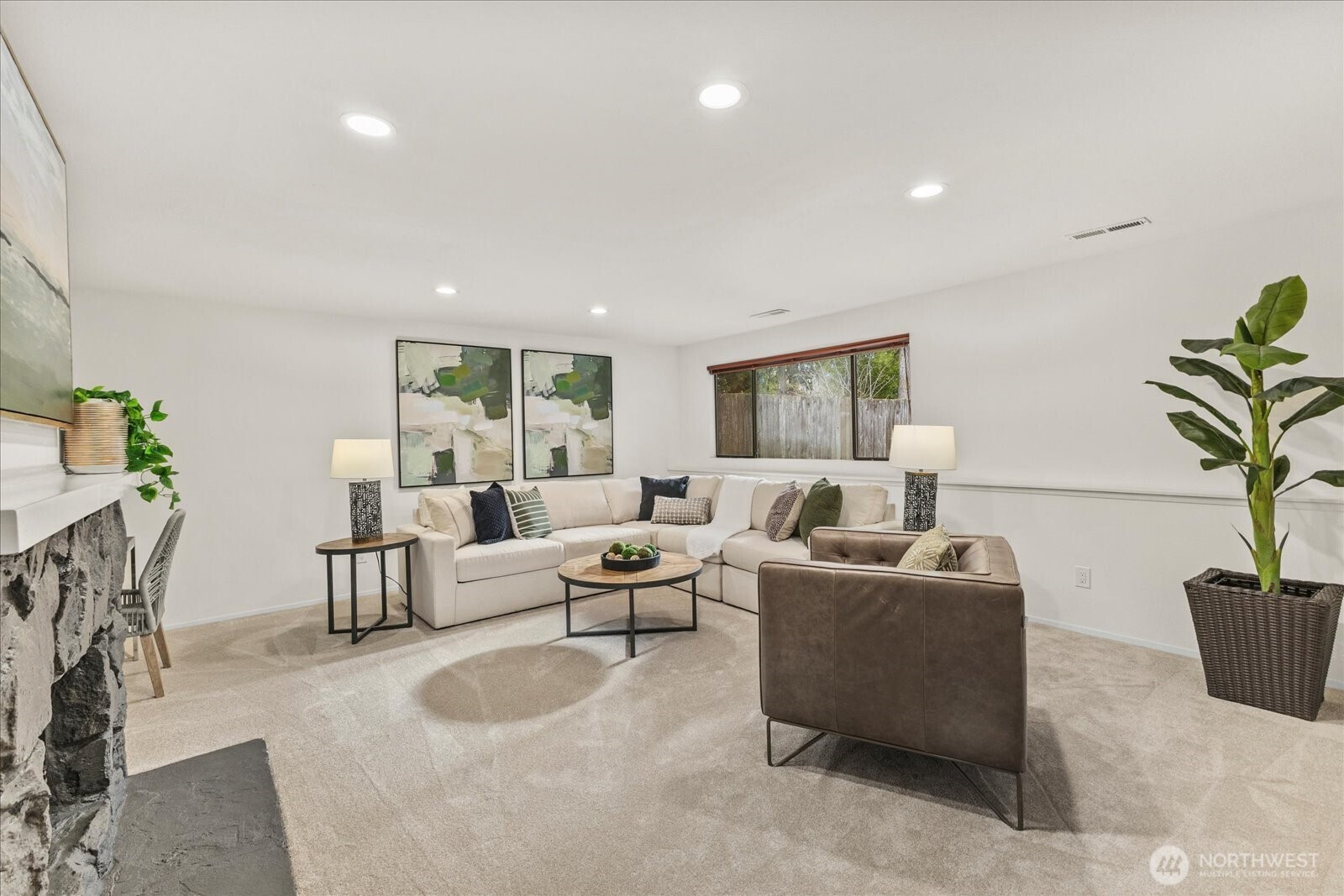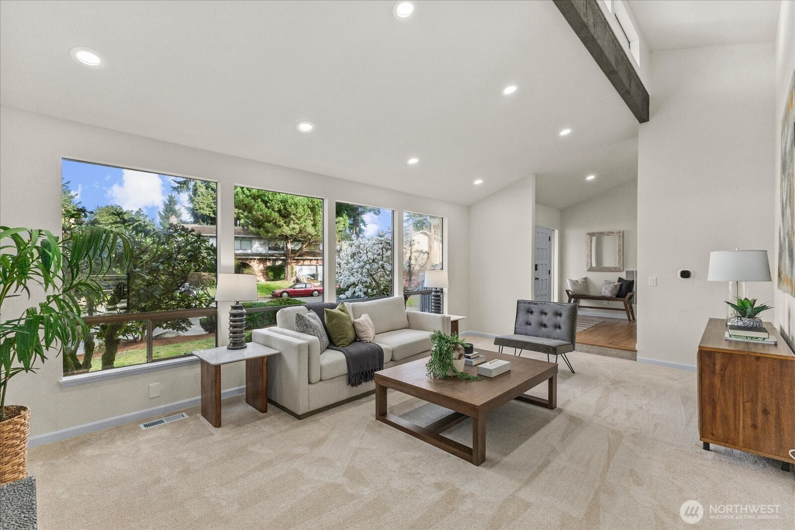 Just listed! Thoughtfully refreshed and truly move-in ready, this light-filled tri-level home is ideally located, just minutes to Kirkland, Redmond Town Center and Bellevue, with convenient access to shopping, dining, parks, trails, major freeways, and nearby bus lines. It is truly walking distance to Grass Lawn Park, local golf and Microsoft campus. Tucked on a quiet cul-de-sac, this 4-bedroom, 2.25-bath home features soaring vaulted ceilings, skylights, and expansive picture windows that flood the space with natural light. Enjoy a bright living room with fresh carpet and a wood burning fireplace, an entertaining-sized dining room, and a kitchen with granite counters, stainless steel appliances, and an eating area. The versatile lower-level room offers ideal space for a rec room, home office, or guest area. The primary suite includes an attached bath for added comfort. Step outside to a spacious deck overlooking a large, fully fenced yard, which is perfect for summer BBQs, gatherings, and relaxing evenings. Located in the highly rated Lake Washington School District, the property also offers a generous lot with potential for RV or boat parking. A great opportunity to own a quality home in a prime location!