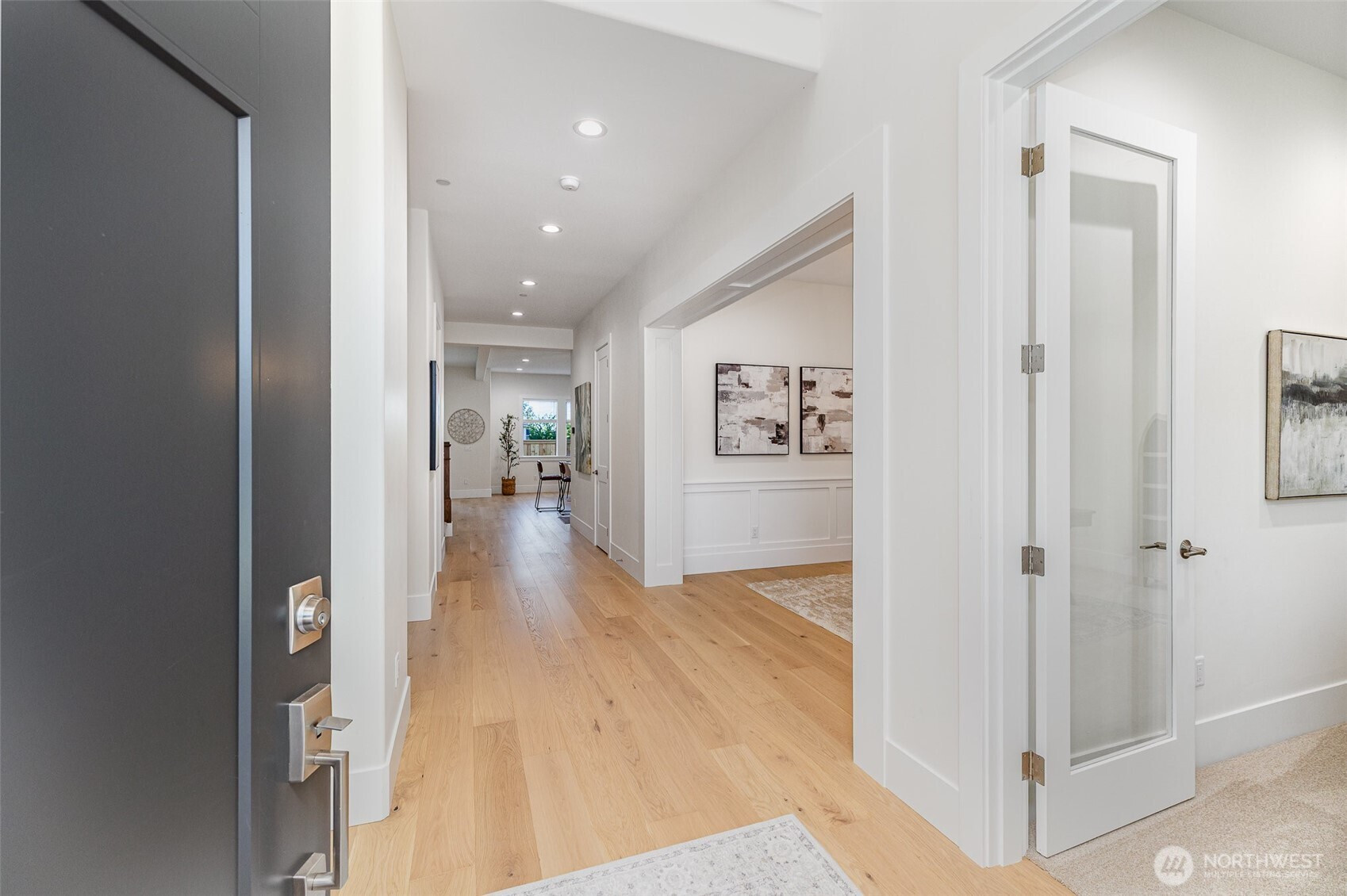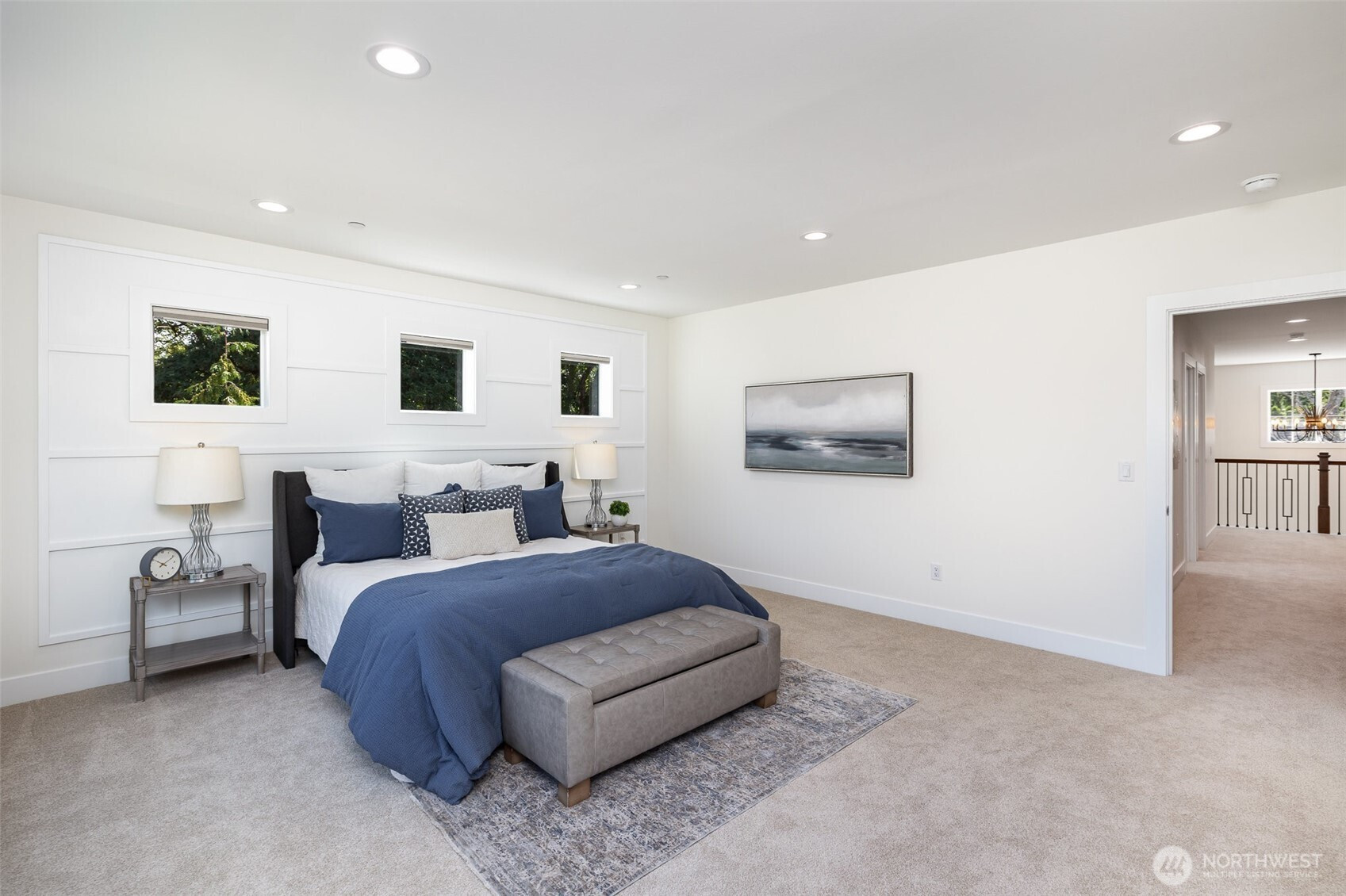 Experience 4,999 SF of exquisite, custom-crafted luxury in this masterfully designed 6 Bed, 5 Full + 2 Half Bath estate, complete with a stately Office, airy Loft & expansive Bonus Room. Tucked away on a tranquil, private street near Grass Lawn Park & acclaimed Ben Rush Elementary/Lake WA schools. Be invited into a soaring open-to-above foyer leading to refined, light-filled living spaces. The gourmet kitchen impresses with rich Huntwood cabinetry, Thermador appliances, walk-in pantry & a fully outfitted second kitchen (spice kitchen). Dual lavish primary suites, spa-inspired baths, upscale finishes, dual EV chargers, a finished garage, heated floors in all baths & many more to list. Backs to a vast meadow—privacy, beauty & grandeur!
