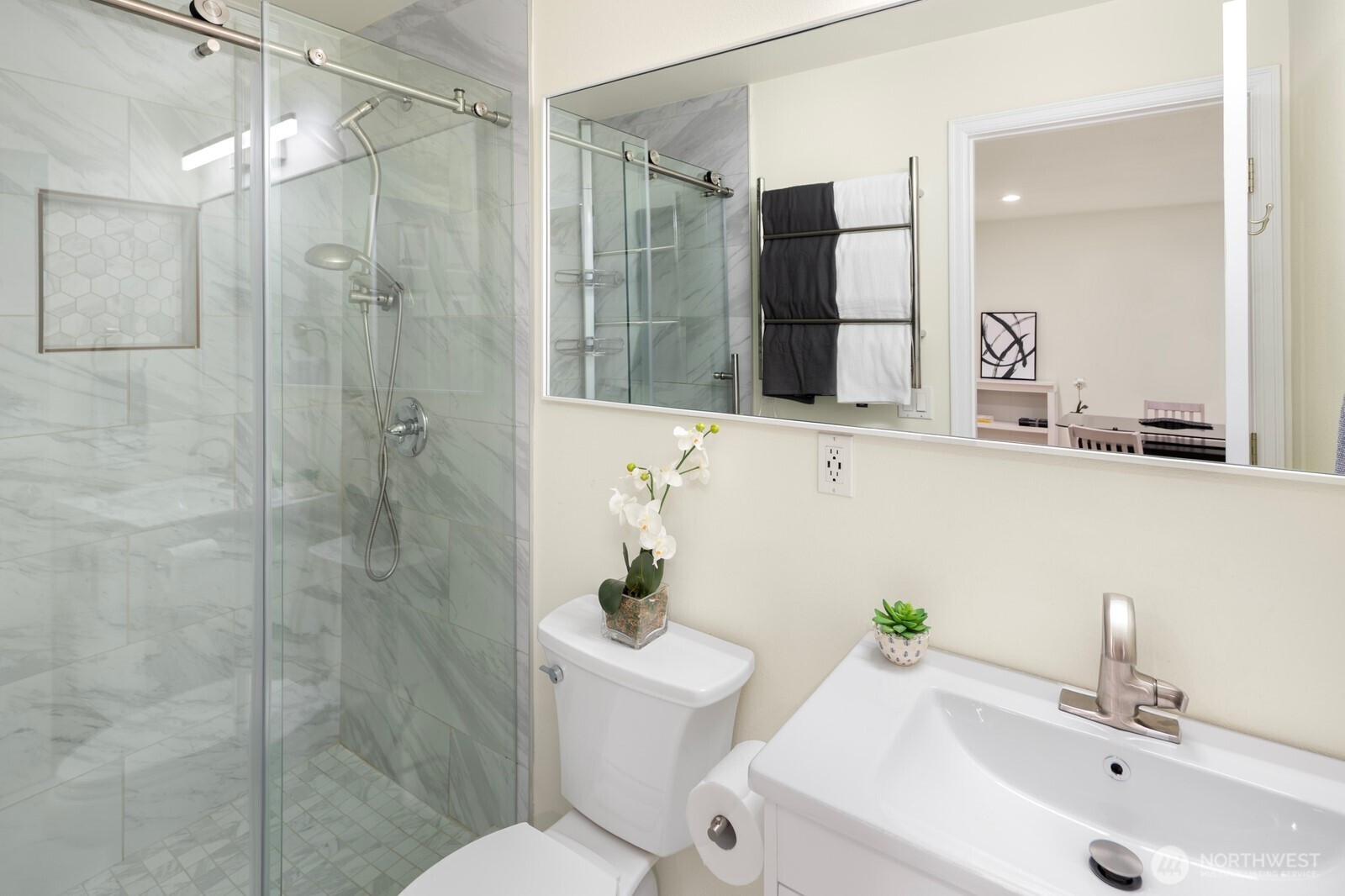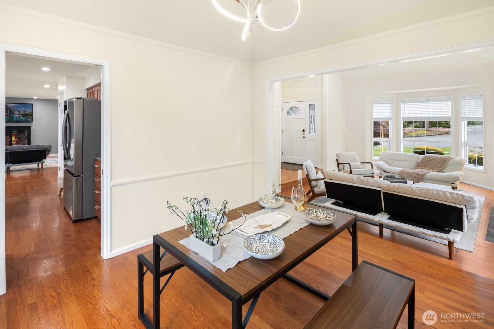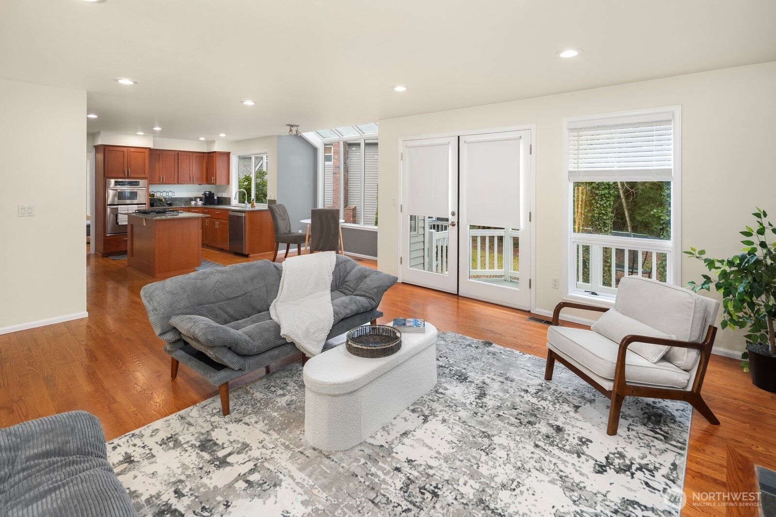 Tucked away on a quiet cul-de-sac in West Redmond’s desirable Pinehurst neighborhood, this beautifully updated home backs to a serene greenbelt, offering rare privacy and a peaceful natural setting. Thoughtfully updated in 2022, the home features a sought-after first floor guest suite with en-suite bath, ideal for multi-generational living, visiting guests, or a private home office.Designed for both everyday living and entertaining, the gourmet kitchen and casual dining area flow seamlessly into a spacious family room anchored by a cozy wood-burning fireplace. Step outside to a generous deck and private backyard, perfect for summer gatherings, outdoor dining, or quiet evenings surrounded by nature.Upstairs, the expansive primary suite offers a spa-like retreat with skylight, soaking tub, towel warmer, and walk-in closet. Two additional bedrooms provide flexible space for guests or work-from-home needs.Located in the highly regarded Lake Washington School District, the home offers exceptional convenience — walk to Grass Lawn Park, bike to Marymoor Park, and reach Microsoft, Downtown Redmond, Downtown Kirkland, and Lake Sammamish within minutes.A rare combination of privacy, thoughtful updates, and unbeatable location. Welcome home.