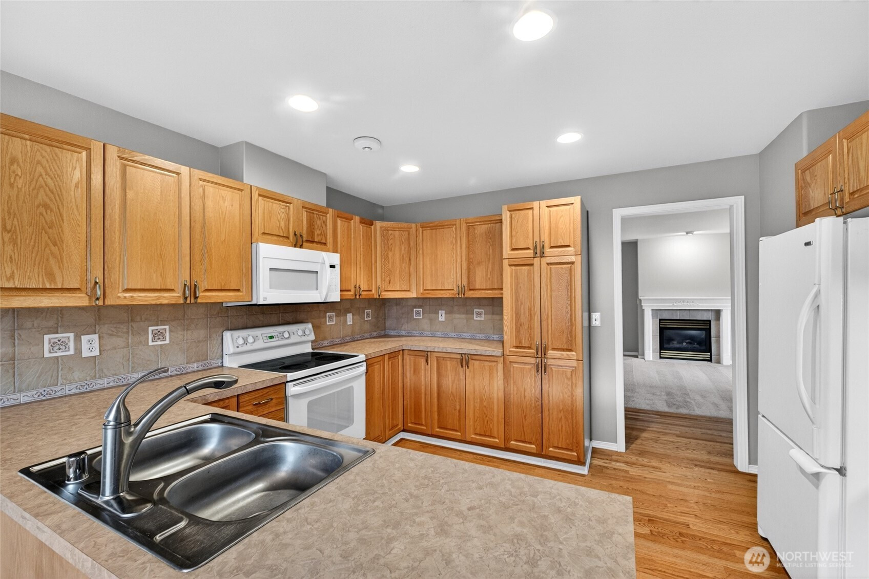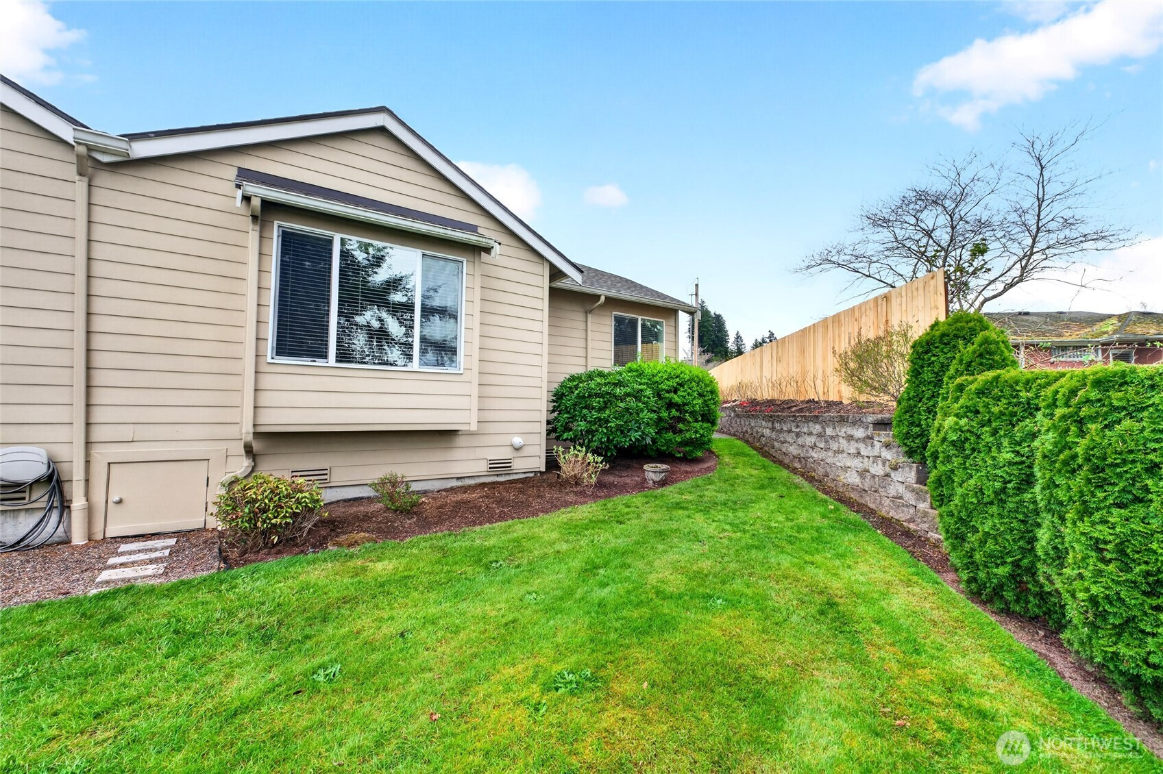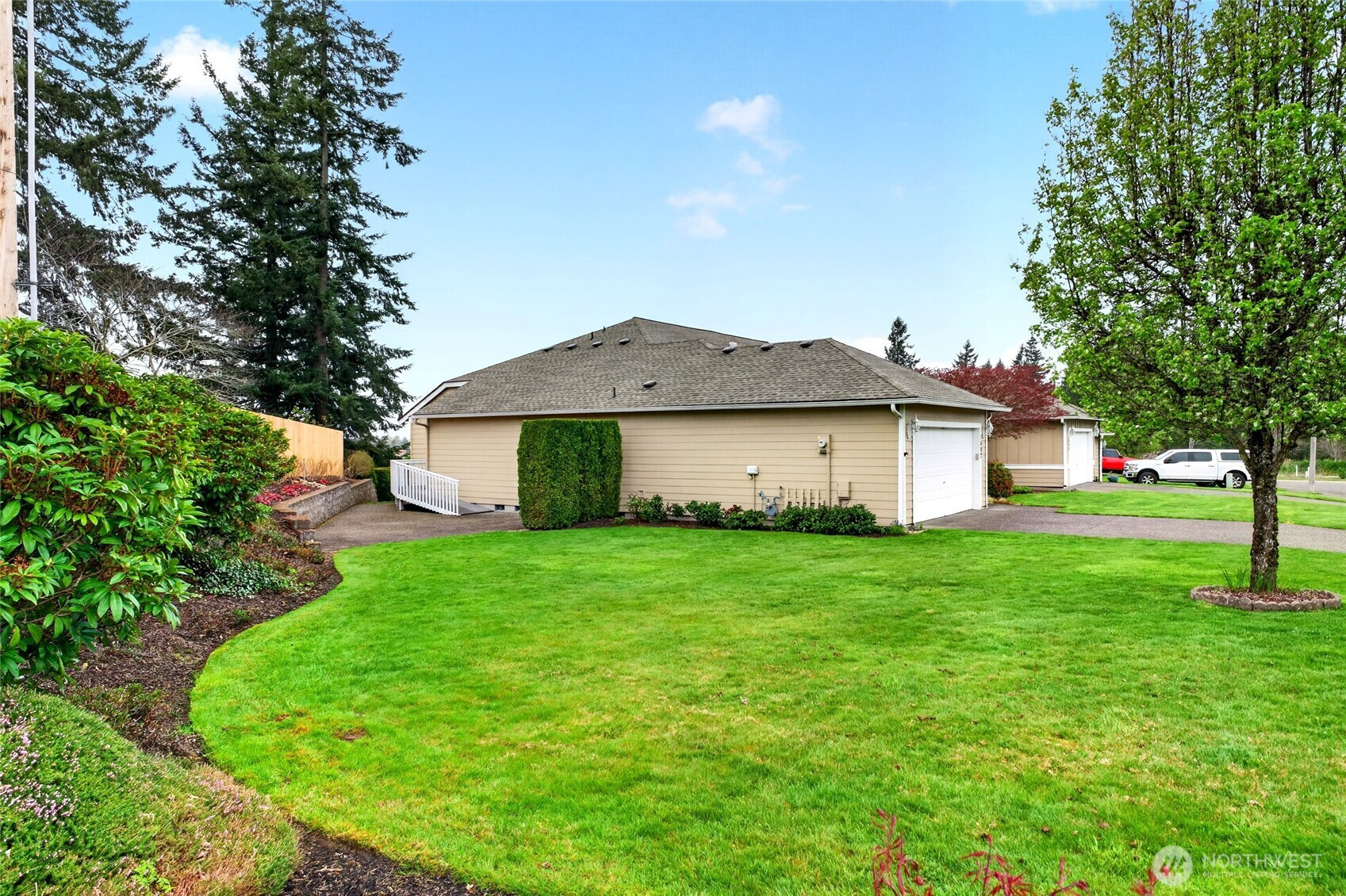 Welcome to Ridge Haven Condos in the Heart of Enumclaw, where comfort meets effortless elegance. This beautifully appointed main-level residence offers 2 bedrooms, 1.75 bathrooms, and a sophisticated den or flex space—perfect for both quiet moments and productivity. The thoughtfully designed floor plan showcases a spacious kitchen that flows seamlessly into an inviting living area, anchored by a warm gas fireplace. Expansive windows bathe the home in natural light, creating an airy and refined ambiance throughout. The primary suite is a private retreat, complete with a well-appointed en suite bath and a generous walk-in closet. Every detail has been designed to offer both comfort and style. An attached 2-car garage provides both convenience and ample storage. Step outside to discover lush, mature landscaping that frames the home in natural beauty. The secluded yard offers a serene escape, featuring a deck ideal for relaxing or entertaining in a peaceful setting. Situated on a desirable corner unit with an expansive side yard, this home offers an added sense of space and privacy. Perfectly positioned just moments from downtown Enumclaw, the golf course, Mud Mountain Dam Park, and Mount Peak hiking trails, with Crystal Mountain within easy reach. This is Pacific Northwest living at its finest—where small-town charm meets year-round recreation.