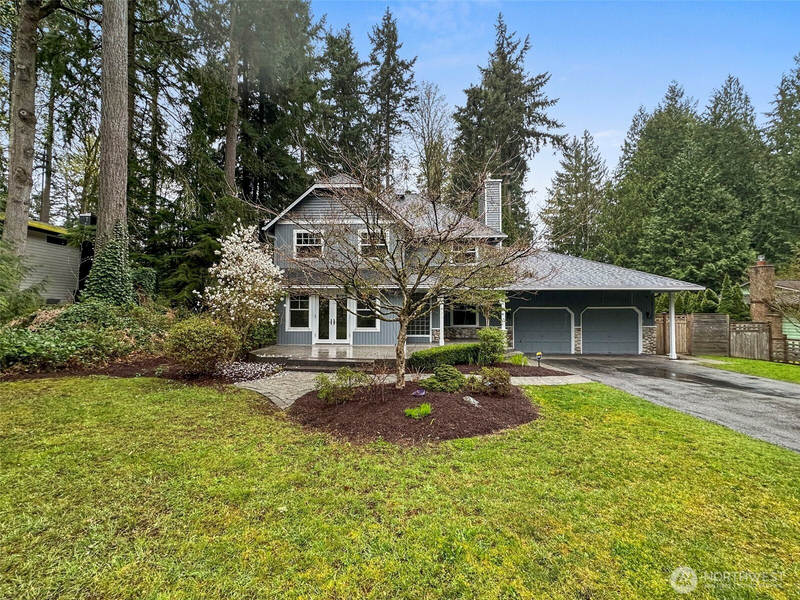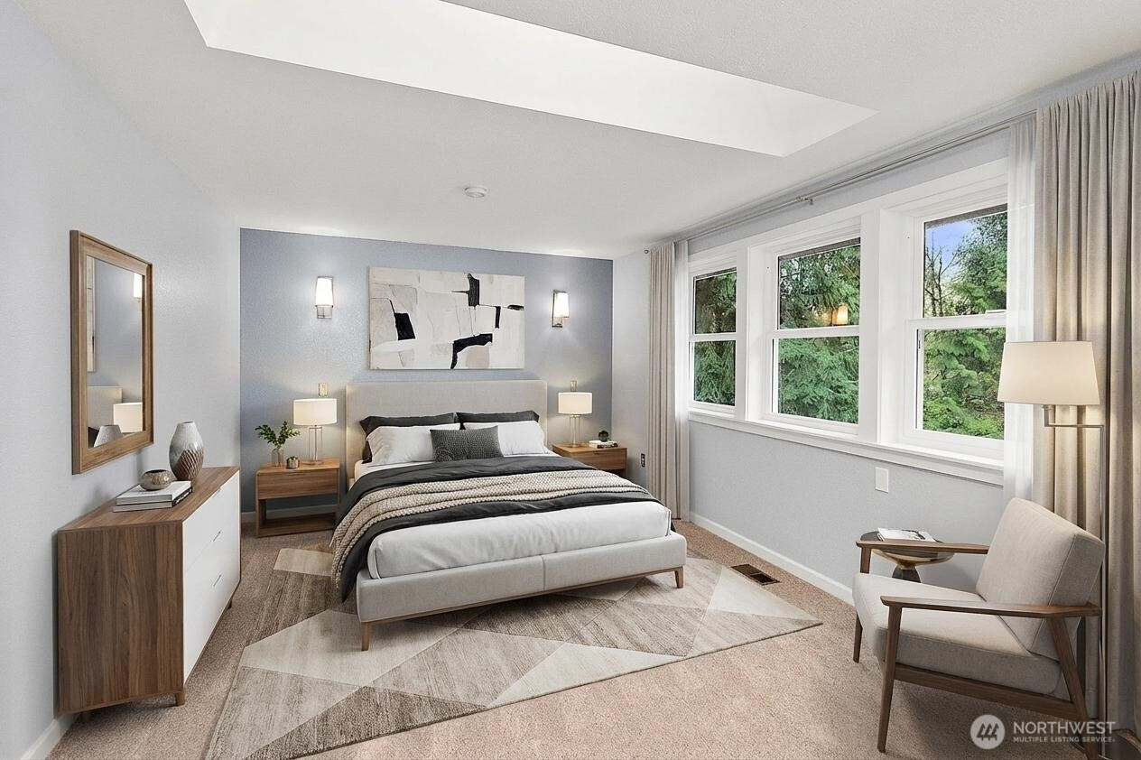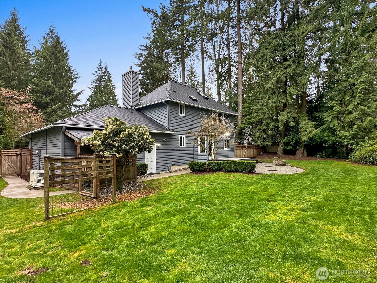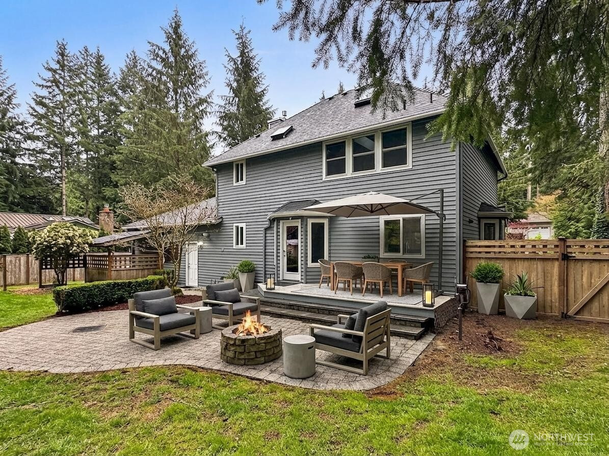 Welcome to Wellington Hills Estates-where comfort, privacy, and timeless appeal meet in this beautifully refreshed Woodinville home. Thoughtfully updated with new interior paint, plush carpet, and a new roof (2025), this move-in ready abode offers a light-filled, inviting atmosphere throughout. Featuring three spacious bedrooms and an easy-flowing layout, the home lives larger than expected —perfect for both everyday living and entertaining. A cozy gas fireplace anchors the main living space, creating a warm and welcoming setting. Step outside to your own private retreat. The oversized, fully fenced backyard (just shy of a 1/2 acre) backs to a serene greenbelt and is framed by mature landscaping for added privacy. Enjoy year-round outdoor living on the custom paver patio with fire pit-ideal for gatherings or quiet evenings. An insulated indoor/outdoor dog house adds thoughtful functionality. Additional highlights include new exterior paint (2025), newer windows and skylights, updated appliances, newer sulation, a whole-house Generac generator + garage storage that stays. Located in the sought-after Wellington Hills Estates community, just minutes from Woodinville's wineries, trails, park, dining, and amenities— this is a rare opportunity to own a turn-key home with exceptional indoor and outdoor living in an idyllic setting.