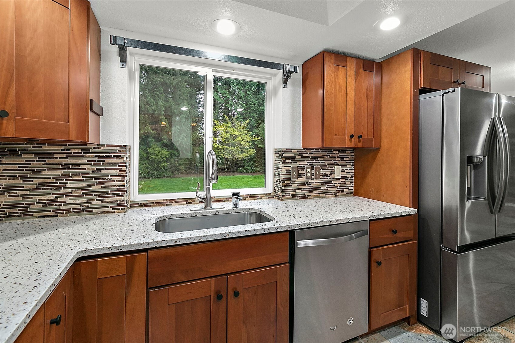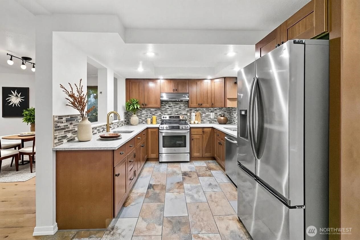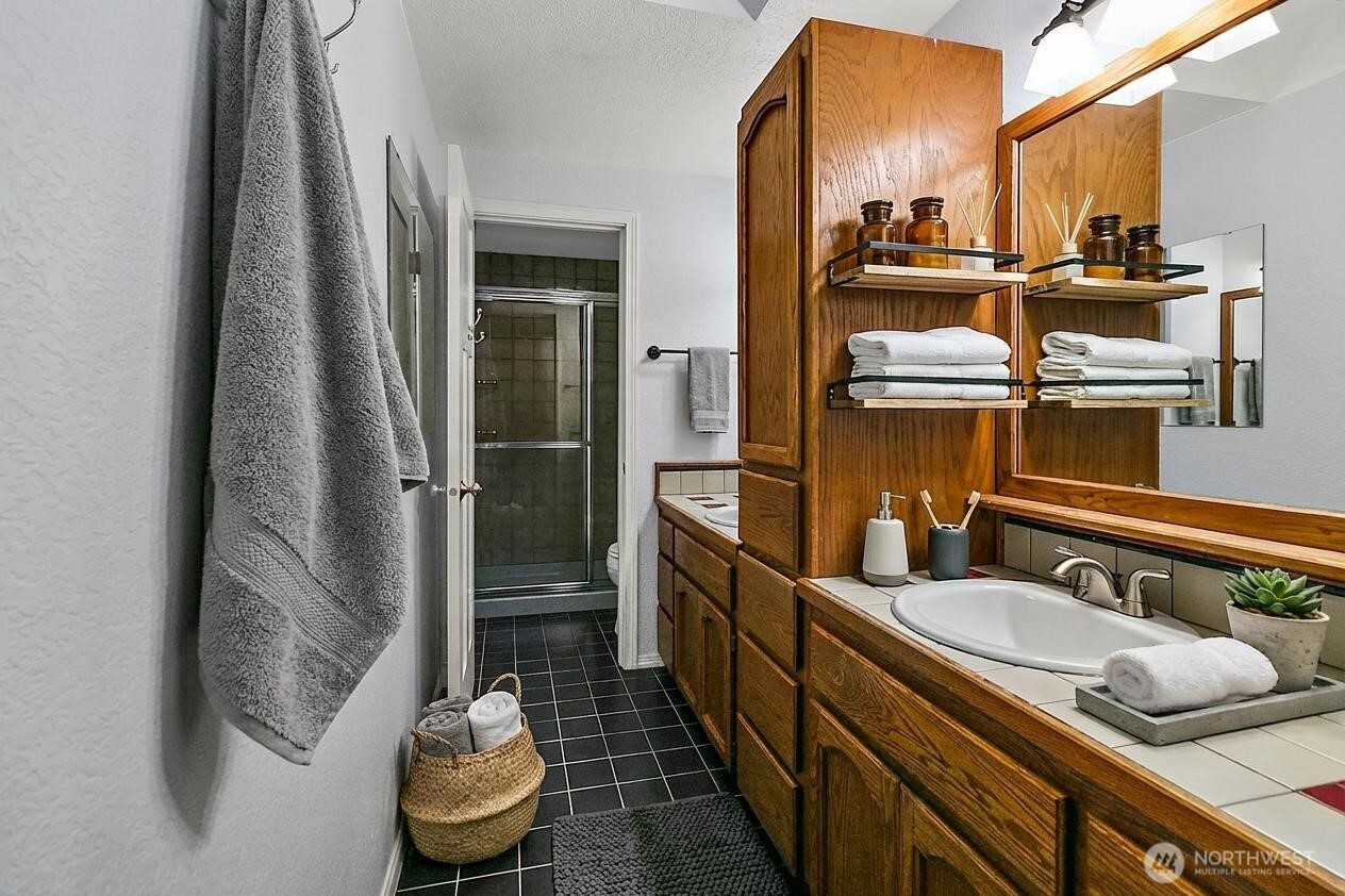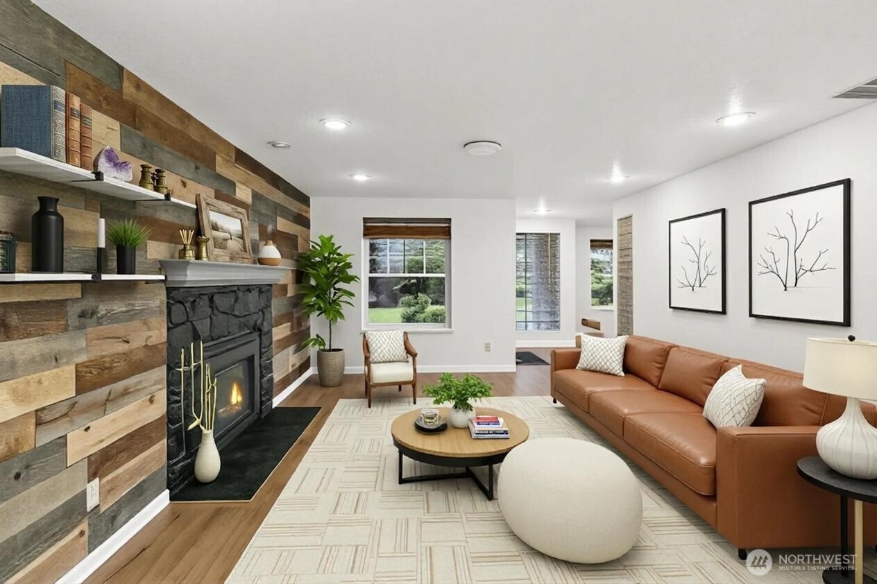 Welcome to Wellington Hills Estates-where comfort, privacy, and timeless appeal meet in this beautifully refreshed Woodinville home. Thoughtfully updated with new interior paint, plush carpet, and a new roof (2025), this move-in ready abode offers a light-filled, inviting atmosphere throughout. Featuring three spacious bedrooms and an easy-flowing layout, the home lives larger than expected —perfect for both everyday living and entertaining. A cozy gas fireplace anchors the main living space, creating a warm and welcoming setting. Step outside to your own private retreat. The oversized, fully fenced backyard (just shy of a 1/2 acre) backs to a serene greenbelt and is framed by mature landscaping for added privacy. Enjoy year-round outdoor living on the custom paver patio with fire pit-ideal for gatherings or quiet evenings. An insulated indoor/outdoor dog house adds thoughtful functionality. Additional highlights include new exterior paint (2025), newer windows and skylights, updated appliances, newer sulation, a whole-house Generac generator + garage storage that stays. Located in the sought-after Wellington Hills Estates community, just minutes from Woodinville's wineries, trails, park, dining, and amenities— this is a rare opportunity to own a turn-key home with exceptional indoor and outdoor living in an idyllic setting.