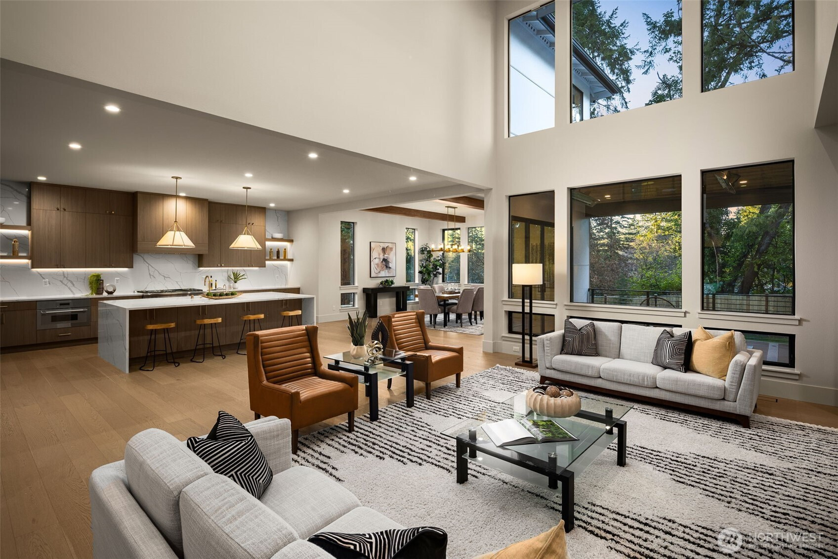 Experience luxury living in this newly completed Northwest Contemporary home by Belle Crown Homes, ideally located on a large, private lot within the boundaries of award-winning Newport High School. Thoughtfully designed with high-end finishes and modern smart features, this home offers an open, light-filled floor plan perfect for both everyday living and entertaining. The main level includes a private guest suite, a chef’s kitchen with custom wood cabinetry, dual dishwashers, and a dramatic two-story great room. Covered outdoor living includes Sonos built-in speakers, electric heaters, and custom decking, all overlooking a spacious backyard. Luxurious primary suite features a stunning spa like bath, perfect for relaxation. Additional highlights include heated tile floors, Brizo Litze instant hot water, and carefully selected designer fixtures throughout. Sustainable features such as solar panels, dual heat pumps, and spray foam insulation enhance efficiency, while the expansive four-car garage with epoxy floors and finished walls provides abundant space for vehicles, storage, or hobbies. Conveniently located near Bellevue parks, shopping, trails, and amenities, this exceptional home blends sophistication, comfort, and modern functionality.