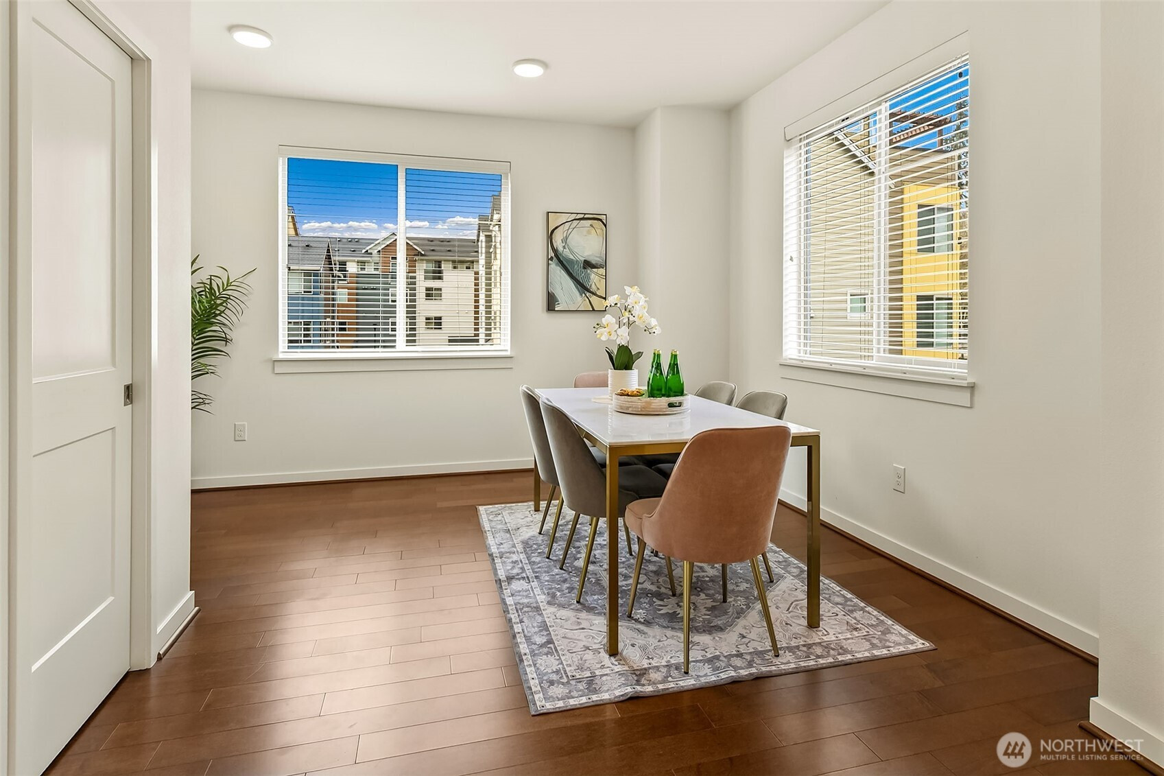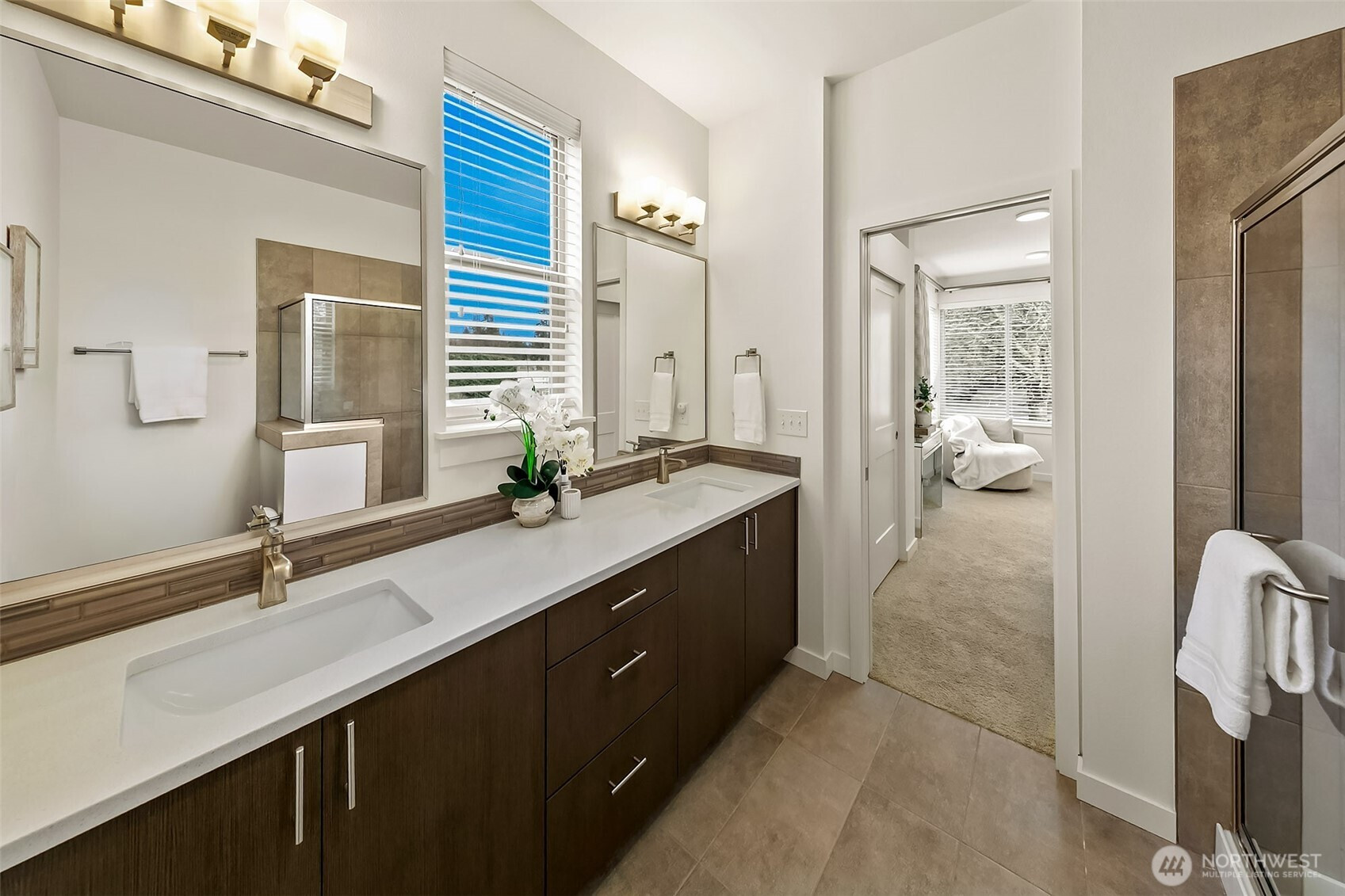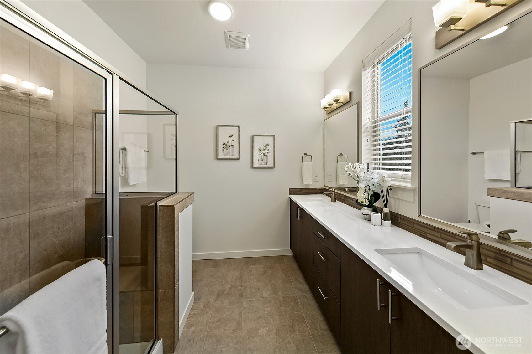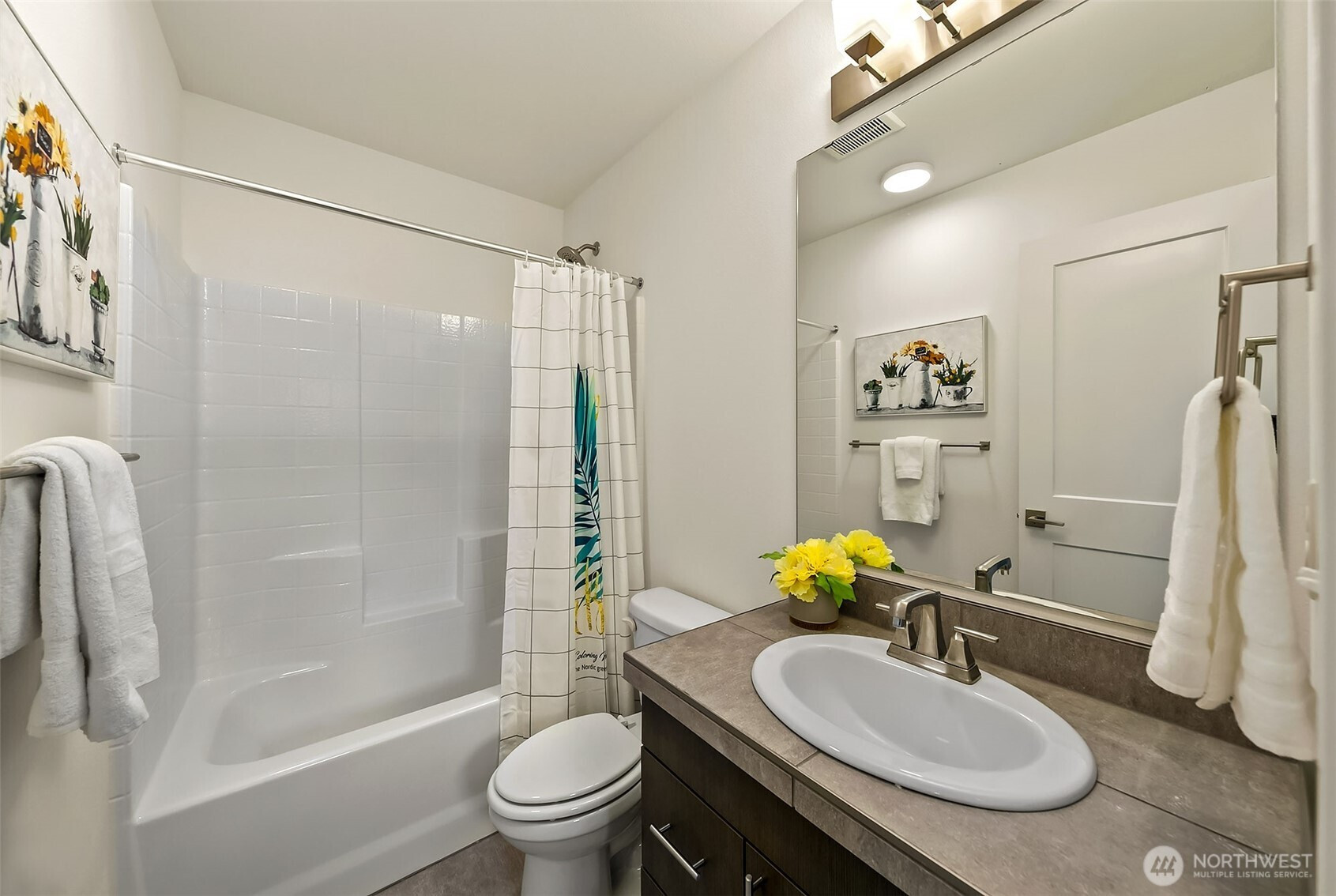 Rare to find end unit in Upton at Crossroads! This Bright & Modern 3b/3B home is maintained exceptional by original owner with well designed details, Main level filled with nature light as End Unit. Open kitchen, large Island, living, dining on main level. Master suite & one room adjacent to a hallway bathroom on second level. Top level featured with bonus room, a full private suite and private balcony overlooking the park surrounded by greenery. Customized blinds & curtained throughout. Oversized 2-car tandem garage provide ample storage space. Mins to mall, parks & restaurants. Pre-inspected, low HOA with water & sewer covered. NO rental cap!