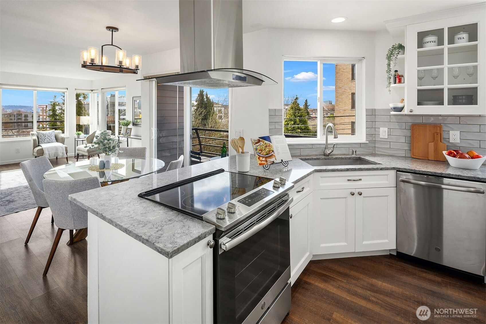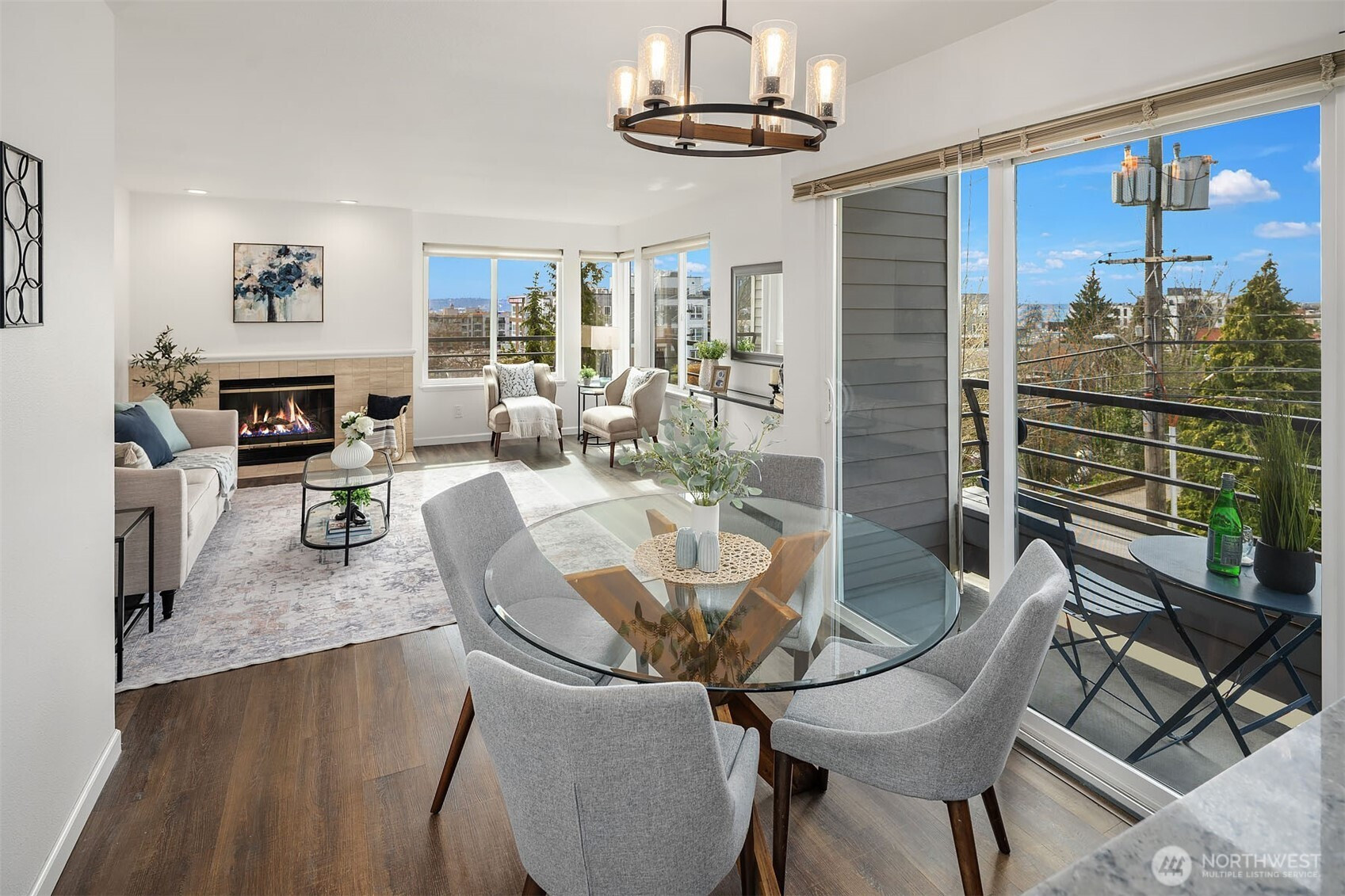 A quintessential Seattle location and perched on a quiet side street, this spacious and light-filled condo feels like home. Superb location in the sought-after Queen Anne community, you'll enjoy both City and Space Needle views from your private corner unit. Beautifully updated throughout, featuring a modernized kitchen with custom cabinetry, slab quartz countertops, full-height tile backsplash and newer appliances including a range hood for venting. Gorgeous, like-new bathrooms include today's rich & neutral designer tiles, new fixtures, sinks and custom vanities. Generously sized primary bedroom has en-suite bathroom, two large closets and more iconic city views. Versatile second room can function as bedroom or office. Additional features include in-unit laundry, a cozy wood-burning fireplace and fresh paint. Relax and savor the magnificent year-round Seattle sunsets from your west-facing deck. Dedicated, secured parking and private additional storage room off garage are included. A great walking score, just minutes from both upper and lower Queen Anne, Seattle Center, Downtown, the newly designed Seattle Waterfront, and South Lake Union. Offering the best of urban living in one of Seattle's most desirable neighborhoods!