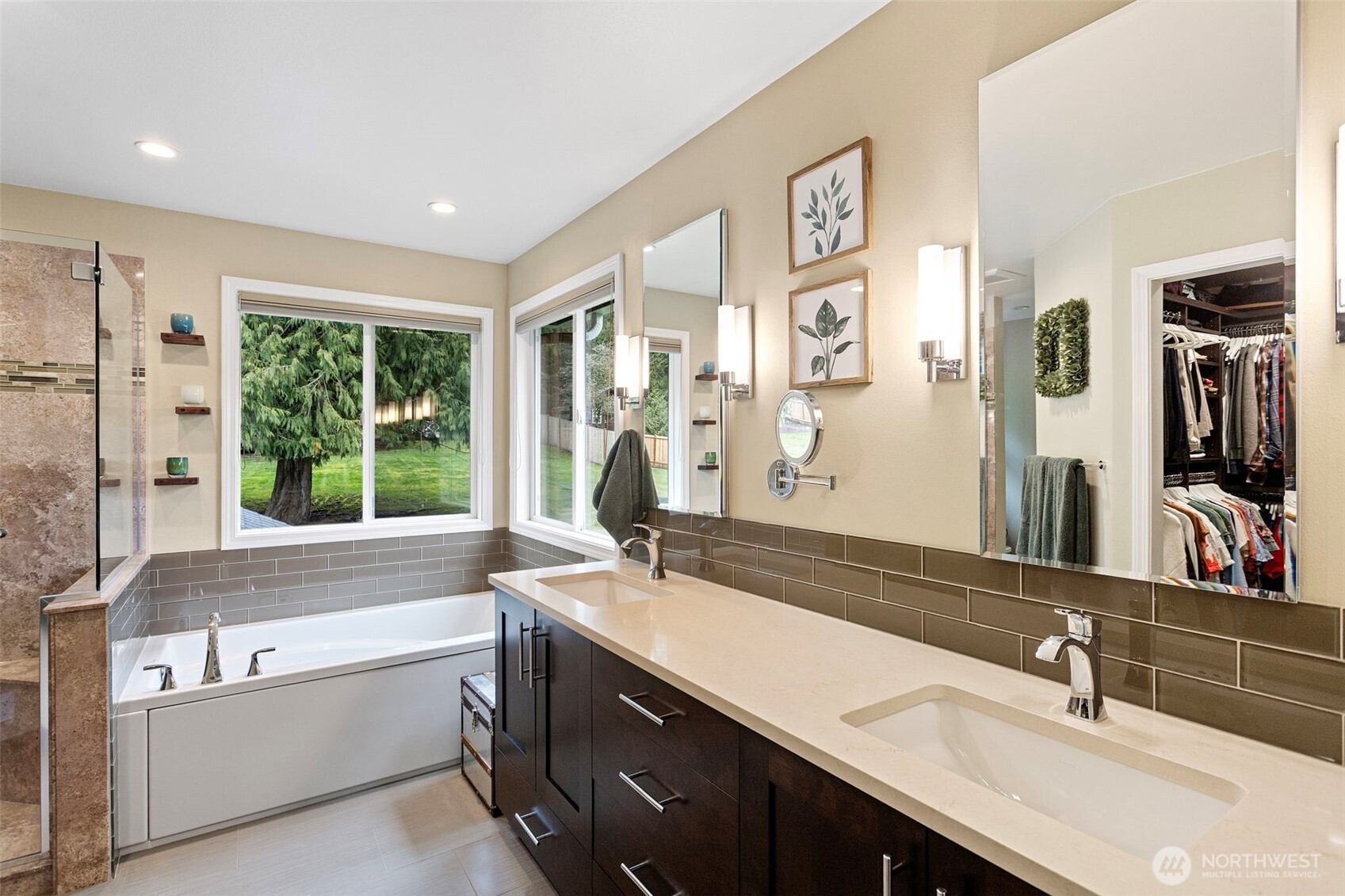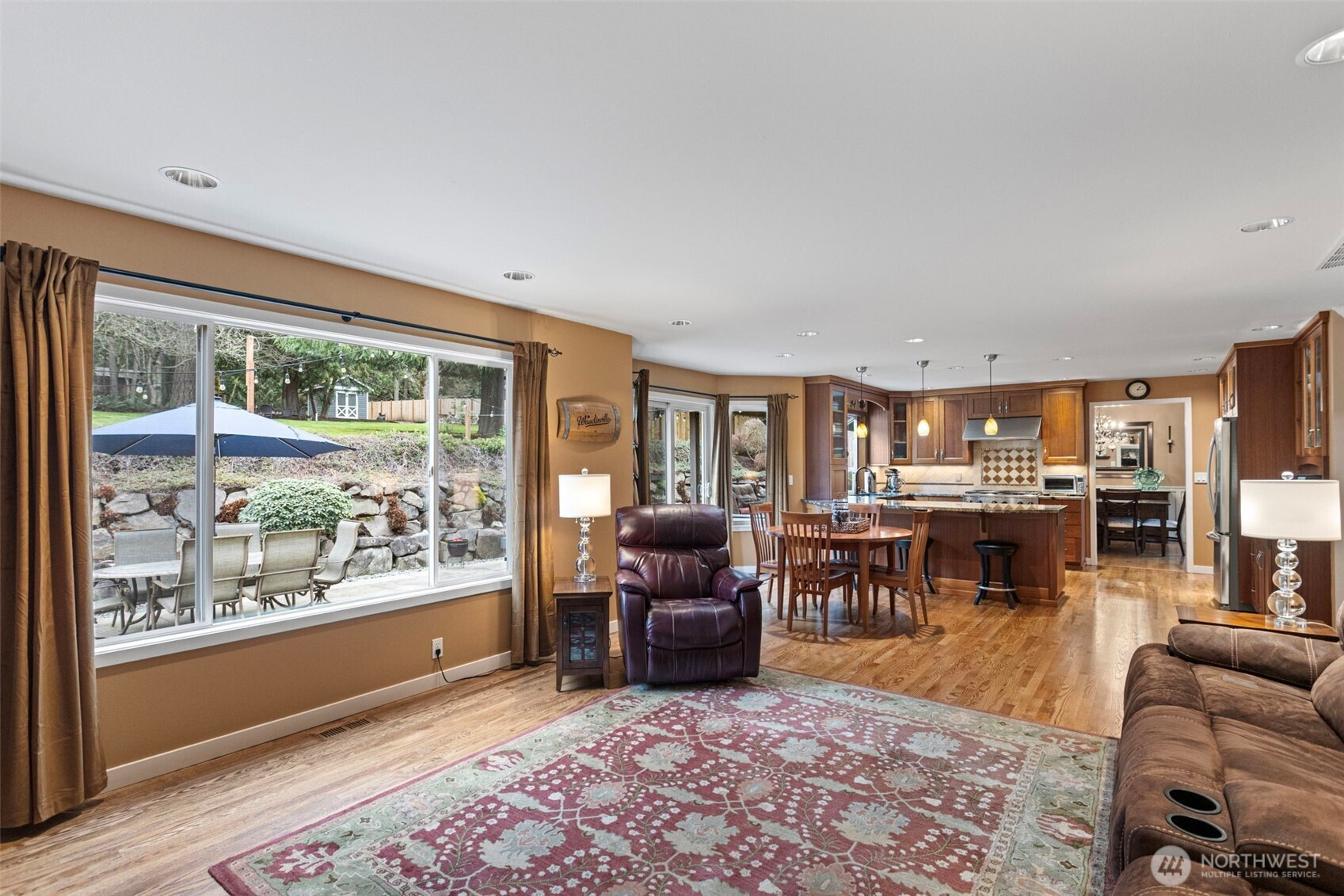 Welcome home to this stunning retreat set on a generous 2/3 acre lot in coveted Ridge at Bear Creek. Tucked perfectly in Woodinville’s equestrian area on Ring Hill, in a single street neighborhood, this home offers space to breathe while still enjoying the warmth of a close-knit community. As you enter the home, you are welcomed by gleaming hardwood floors that shine & a center staircase leading upstairs. Such a roomy entryway! Formal living & dining rooms are so tastefully done & seamlessly flow out to the outdoor covered deck space. The heart of the home is a stunning chef’s kitchen designed for gathering. Dramatic granite, rich mahogany cabinetry, SS appliances, & a peninsula create a space where holidays are hosted & everyday mornings feel elevated. Built-in pantry storage & dedicated coffee station add intention & ease to daily living. Hardwood flooring flows throughout the home, bringing warmth & continuity. Upstairs, a spacious bonus room with bar invites movie nights, game days, and gathering. Three thoughtfully placed bedrooms off open hallway. The oversized primary suite is a true sanctuary with a beautifully appointed 5 pc bath & room to unwind at the end of the day. Outdoors, enjoy summer evenings on the paver patio, surrounded by new cedar fencing & a sprawling backyard that offers privacy without isolation. 819sf oversized 3 car garage. This is the perfect next chapter for those ready to spread out, entertain, & enjoy the lifestyle they’ve been working toward.
