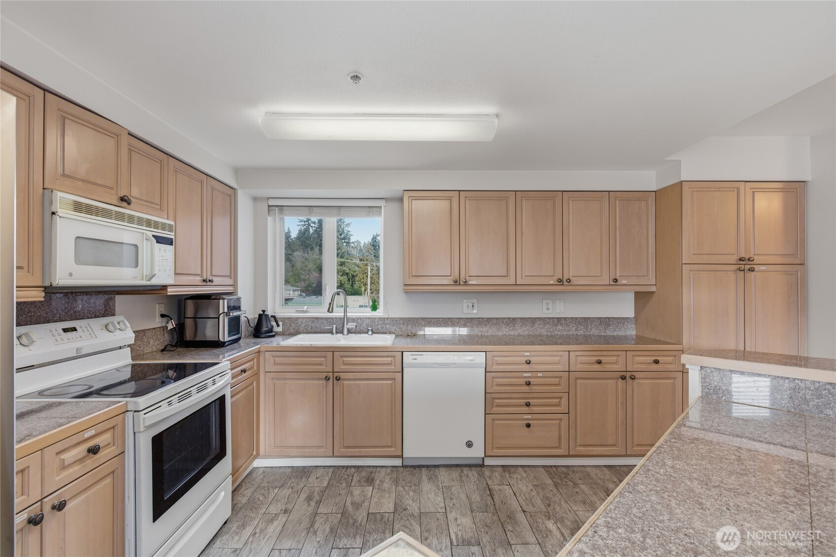 Perfectly located and attractively priced, this desirable end-unit condo in the sought-after Lake Washington Heights community offers comfort, convenience, and beautiful lake views. Step onto your private balcony with a morning coffee and take in peaceful sunrises over the water. The open-concept layout features a spacious living area with fireplace and a well-appointed gourmet kitchen, ideal for everyday living or entertaining. The building is meticulously maintained with durable steel and concrete construction. Includes two storage units and secured garage parking, with an additional parking space available for $50/month. Just minutes to Lake Forest Park Town Center, scenic walking trails, dining, and everyday amenities. Secure intercom entry and wheelchair-accessible design complete this exceptional home.