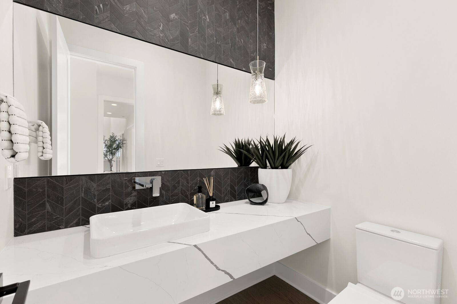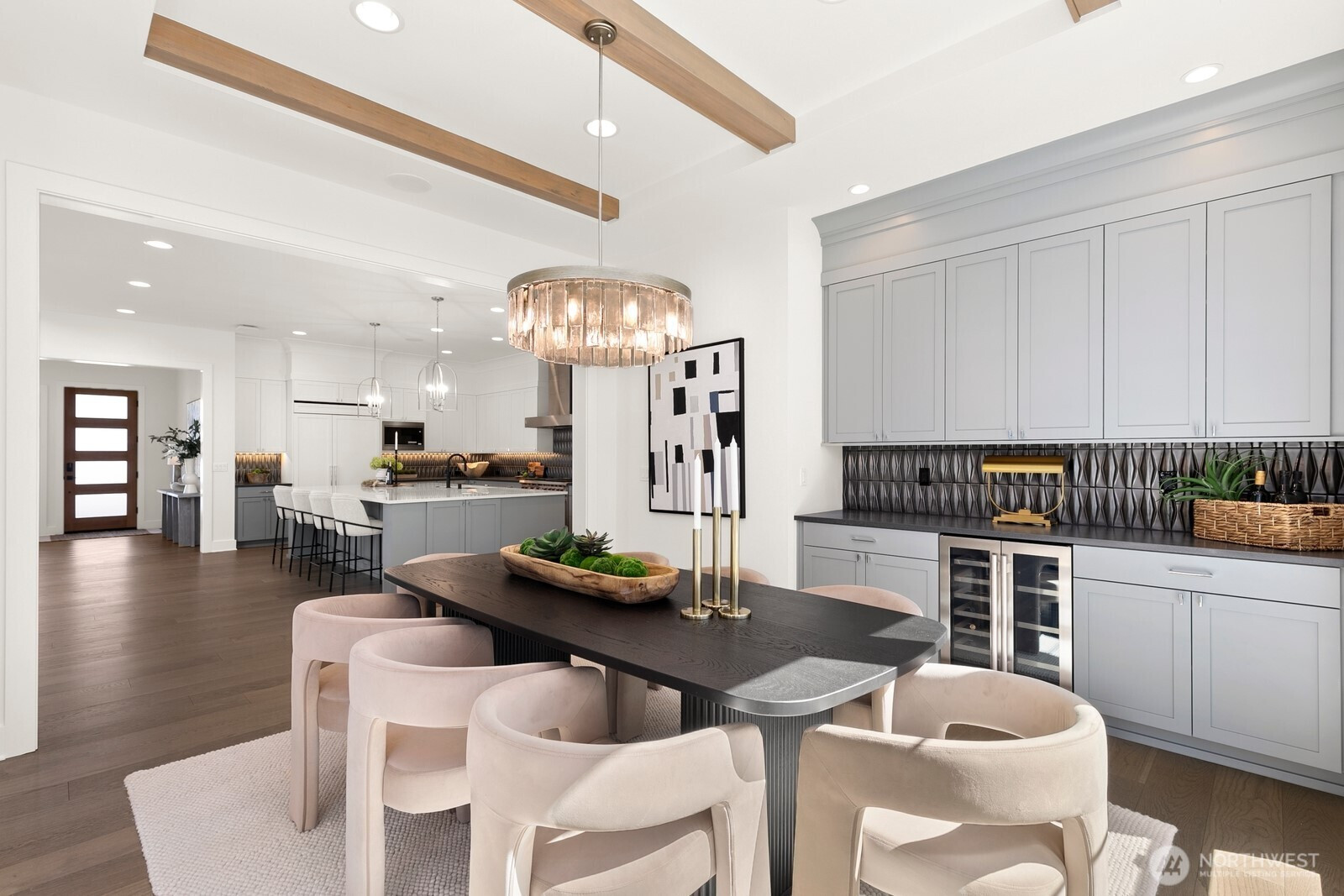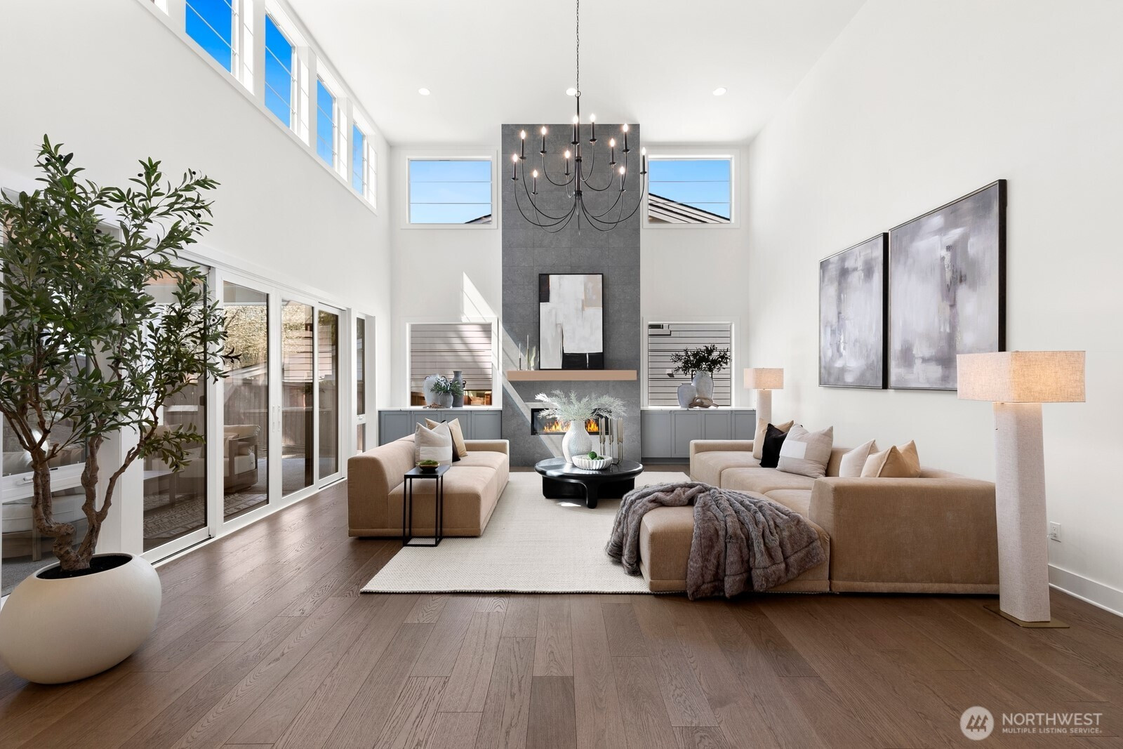 Experience elevated living on the coveted Street of Dreams, where exceptional design meets a pristine setting. A JayMarc new construction build perfectly positioned in a sought-after enclave of new construction homes - blending luxury, comfort, and location seamlessly. Wide-plank brushed oak hardwoods span the main level, staircase, and upper hall, creating a seamless, refined flow. Custom soft-close cabinetry, curated millwork, and integrated smart home features—including video doorbell, smart deadbolt, and in-home display. A versatile main-level bonus room with beverage cooler, mudroom and a well-appointed laundry room. The covered outdoor patio—complete with a fireplace and integrated Sonos audio—offers a true year-round retreat, while rooftop solar panels add both efficiency and modern appeal. The dining area impresses with statement lighting, ceiling beams, and an architectural accent wall, plus a service station with quartz, artisan tile backsplash, and built-in wine cooler. The chef’s kitchen features quartz surfaces, a large island, professional-grade appliances, and a sunlit dining nook. The great room showcases a dramatic two-story porcelain fireplace with custom mantel allowing for optimal natural light. The primary suite offers a spa-inspired bath, soaking tub, walk-in shower, and custom closet. Award winning Bellevue School District and commute with ease to your favorite destinations.