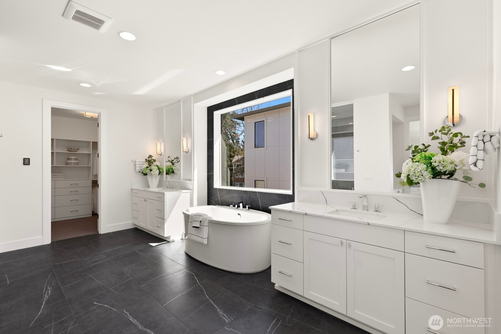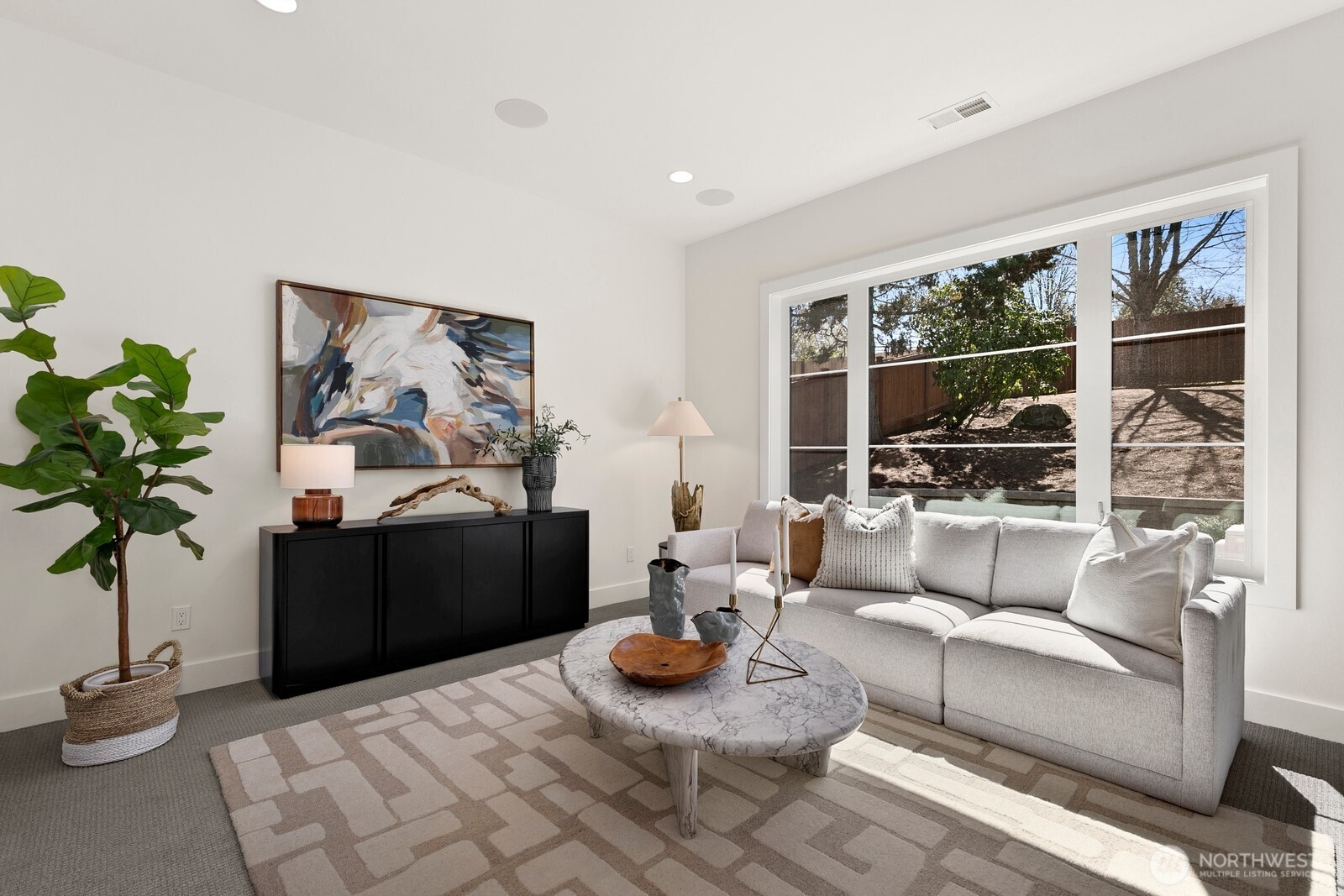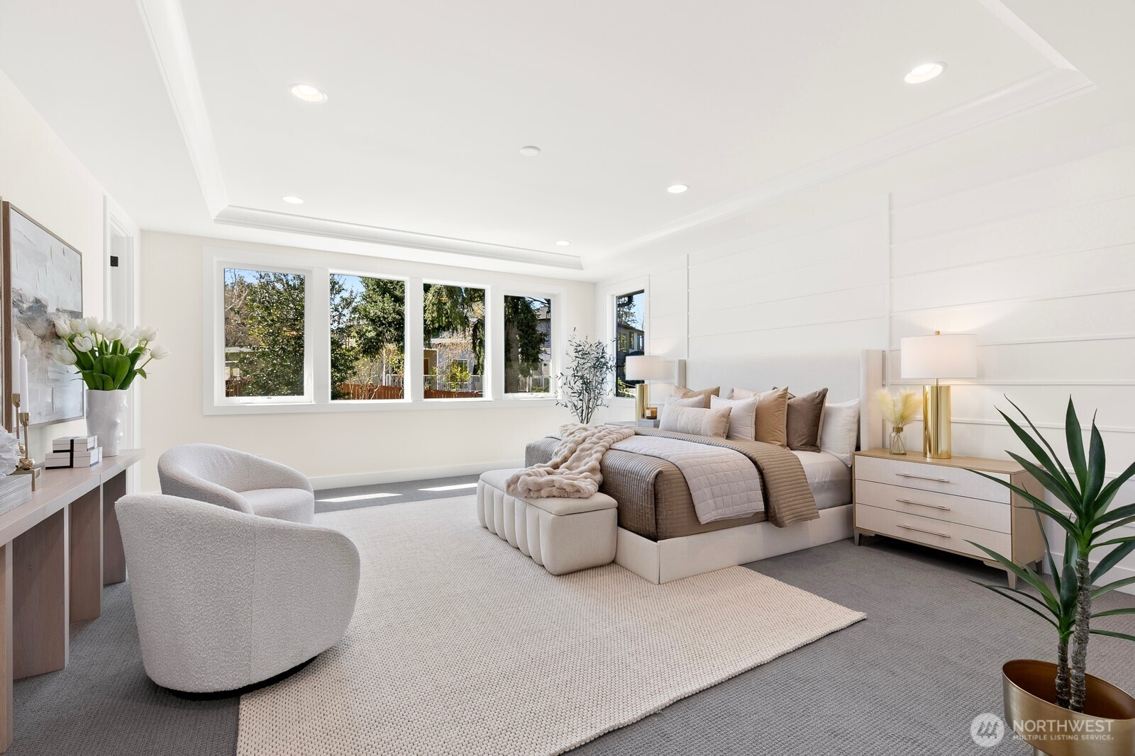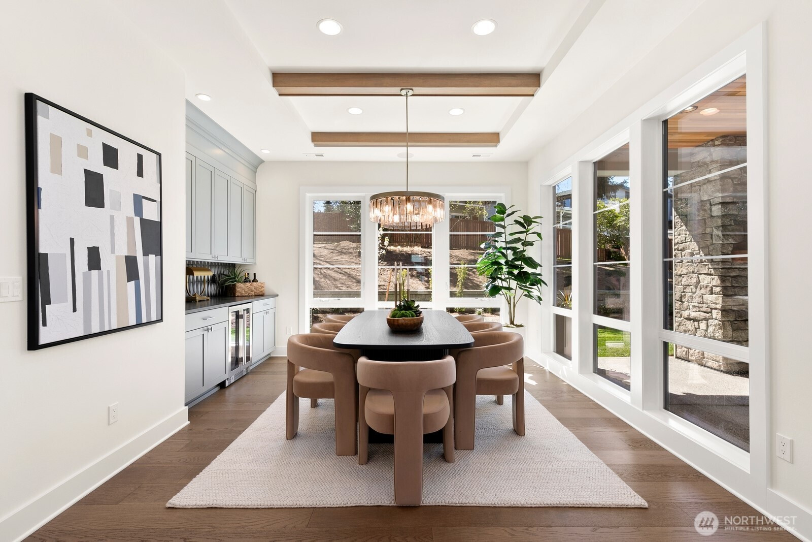 Experience elevated living on the coveted Street of Dreams, where exceptional design meets a pristine setting. A JayMarc new construction build perfectly positioned in a sought-after enclave of new construction homes - blending luxury, comfort, and location seamlessly. Wide-plank brushed oak hardwoods span the main level, staircase, and upper hall, creating a seamless, refined flow. Custom soft-close cabinetry, curated millwork, and integrated smart home features—including video doorbell, smart deadbolt, and in-home display. A versatile main-level bonus room with beverage cooler, mudroom and a well-appointed laundry room. The covered outdoor patio—complete with a fireplace and integrated Sonos audio—offers a true year-round retreat, while rooftop solar panels add both efficiency and modern appeal. The dining area impresses with statement lighting, ceiling beams, and an architectural accent wall, plus a service station with quartz, artisan tile backsplash, and built-in wine cooler. The chef’s kitchen features quartz surfaces, a large island, professional-grade appliances, and a sunlit dining nook. The great room showcases a dramatic two-story porcelain fireplace with custom mantel allowing for optimal natural light. The primary suite offers a spa-inspired bath, soaking tub, walk-in shower, and custom closet. Award winning Bellevue School District and commute with ease to your favorite destinations.