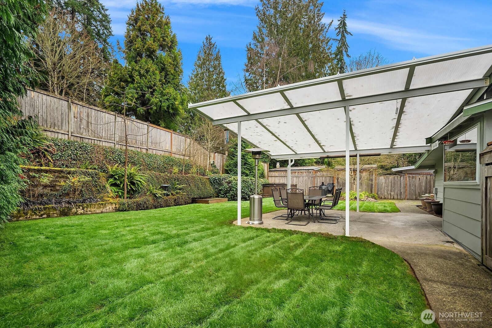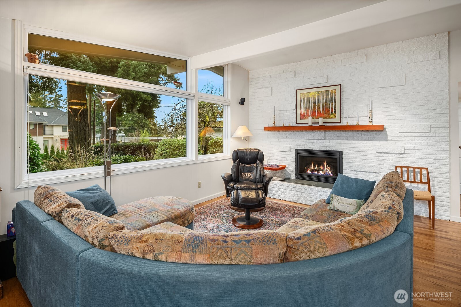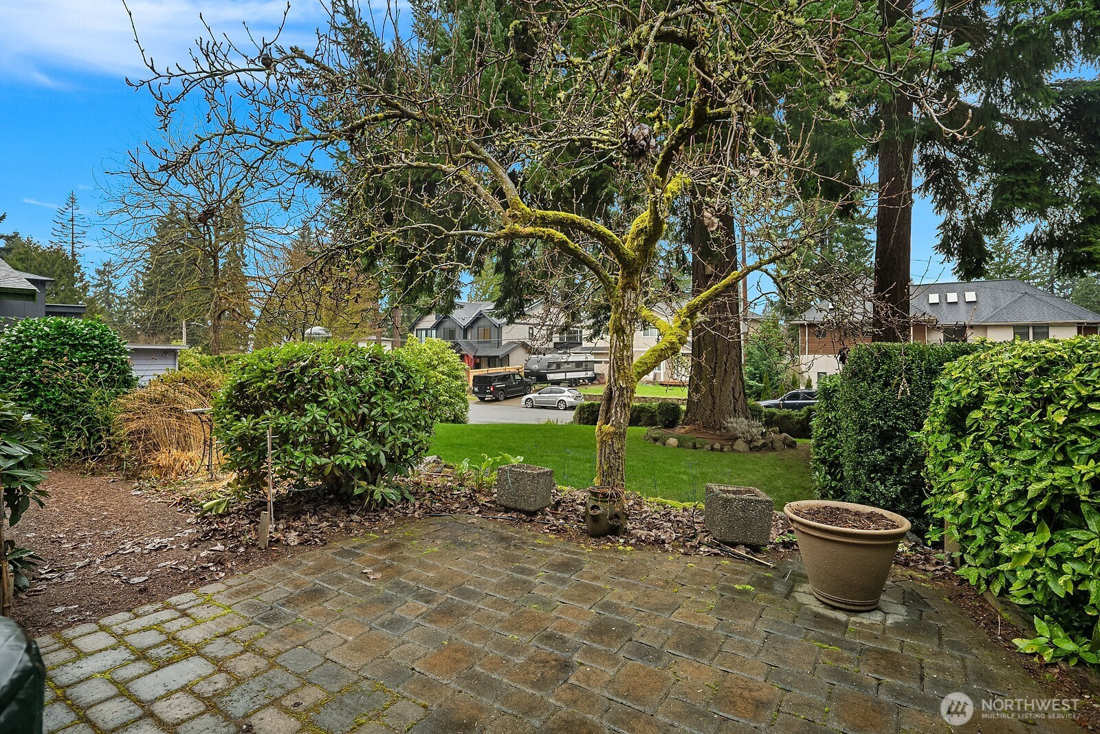 {{Desirable Bellevue neighborhood}} Bellevue’s Eastgate area, positioned by the Somerset community, & minutes to Newport Way & I-90. This single-level residence offers timeless mid-century character with inviting warmth & natural flow. Set back from the road, this 1,430 SF home sits on a generous 10,595 SF lot surrounded by mature landscaping that creates a peaceful & private setting. Expansive windows bring natural light into the living room, where an impressive feature fireplace w/ a gas insert anchors the space. The dining area connects seamlessly to a covered patio through sliding glass doors, creating an effortless transition to outdoor living. Hardwood flooring brings another layer of warmth to this home. The backyard is a true retreat, tranquil, private, & framed by established plantings that provide beauty & seasonal interest. The kitchen features a generous breakfast bar overlooking the garden, adding natural light. The home includes 3 bedrooms, all with closet packages & 1.5 bathrooms, a family bathroom w/heated floors, tiled shower & quartz countertop. A versatile second reception room with tiled flooring, custom cabinets, & a large skylight offers flexible living space options for a media room, home office, or creative space & connects to the utility room & 2-car garage. Conveniently located, this property offers comfort, character, & outstanding opportunity in a sought-after setting. This home combines warmth & livability w/ exciting potential for future vision.
