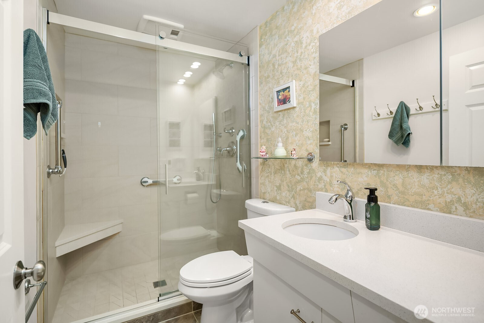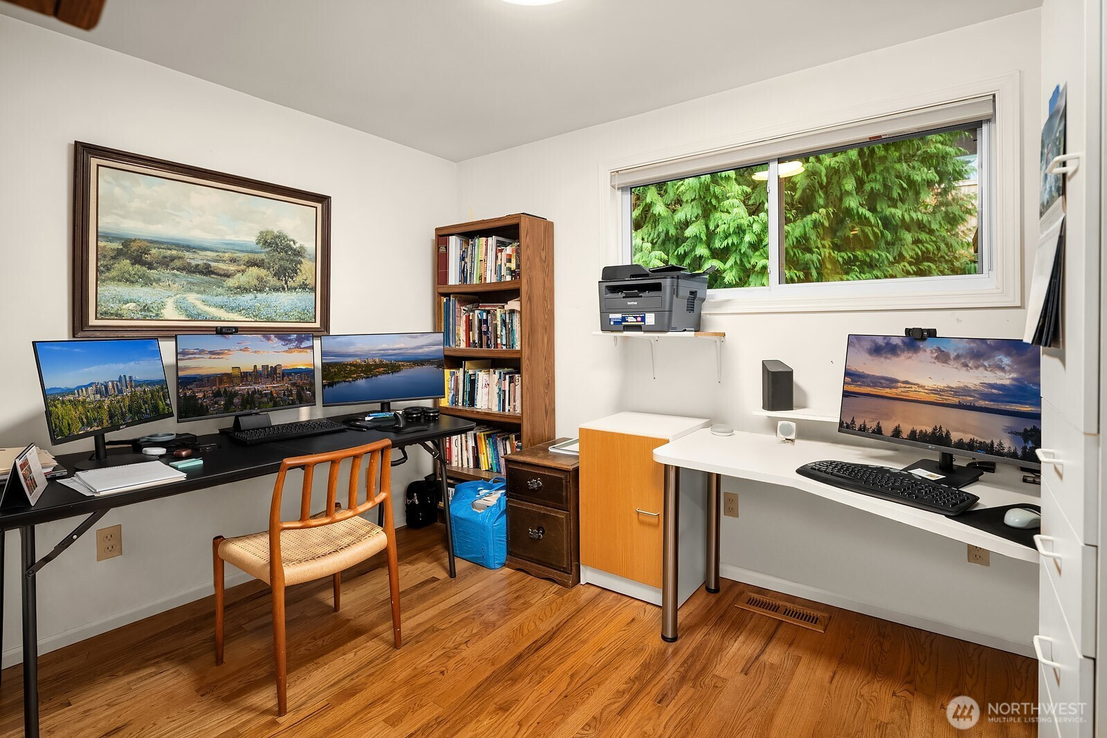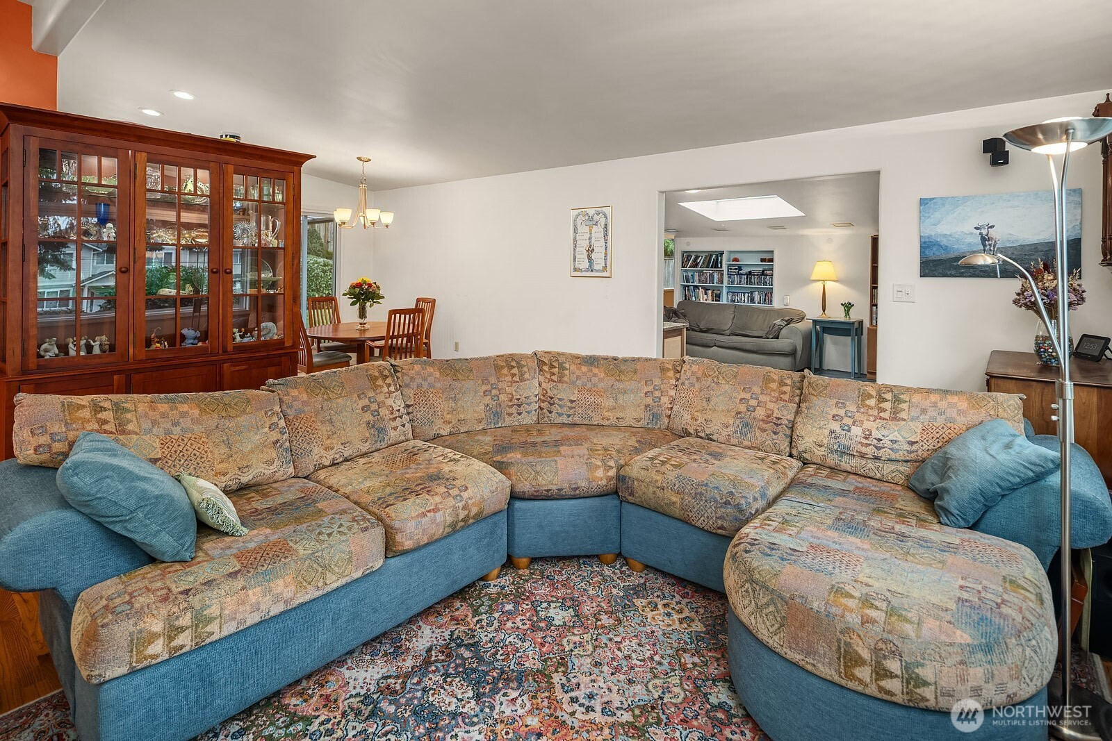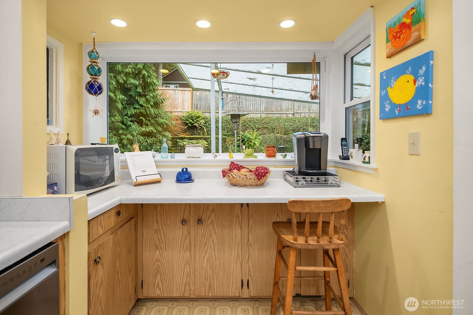 {{Desirable Bellevue neighborhood}} Bellevue’s Eastgate area, positioned by the Somerset community, & minutes to Newport Way & I-90. This single-level residence offers timeless mid-century character with inviting warmth & natural flow. Set back from the road, this 1,430 SF home sits on a generous 10,595 SF lot surrounded by mature landscaping that creates a peaceful & private setting. Expansive windows bring natural light into the living room, where an impressive feature fireplace w/ a gas insert anchors the space. The dining area connects seamlessly to a covered patio through sliding glass doors, creating an effortless transition to outdoor living. Hardwood flooring brings another layer of warmth to this home. The backyard is a true retreat, tranquil, private, & framed by established plantings that provide beauty & seasonal interest. The kitchen features a generous breakfast bar overlooking the garden, adding natural light. The home includes 3 bedrooms, all with closet packages & 1.5 bathrooms, a family bathroom w/heated floors, tiled shower & quartz countertop. A versatile second reception room with tiled flooring, custom cabinets, & a large skylight offers flexible living space options for a media room, home office, or creative space & connects to the utility room & 2-car garage. Conveniently located, this property offers comfort, character, & outstanding opportunity in a sought-after setting. This home combines warmth & livability w/ exciting potential for future vision.