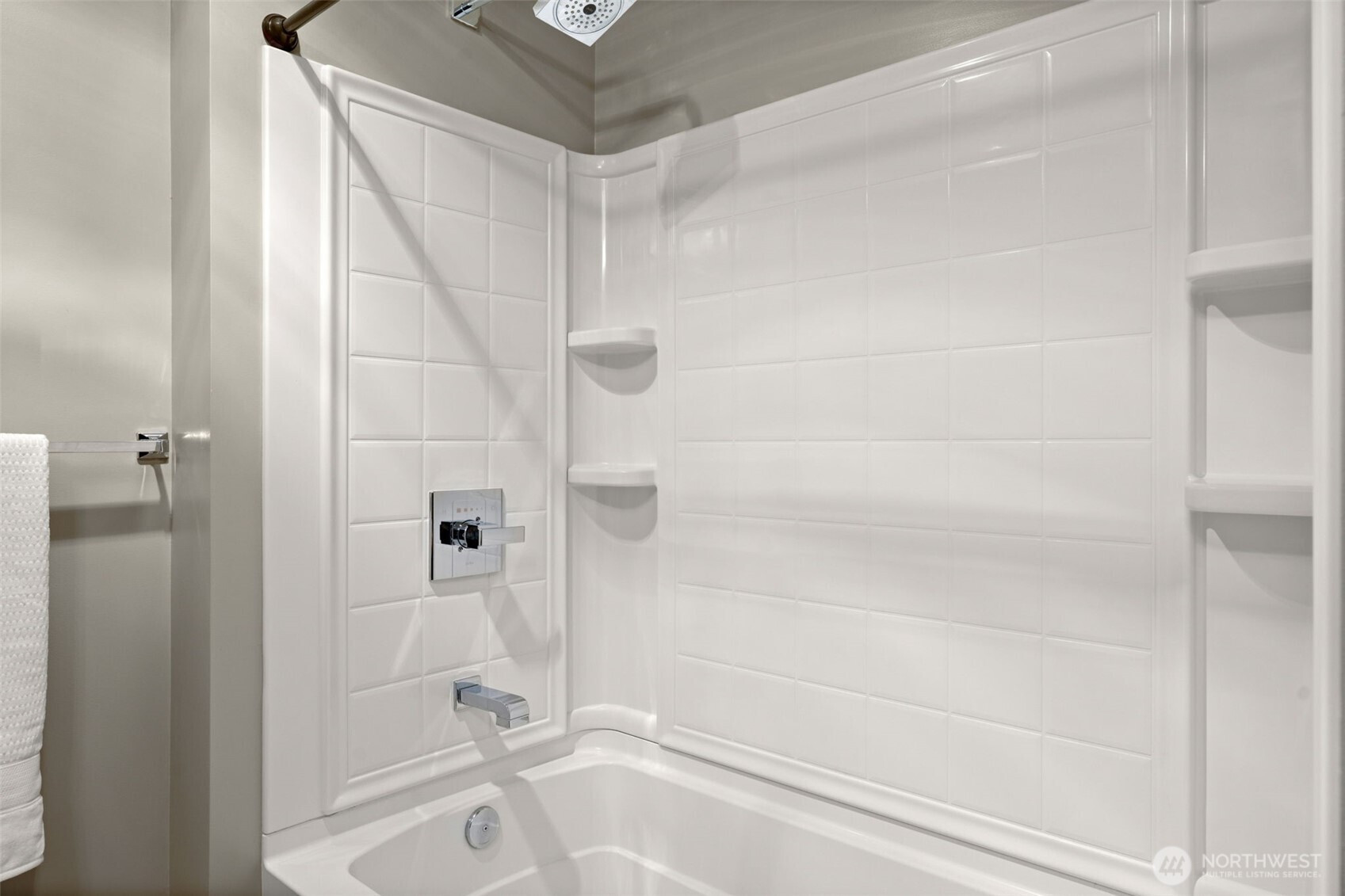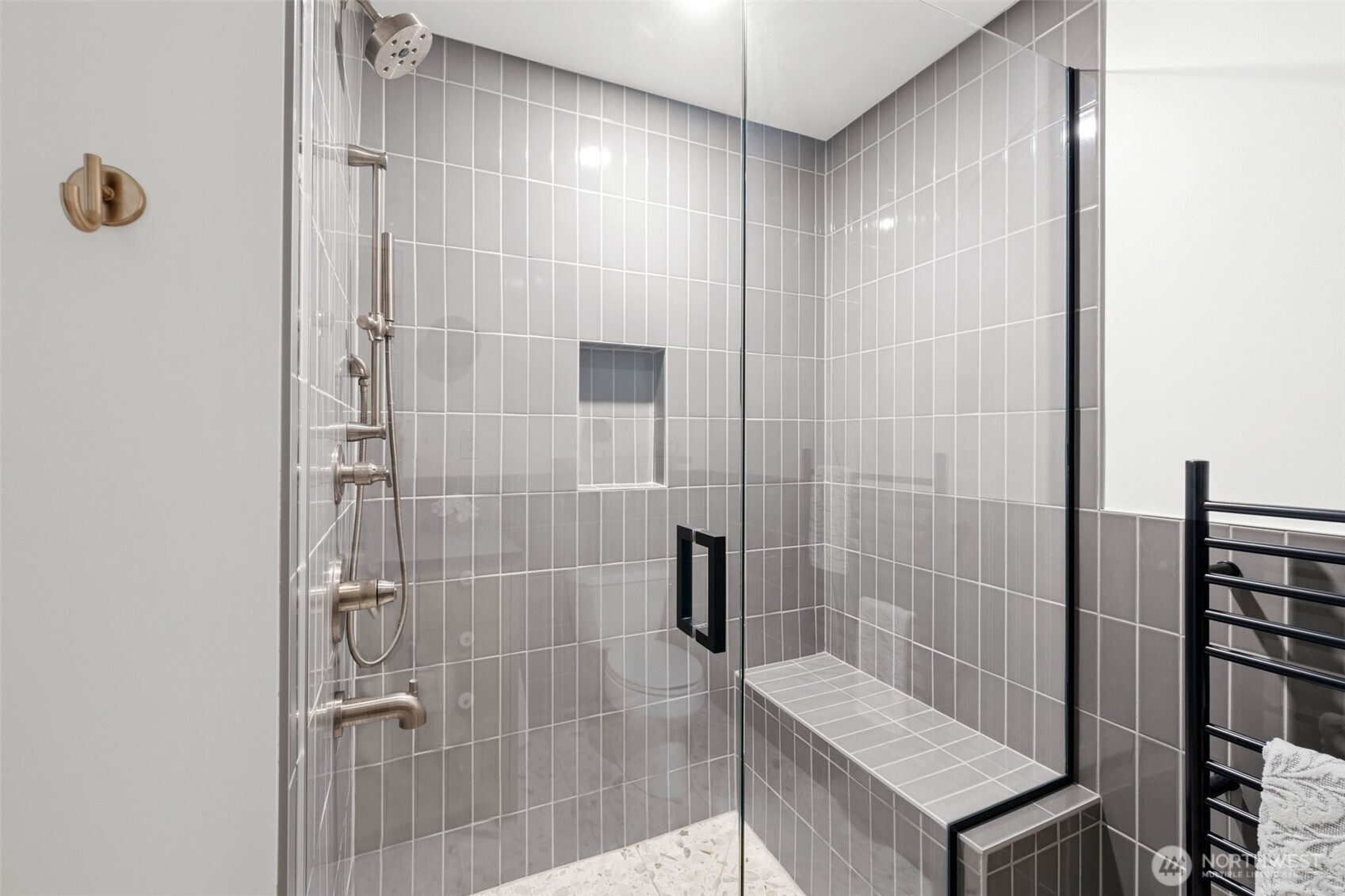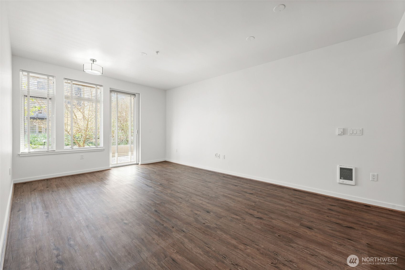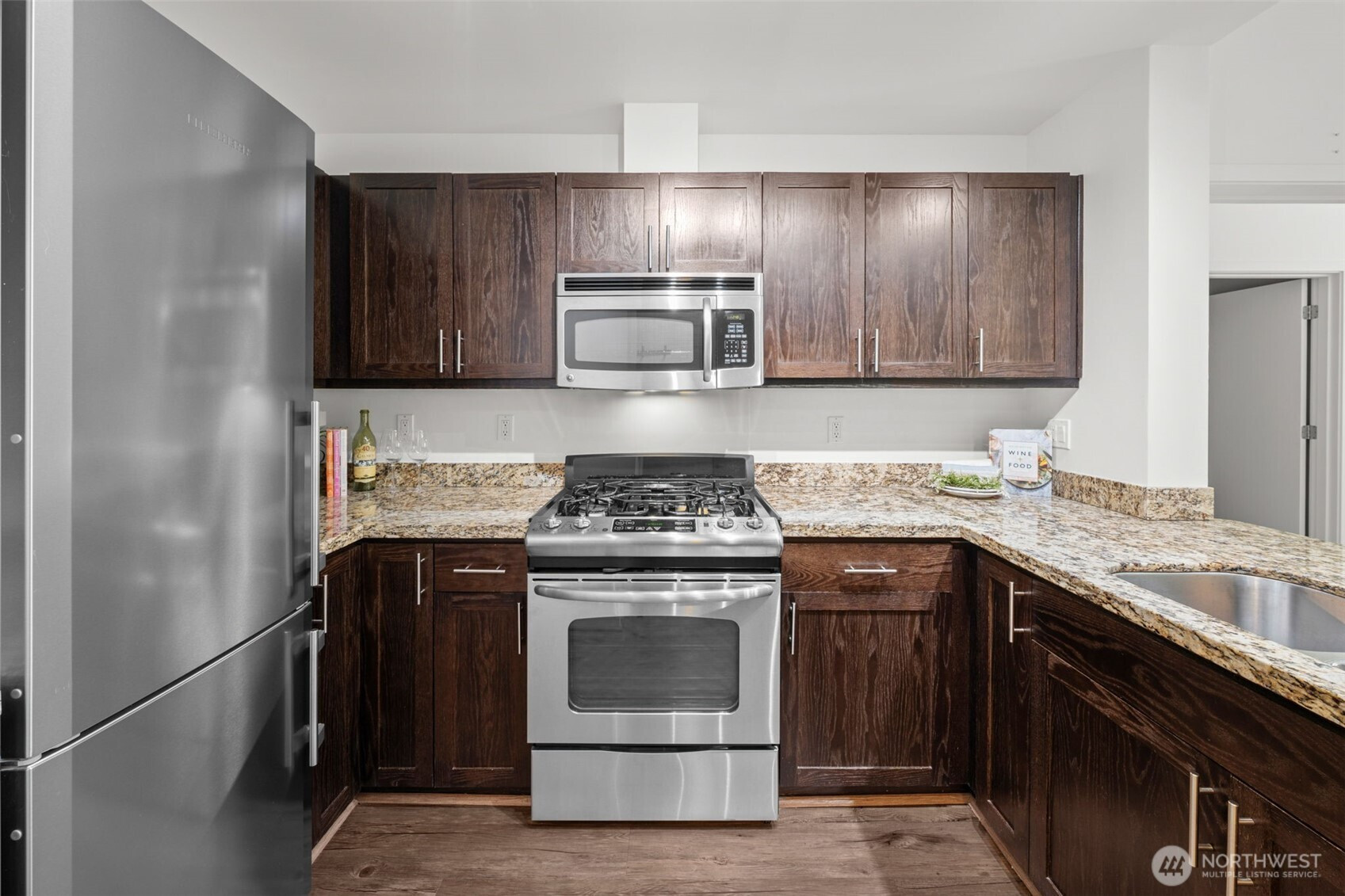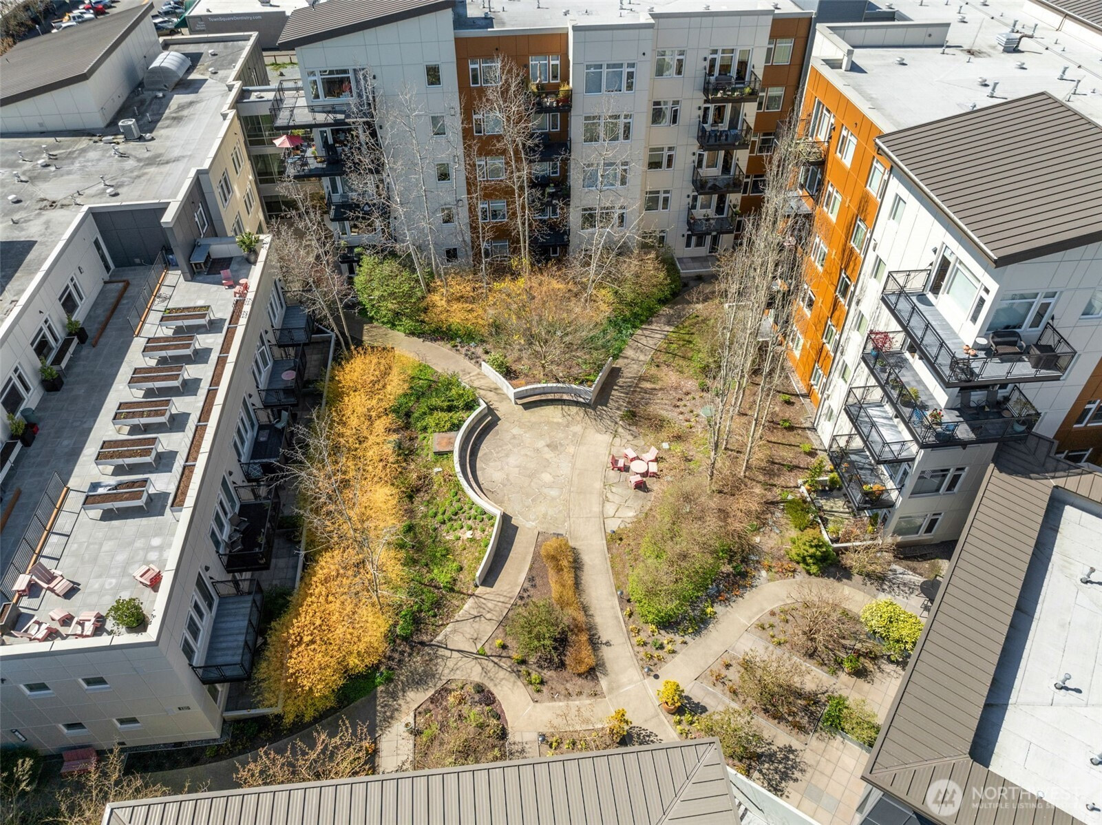 This Burien Town Square Condo is conveniently located just 20 minutes south of Seattle and 10 minutes to Sea Tac Airport. Enjoy peace-of-mind with the secured-entrance and secured garage with two assigned parking spaces. This condo home is move-in ready and is unique with an abundance of natural light throughout. The kitchen offers stainless steel appliances, including a high-end “Liebherr” refrigerator, gas range, and granite countertops. The completely renovated primary bath is pure luxury, featuring an oversized walk-in shower, custom cabinets, a heated towel bar and stone terrazzo floor. Both bedrooms offer an A/C unit, generous walk-in closets, and big windows with a view of the beautiful, lush grounds. The laundry closet includes a convenient large capacity washer and dryer. A French door opens to this home's private patio and is nestled among the trees and shrubs of the peaceful courtyard. Ammenities include a workout room, BBQ/Picnic area featuring gas-grills, an outdoor fireplace, a community club room where residents gather for coffee and happy hour, and an individual bin in the P-Patch for growing your own produce. The updates to the community infastructure are complete this condo's assessment is paid in-full! The neighborhood has numerous restaurants, coffee shops, bakeries, breweries and bars with live music, seasonal Farmers Market, library, boutiques and public transit center-All within walking distance. Quick access to quality medical care and nearby beaches.