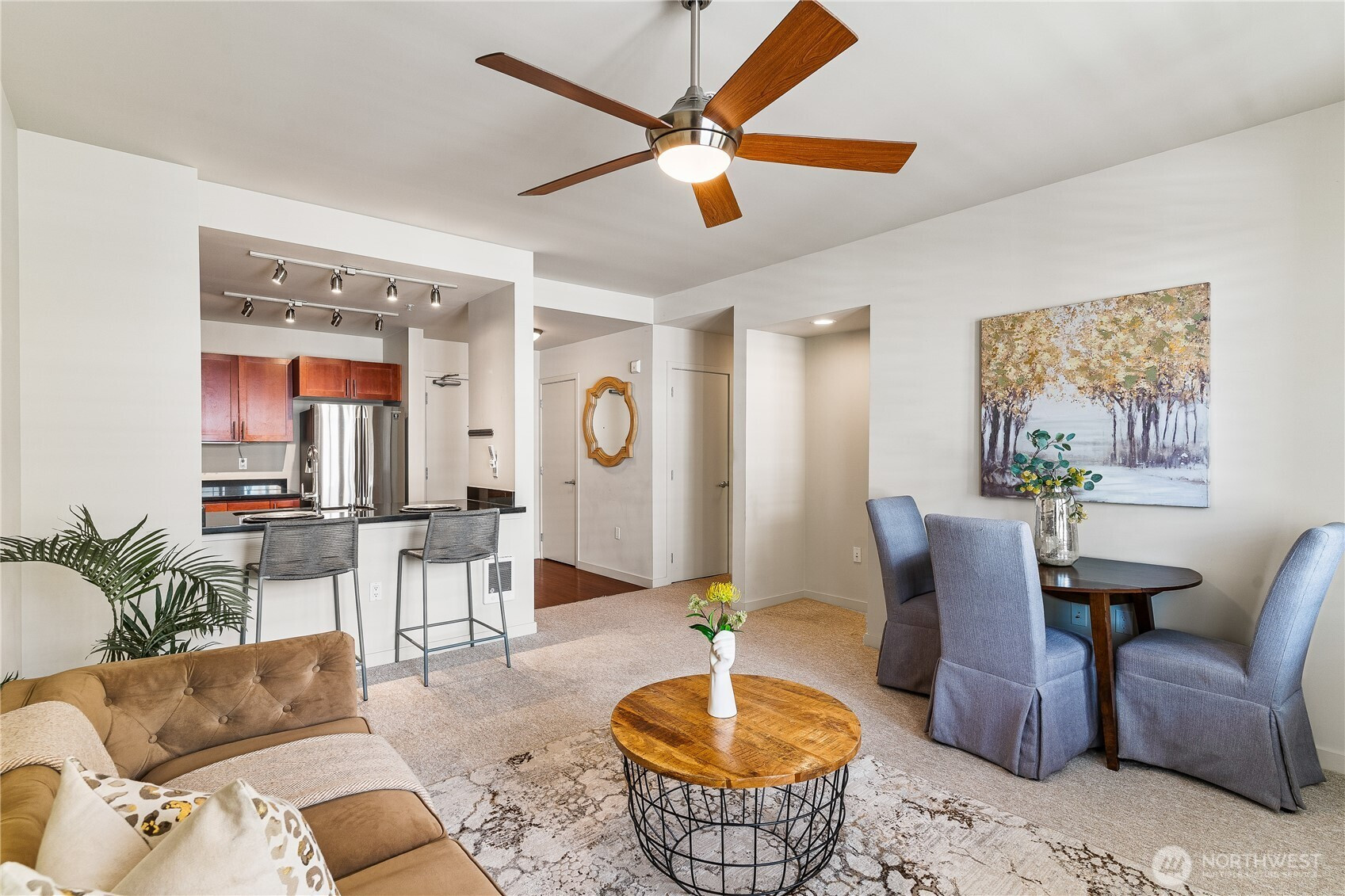 Welcome to a beautiful & affordably priced condo in a prime location in the heart of downtown Burien. Enjoy being mins from restaurants, shops, parks, the Farmer’s Market, the library, breweries, LA fitness & more. Inside, you'll love the spacious kitchen featuring quartz countertops, stainless steel appliances, & a gas cooktop—perfect for anyone who loves to cook and entertain. The bathroom also boasts a custom shower. This well-maintained community offers secure gated garage parking, a welcoming lobby, a fitness center, a lush courtyard, meeting room & a rooftop deck with a community garden and city views — perfect for relaxing or socializing. Commuters will love the unbeatable access — just 5 minutes to 518, 509, I-5, 405, & Airport.