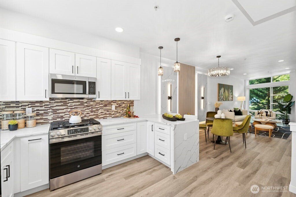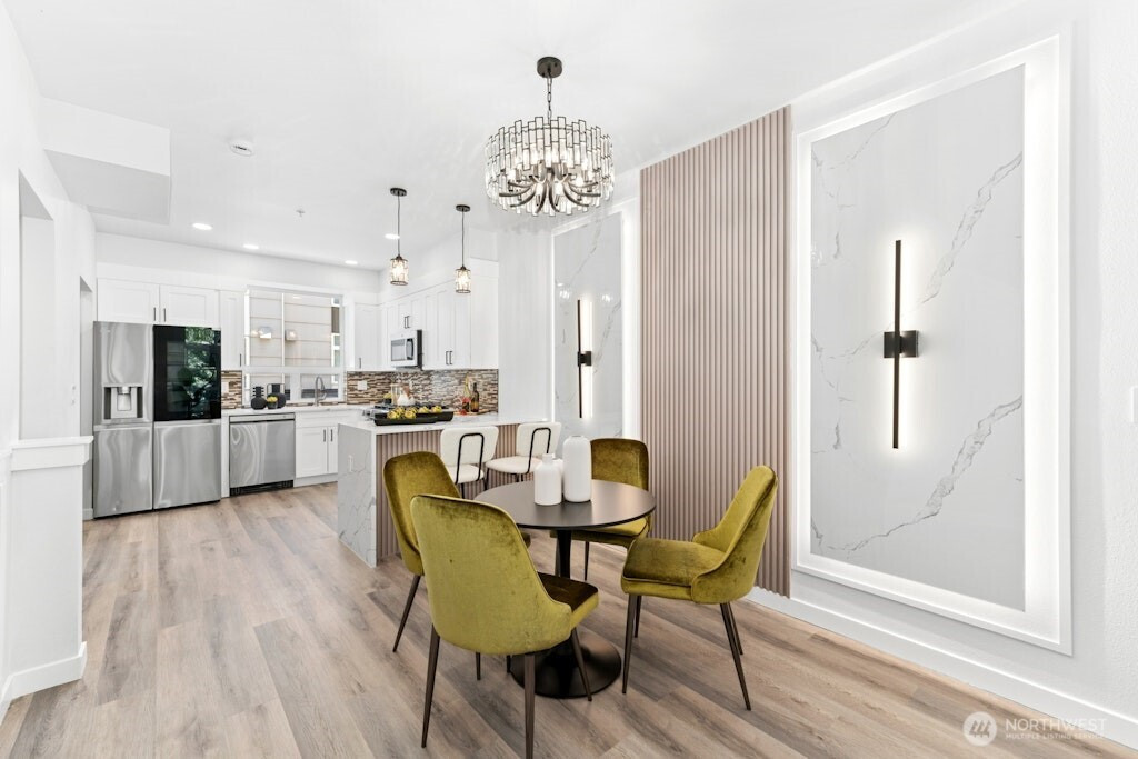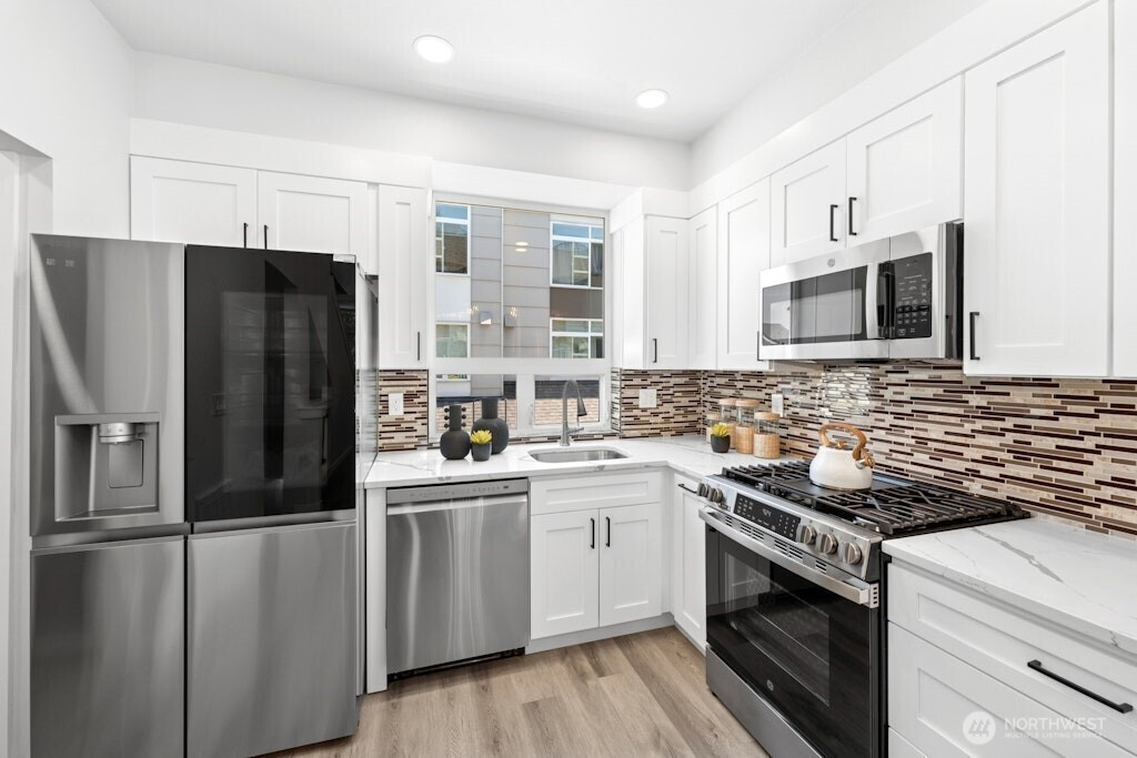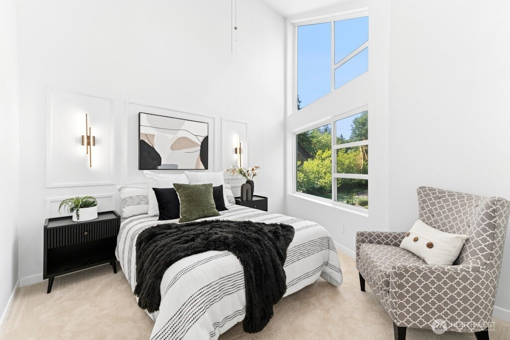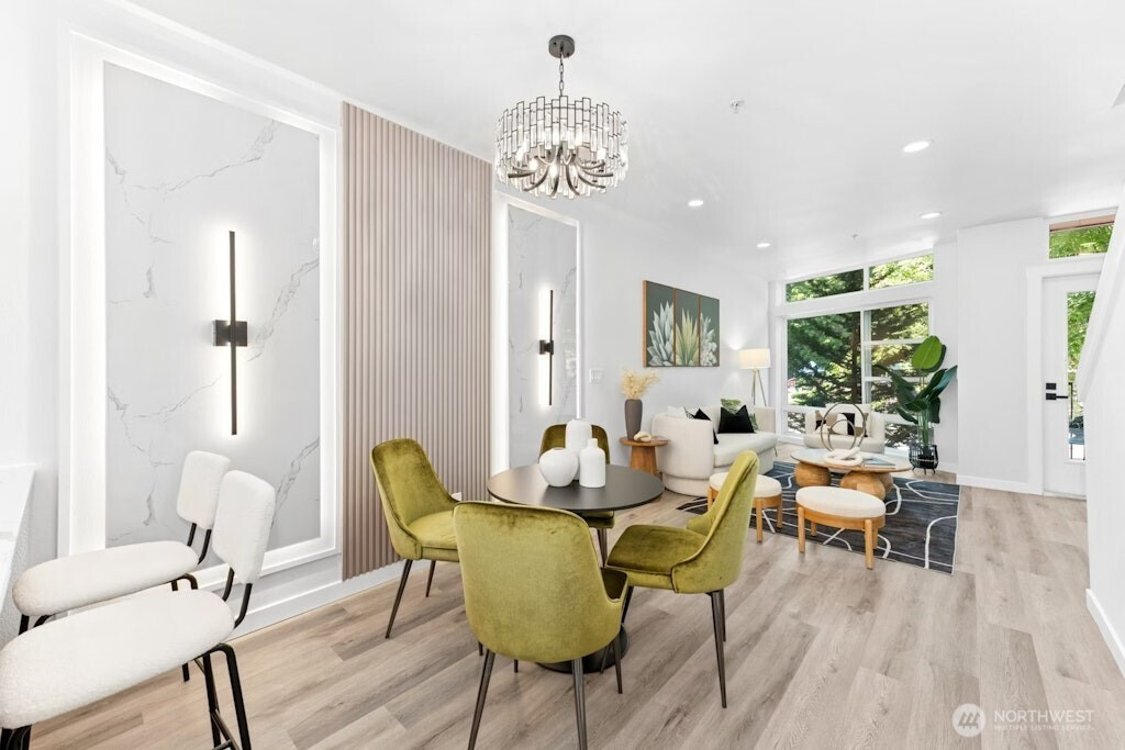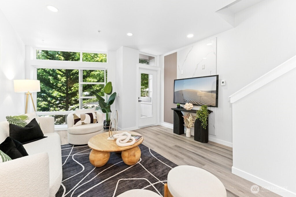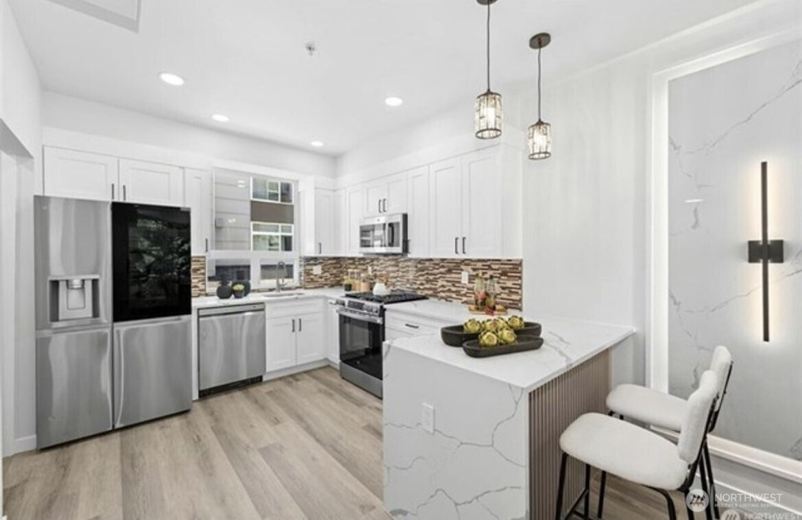 Excellent location and modern design in this beautifully remodeled home at Element. This contemporary residence features soaring ceilings, expansive windows, and sleek finishes throughout. The open-concept main level includes a stylish, fully updated kitchen with new appliances. Upstairs offers two spacious bedrooms and two bathrooms. The vaulted third-level loft with large windows is perfect for a home office, media room, or flex space. Like-new water heater, plus washer and dryer included. Close to Amazon, Meta, Microsoft, Google, Redmond Town Center, Marymoor Park, and more. Easy access to I-405 and SR-520. No rental cap and low HOA dues make this an excellent investment or primary residence.