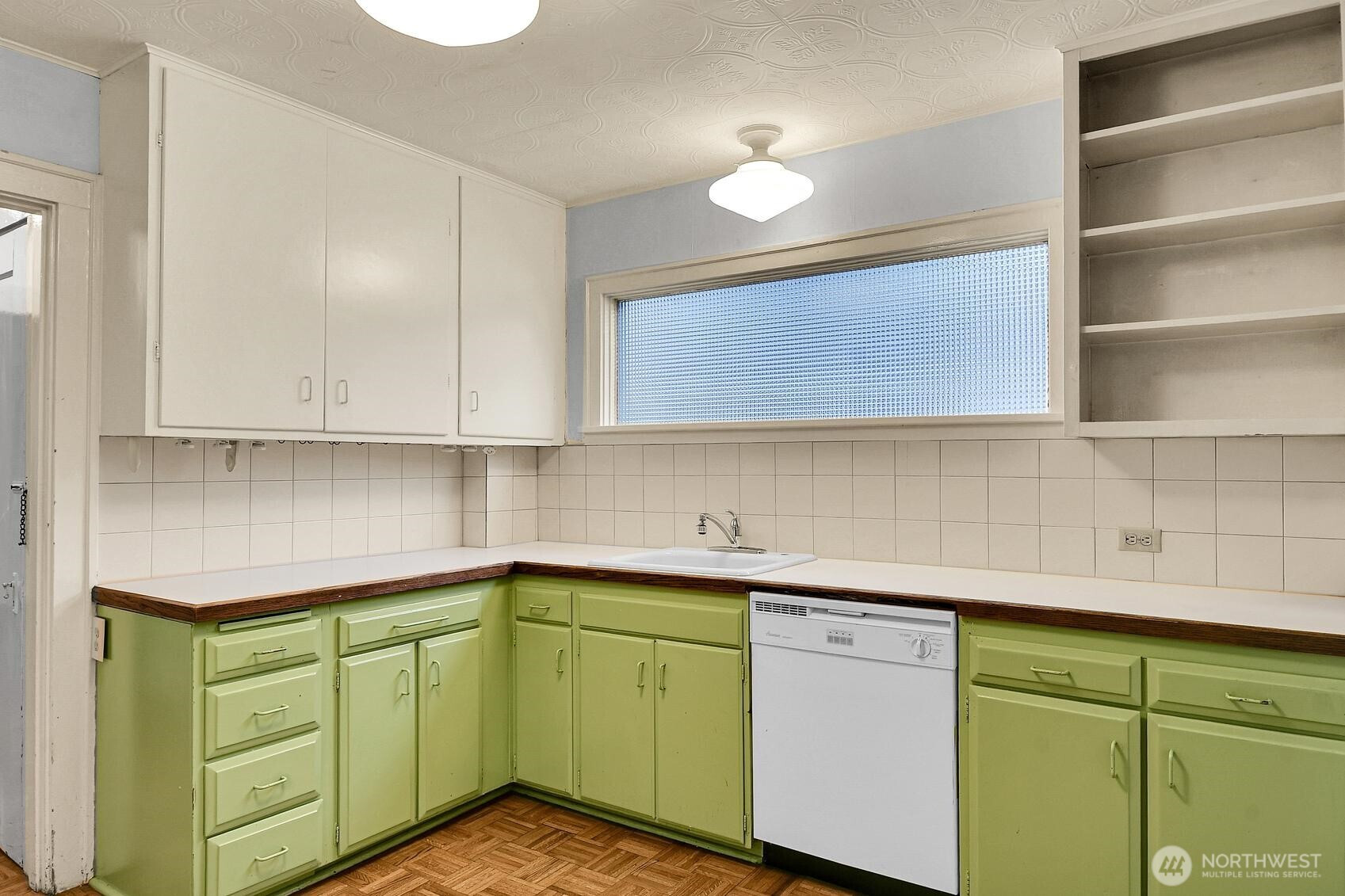 Queen Anne opportunity w/ 3 full kitchens across the main home & detached ADU. Ideal for multi-gen living or rental income. Perched above for privacy this 3-bed home blends vintage character w/ modern versatility. Original hardwoods on main. Built-ins & period detailing. Spacious kitchen has abundant shelving & cabinetry. Upstairs, 3 newly carpeted beds offer territorial & peekaboo views. Lower level features guest suite or rental w/ full kitchen, living area w/ wood-burning stovepipe fireplace, 1-bed & full bath. Detached ADU includes its own kitchen, ¾ bath & lofted bed. Terraced backyard ideal for gardening or outdoor gatherings. Rare chance to build sweat equity in one of Seattle’s most sought-after neighborhoods. Sold as-is.