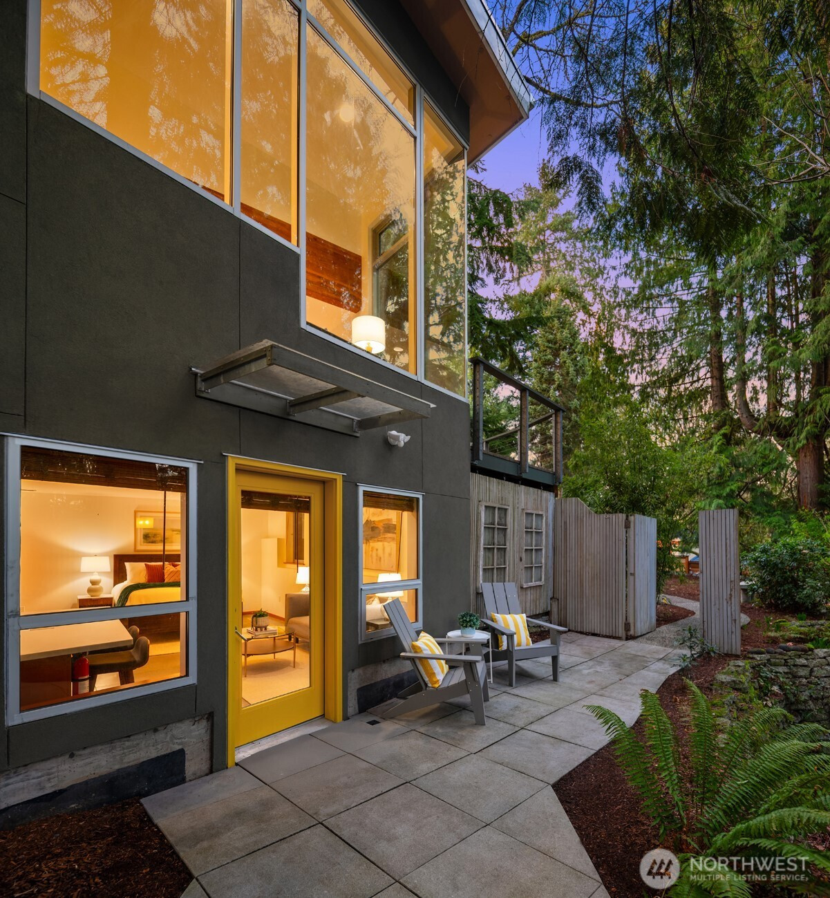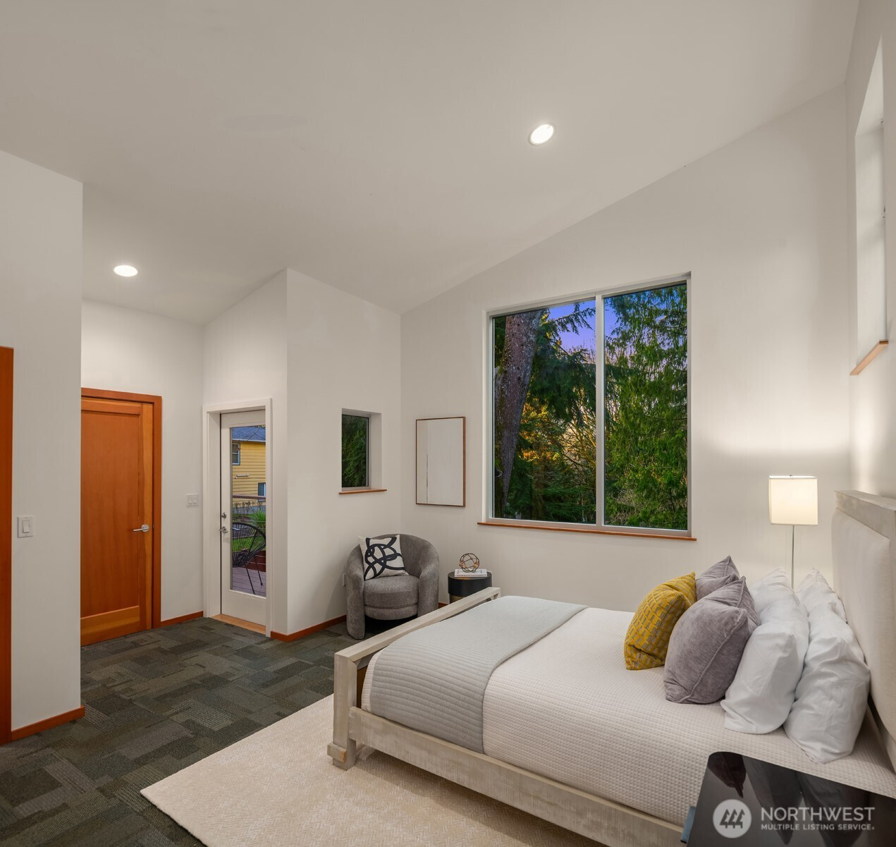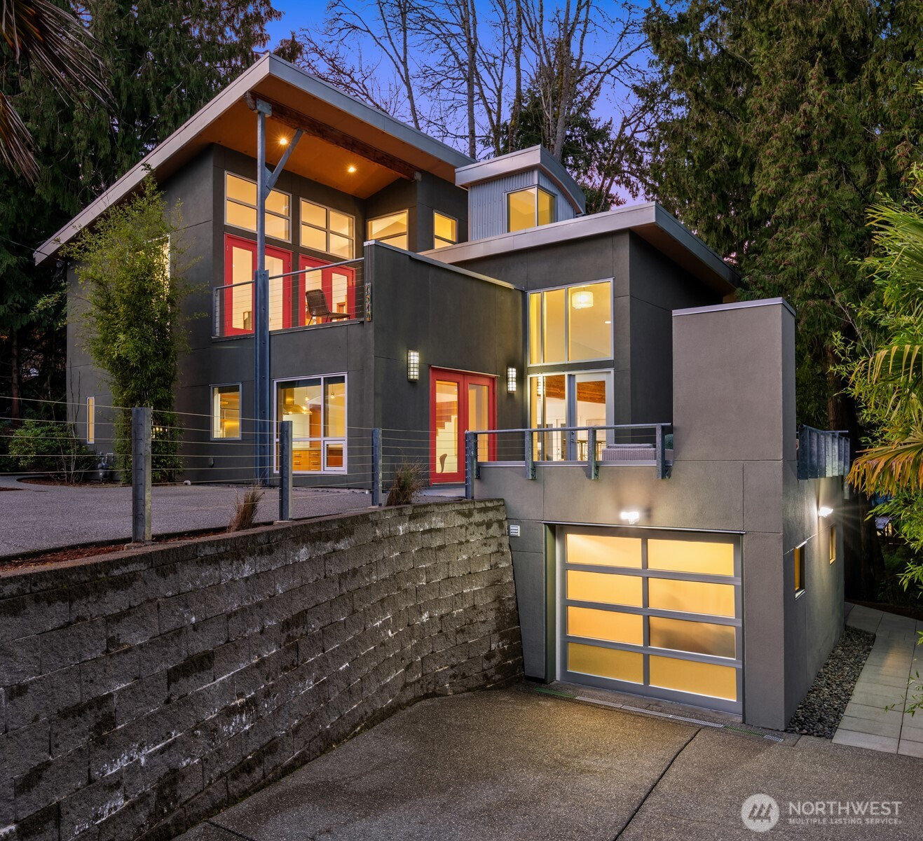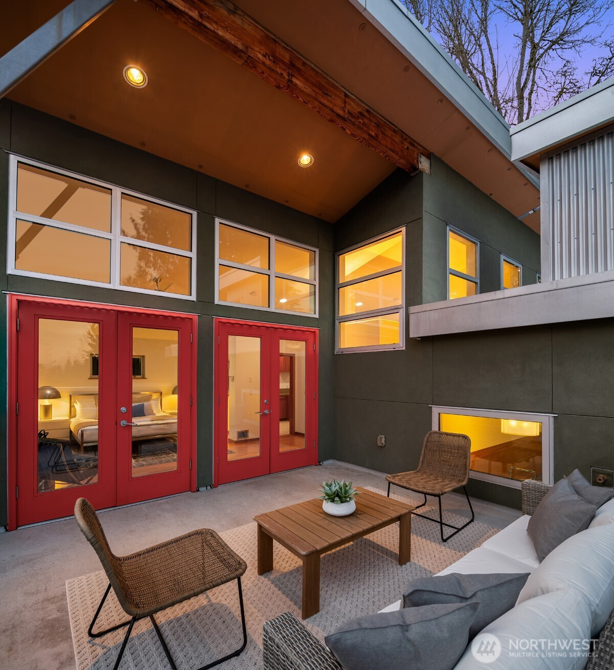 Stunning modern Pacific Northwest architecture defines this custom-built Maple Leaf residence showcasing exceptional craftsmanship, high-quality finishes, and energy-efficient design. Soaring ceilings and expansive window walls flood the open-concept living spaces with natural light while framing tranquil greenbelt views. Seamless indoor/outdoor living unfolds across multiple decks overlooking the private, wooded backyard sanctuary. Built Green certified with thoughtful incorporation of reclaimed Douglas fir elements, exposed structural beams, and artisan metal detailing throughout. Gourmet kitchen features premier GE Monogram stainless appliances, gas range, custom cabinetry, and concrete countertops. Luxurious primary suite offers vaulted ceilings, private deck access, and spa-inspired bath with jetted soaking tub. Flexible lower-level ADU with private entry provides ideal guest, rental, or multi-gen living options. Detached heated studio for work-from-home or creative space. In-floor radiant heating, HRV ventilation system, and parking for multiple vehicles complete this remarkable home.