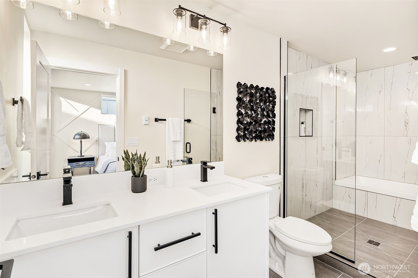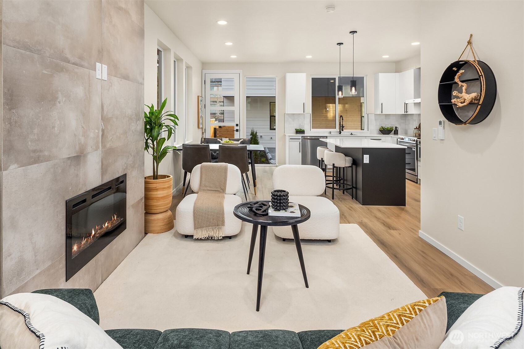 Welcome to this stunning new townhome community by Modern Homes in the heart of Ballard. Flooded with natural light, this residence showcases contemporary finishes and thoughtfully curated design throughout. The open-concept main level offers a functional living and entertaining space. The second floor provides flexibility with two well-appointed bedrooms and a full bath, while the top floor primary suite offers a private retreat with an additional bedroom ideal for a nursery, office, or guest space. Enjoy an expansive rooftop deck—a serene, low-maintenance outdoor oasis perfect for relaxing or entertaining. Ideally located just moments from downtown Ballard, steps away from renowned local breweries, the Ballard Farmers Market.