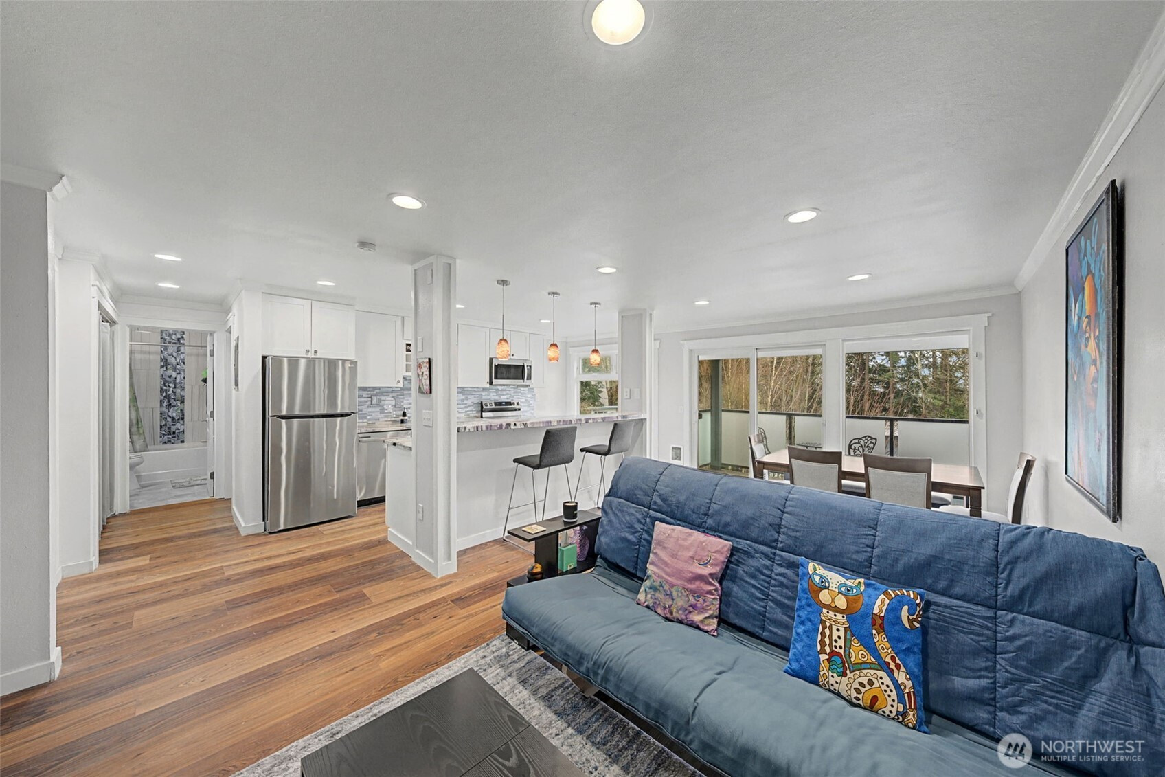 Top-Floor Corner Unit Artist Loft with Sweeping Territorial Views – Fully Remodeled & Move-In Ready! Perched in a prime top-floor, end-unit location, this beautifully remodeled condo offers privacy, abundant natural light, and breathtaking territorial sunrise views from your private balcony. With only one shared wall and expansive windows throughout, this home feels bright, open, and inviting year-round. Recently updated with new flooring, fresh interior paint, updated kitchen cabinetry, new counters, and brand-new kitchen appliances, this home blends modern style with everyday comfort. The flexible floor plan features a spacious living area, full dining space, and a beautifully refreshed kitchen—perfect for both entertaining and relaxed daily living. Enjoy ample storage and thoughtful layout options to fit your lifestyle. Start your mornings with coffee on the sun-filled balcony overlooking peaceful views. Convenience is unmatched with your close, “VIP-style” parking space (#57)—visible right from your window. The exterior has been completely renovated, offering added value and curb appeal. Community amenities include a clubhouse, and on-site laundry facilities. Ideally located near major highways, I-5, Southcenter, Sea-Tac Airport, and Seattle—making this a true commuter’s dream. Plus, enjoy walking distance to a nearby park featuring a BBQ area, playground, sports court, and scenic walking trails. No special assessments & truly move-in ready—this one is a must-see!