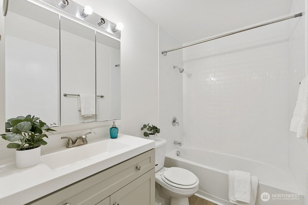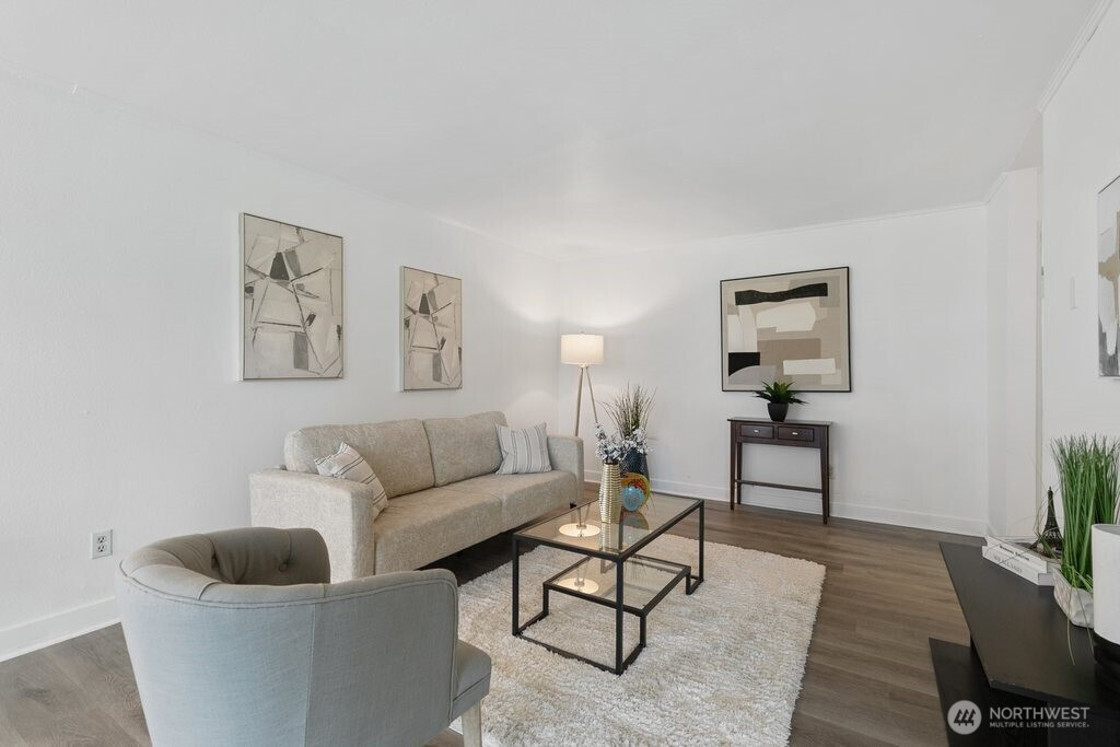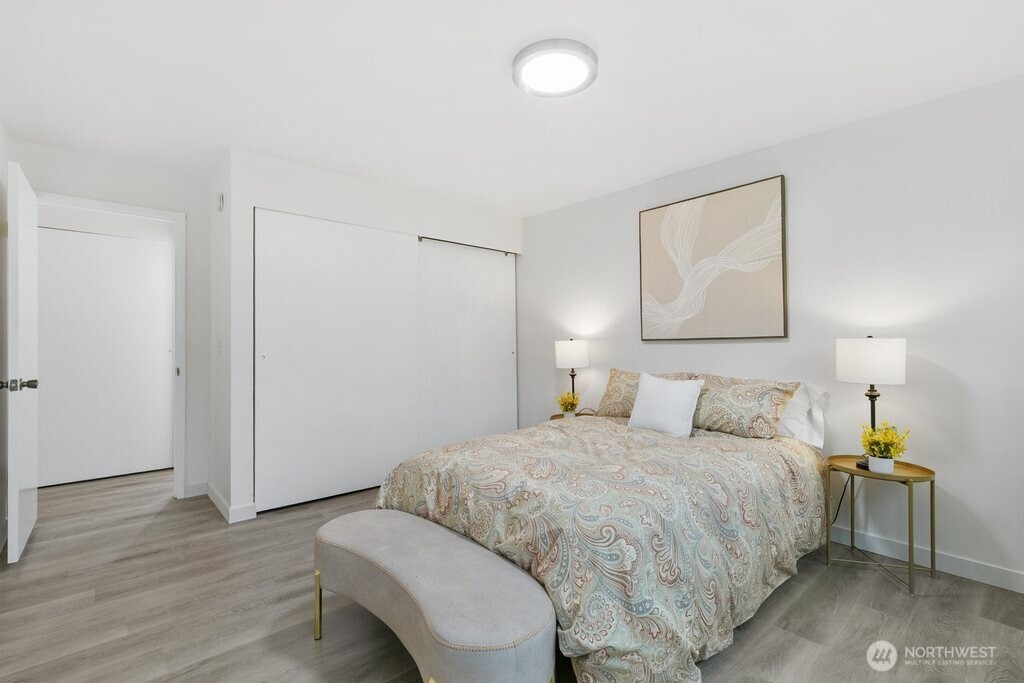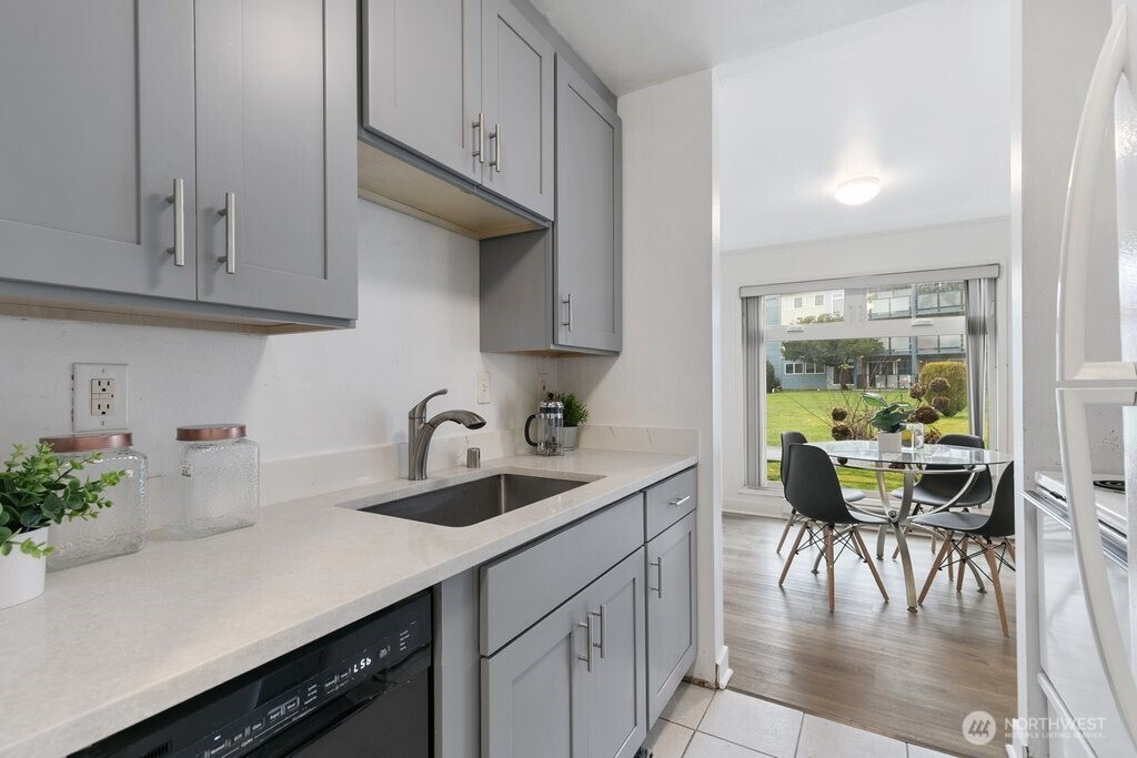 Fully remodeled, this private ground-floor home at Canyon Estates is move-in ready with fresh paint and new LVP flooring. The flexible layout includes a spacious living area, full dining space, and ample storage. The updated kitchen boasts shaker cabinets and quartz counters. Large bedroom with generous closet adjoins a renovated full bath. Washer/dryer hook-up in hall or use nearby laundry. Private patio overlooks grassy commons with single-level access. HOA covers W/S/G & earthquake insurance; exterior and plumbing updates done. Parking, clubhouse, pets (2, 25 lbs), rental cap met. Minutes to Seattle–Tacoma International Airport and commuter routes.