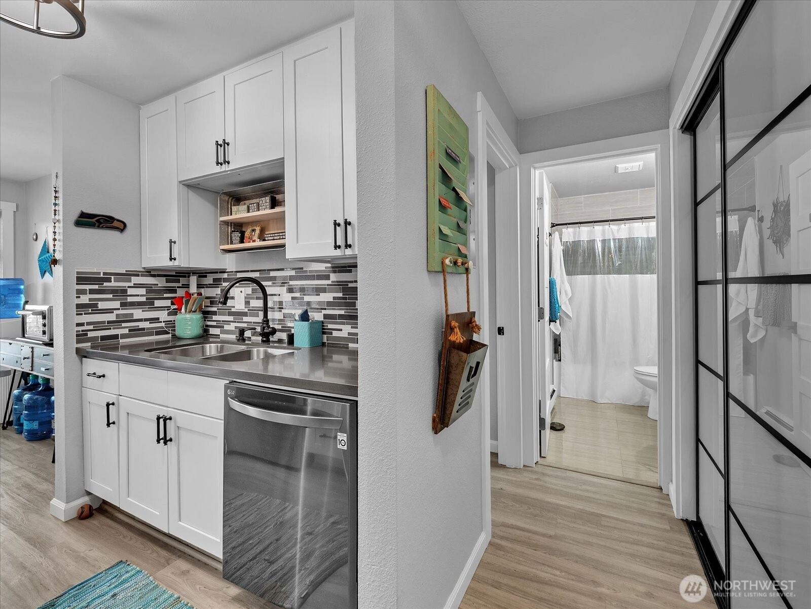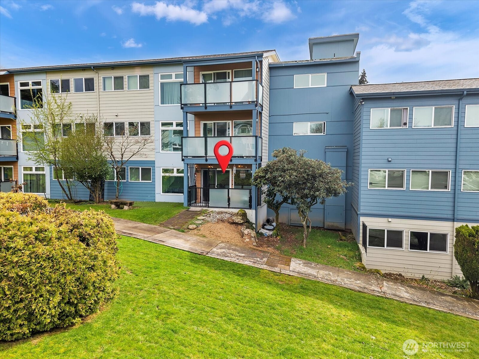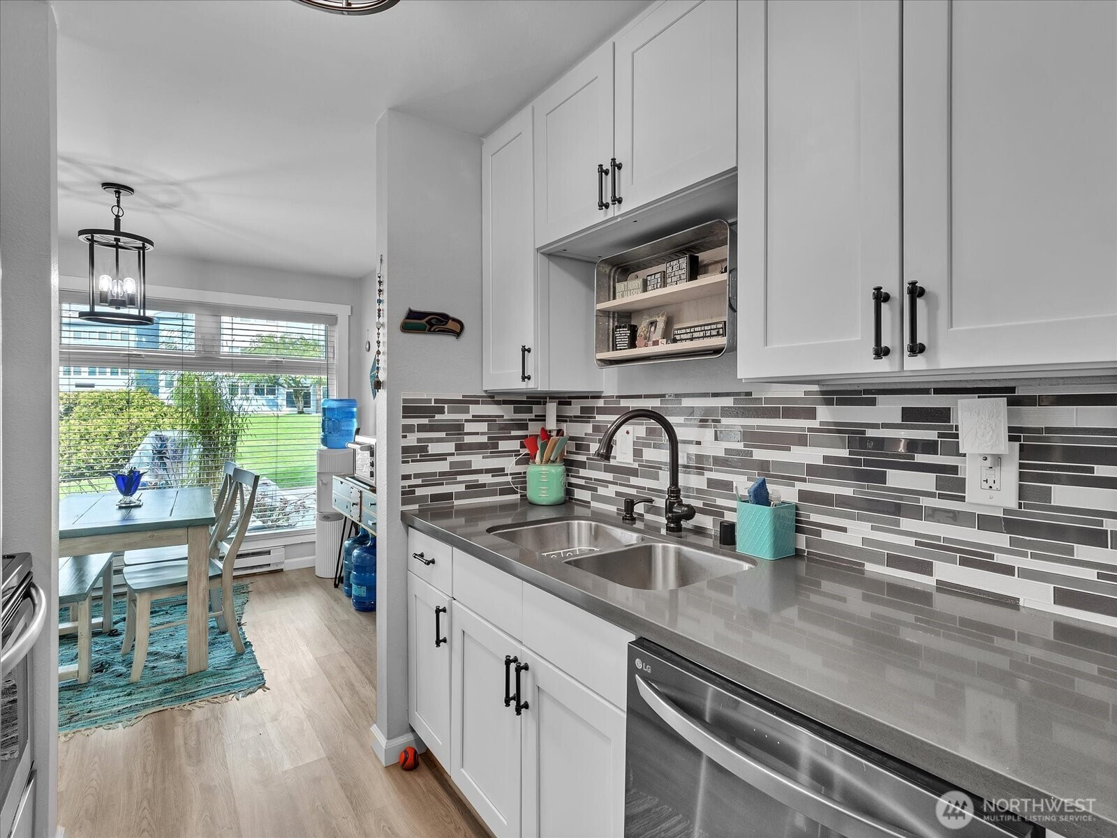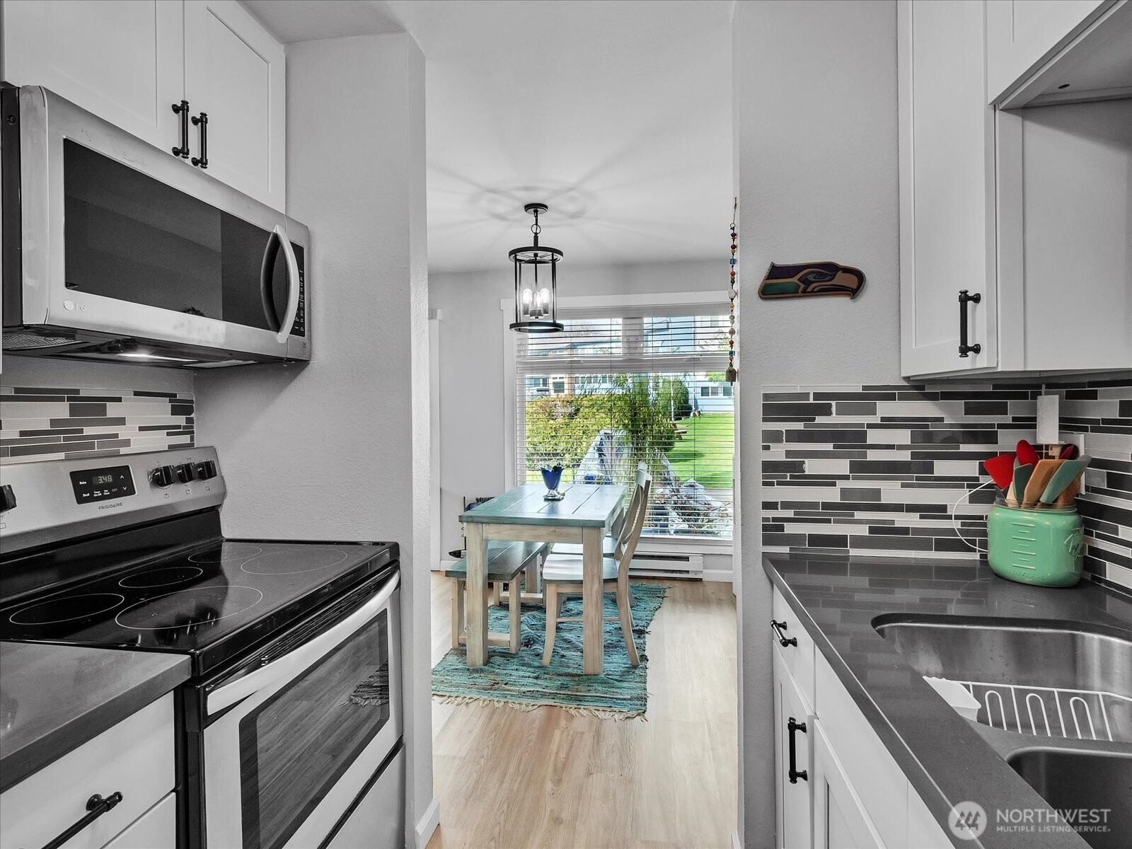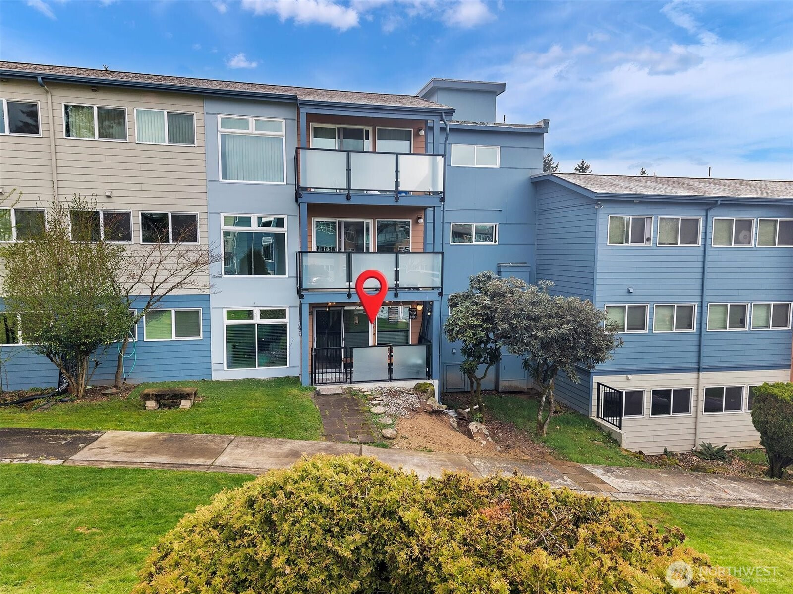 Beautifully renovated 1 bed 1 bath ground floor unit, NO STAIRS, in a well maintained community. The light-filled home has been fully updated with new triple-pane windows, new flooring, walls, baseboards, and in-ceiling lighting. The modern Kitchen features granite countertops, tile backsplash, and new appliances. The bathroom has been refreshed with a resurfaced tub and tile finishes that complement the home's design. Additional upgrades include new hardware and fixtures throughout, closet organizers, coordinated blinds, newer electrical panel and water heater and updated plumbing. Enjoy the convenience of washer/dryer hookup, a second front door for added security and dedicated parking space just outside the unit. This home may also be offered furnished, providing a turnkey opportunity. The community has undergone major renovations from 2020-2022 including new roof, gutters, siding, patios, windows, main electrical panels and plumbing. Future improvements planned include parking resurfacing and upgraded landscaping with in ground sprinklers. Special assessment has been paid keeping the dues lower than other units. Ideally located with easy access to Sea-Tac airport, I-5 and I-405, making comminuting and travel simple. A move in ready home offering comfort, style and convenience.