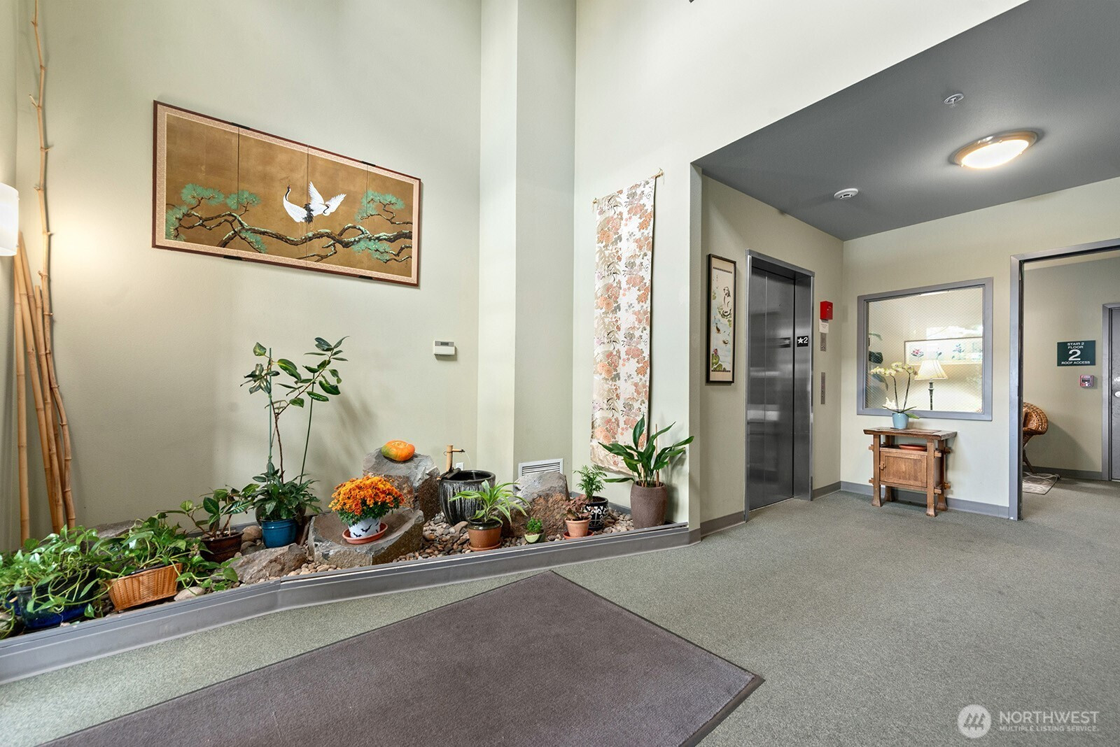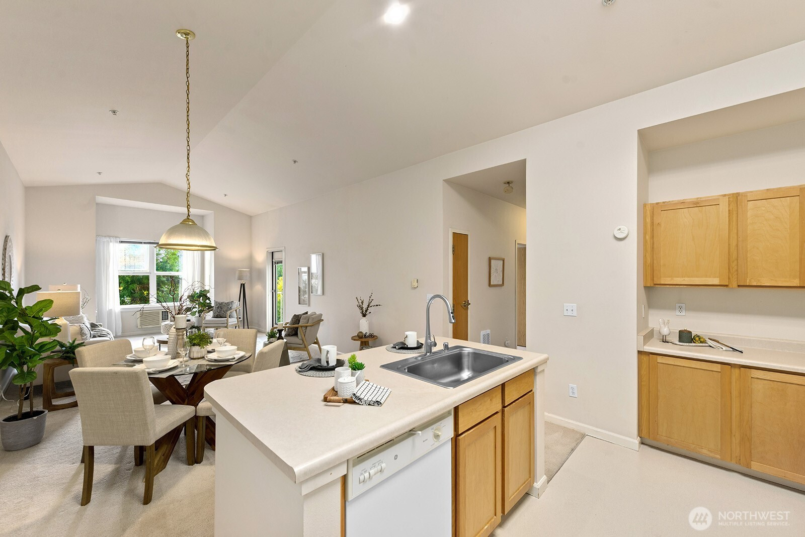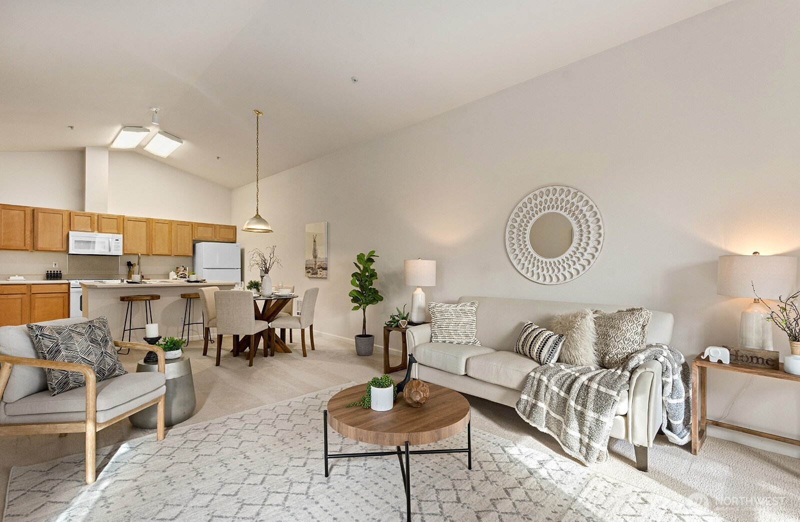 Discover the perfect blend of comfort and convenience in this vibrant 55+ Midori Condominium in Central Seattle. This spacious top-floor, one-level condo with soaring vaulted ceilings features an inviting open floor plan filled with natural light. The generous kitchen offers ample space for cooking and entertaining. The primary bedroom includes a walk-in closet and en-suite. Enjoy the peace of mind that comes with secure building access, dedicated, garage parking space, extra storage, and a convenient elevator for easy accessibility. Nestled in a prime location with walk score of 93 and transit score 87. Easy stroll to parks, shopping and Bon Odori Festival. Ride First Hill Streetcar to appointments, lunch and fun!