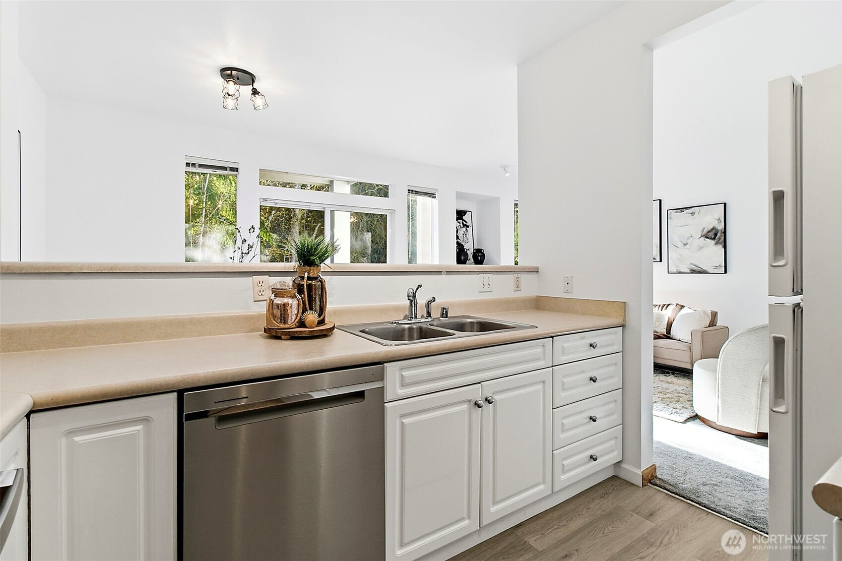 Welcome to this beautifully refreshed one-bedroom, one-bath condo in the highly desirable Maplewood neighborhood at Molasses Creek. Thoughtfully updated with brand-new flooring and fresh paint throughout, this pristine second-floor unit offers a bright, open layout that lives larger than its footprint. The spacious living area flows seamlessly into the dining space and kitchen, creating an inviting environment perfect for everyday living or entertaining. Peaceful greenbelt setting off your deck. Whether you’re a first-time buyer, downsizing, or seeking low-maintenance living, this home offers comfort, convenience, and exceptional value. Residents enjoy access to resort-style amenities including a clubhouse, exercise room, game room, pool, spa, and playground. Perfectly positioned across the street from Maplewood Golf Course and conveniently located near shopping, dining, parks, and easy access to I-405, commuting and everyday errands are effortless. HOA dues include water, sewer, and garbage, making ownership simple and stress-free.
