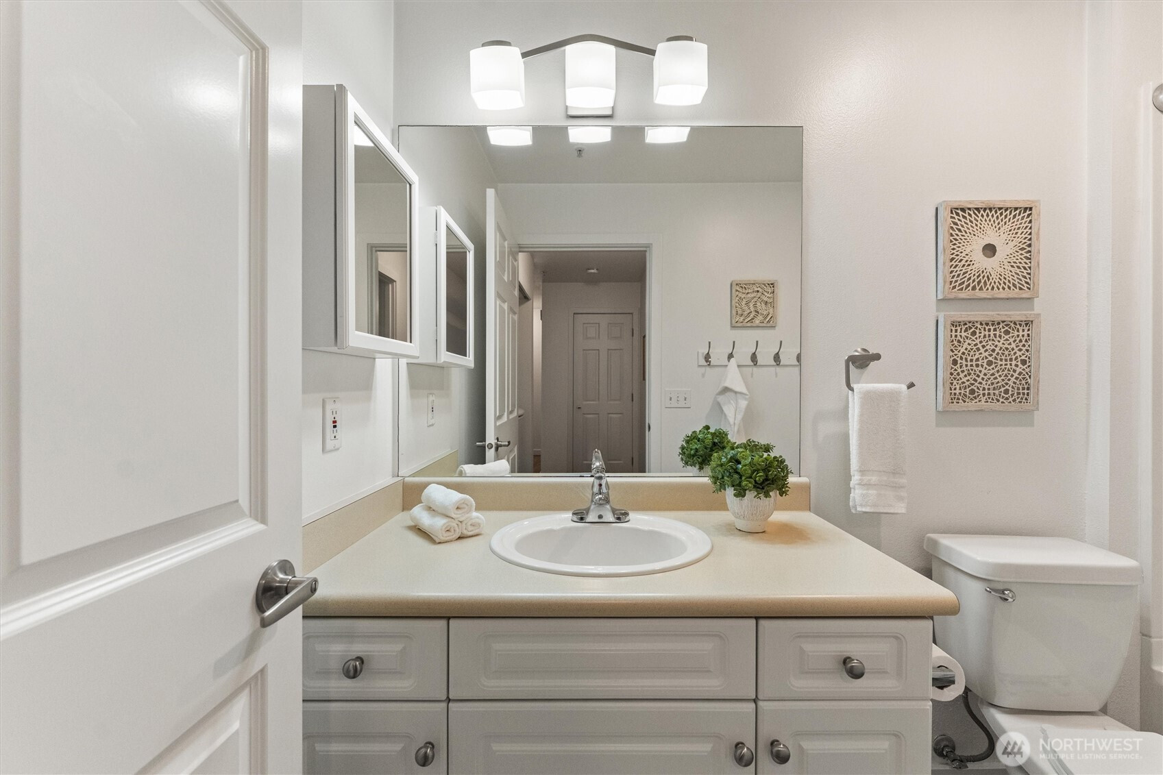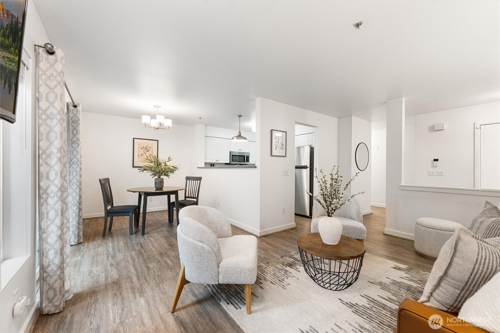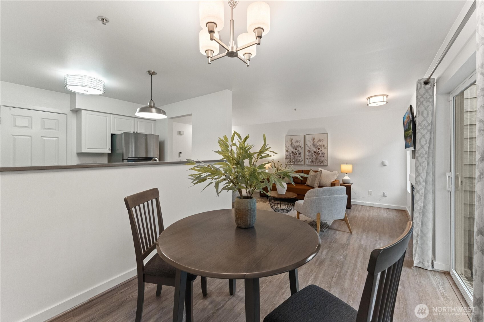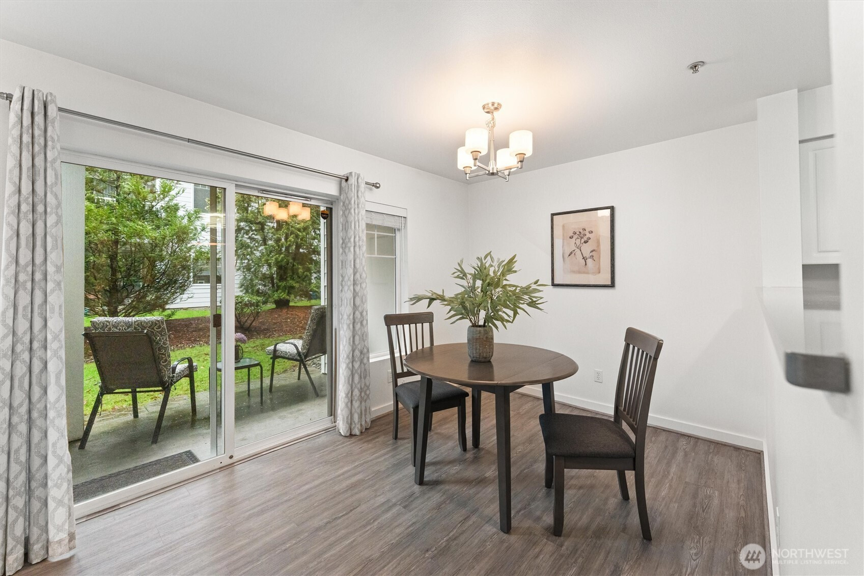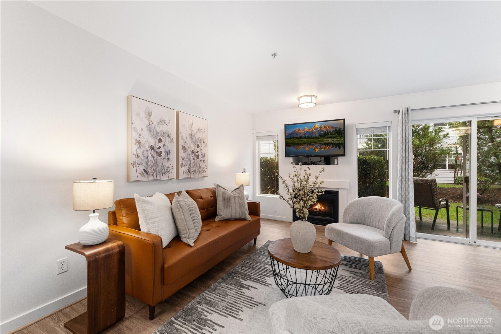 A refined first-floor Molasses Creek home, artfully reimagined. This fully remodeled, move-in-ready residence offers a sophisticated open layout w/elegant living and dining spaces, a cozy gas fireplace, and beautifully designed kitchen w/quartz countertops, full-size stainless-steel appliances and walk-in pantry. The private primary suite features a walk-in closet & full bath, plus a convenient in-home utility area with washer and dryer. Sun-filled interiors open to a walk-out patio w/private storage and a detached garage. Enjoy resort-style amenities including a pool, hot tub, clubhouse, fitness center, and event cabana, all set across from Maplewood Golf Course and the Cedar River Trail, with easy access to I-405 and nearby conveniences.