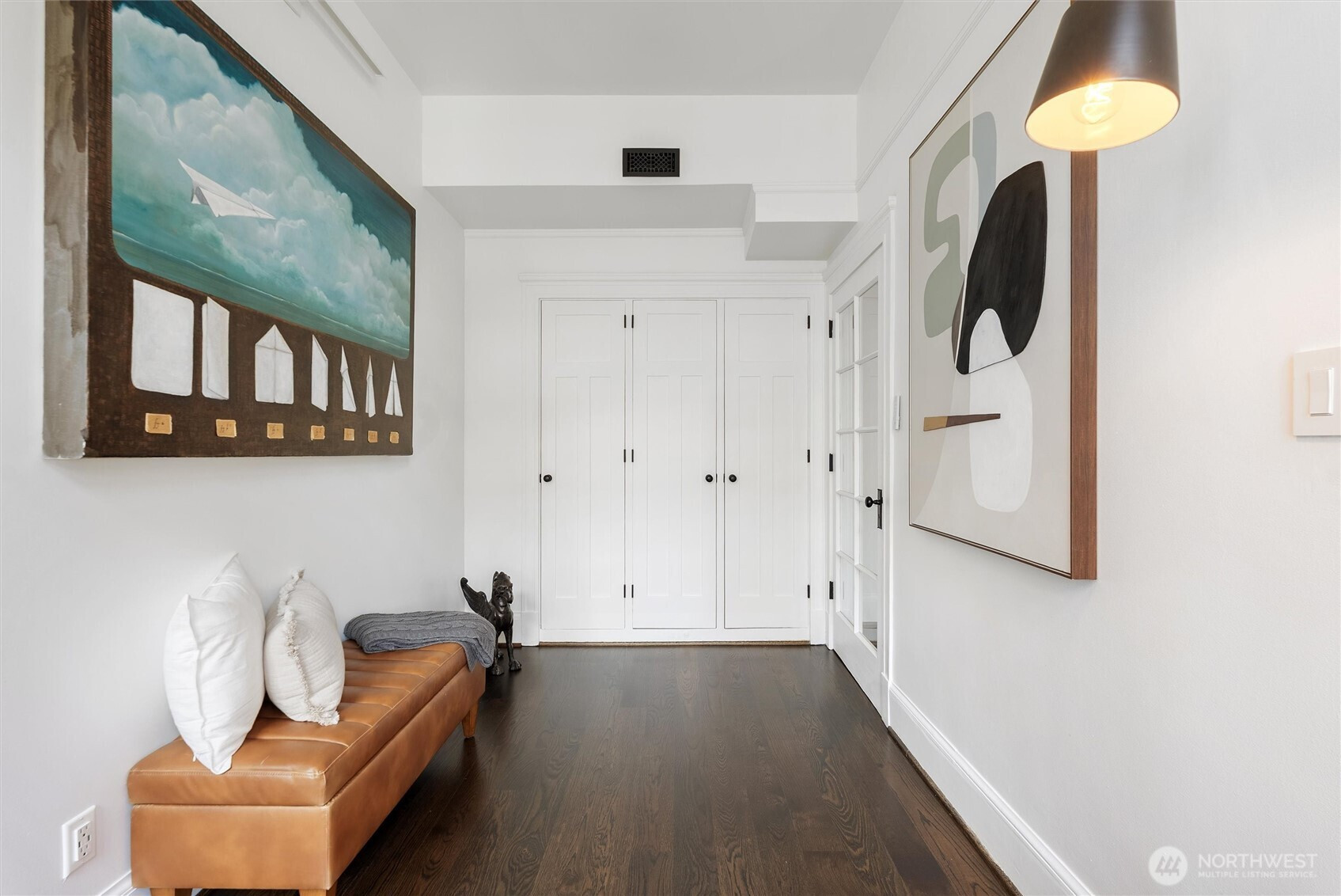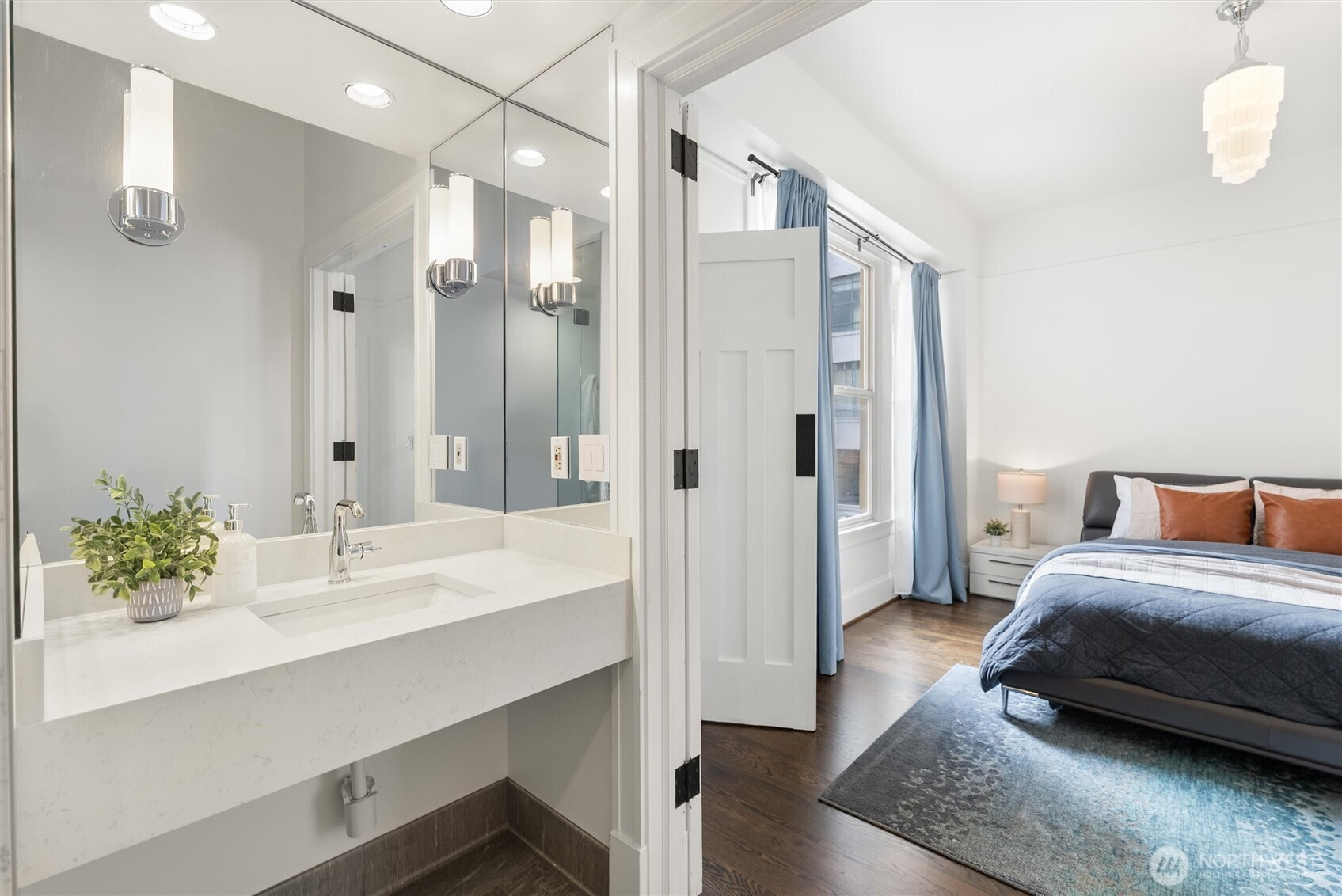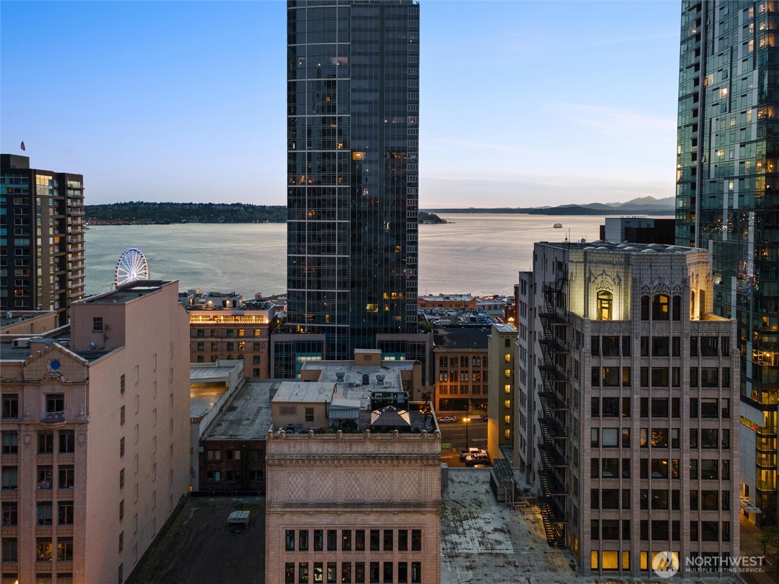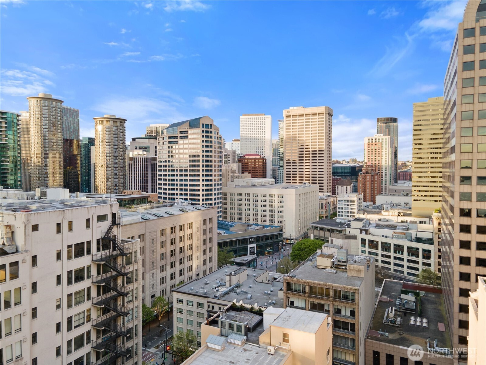 Beautifully updated 3-bedroom, 1.75-bath condo in a historic downtown Seattle building just one block from Pike Place Market. This 1,377 sq. ft. home blends timeless character with modern style and feels like an elegant apartment in Europe. Soaring ceilings, oversized windows, and rich walnut hardwood floors create a warm, light-filled feel. The spacious living and dining areas flow into a designer kitchen with marble counters, sleek cabinetry, premium appliances, and a stunning vintage Seattle map mural. The flexible floor plan includes three spacious bedrooms, beautifully updated baths, and two separate entrances—allowing the condo to easily be divided into two apartments. Perfect for multigenerational living, rental income, or adding a smart investment property to your portfolio for the price of one. Unbeatable location near the waterfront, shopping, dining, entertainment, and all the excitement of downtown Seattle—including the upcoming FIFA World Cup 2026.