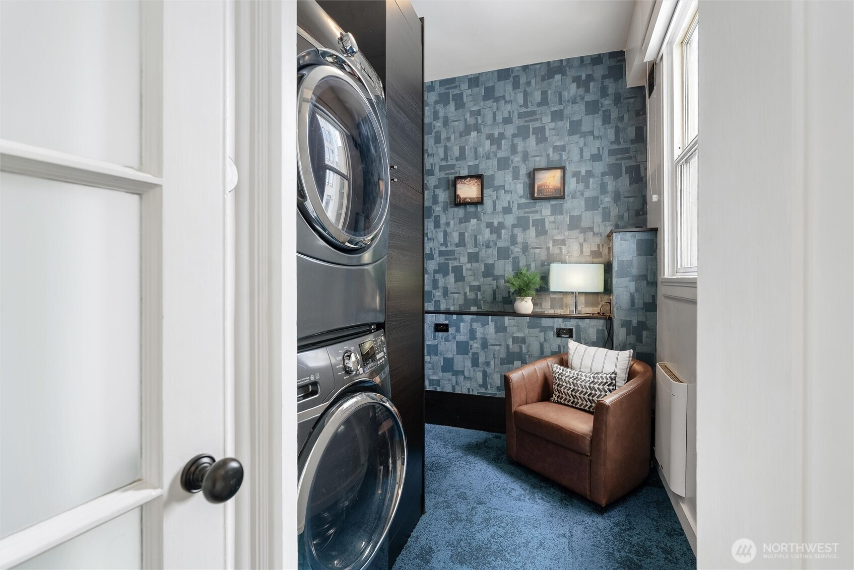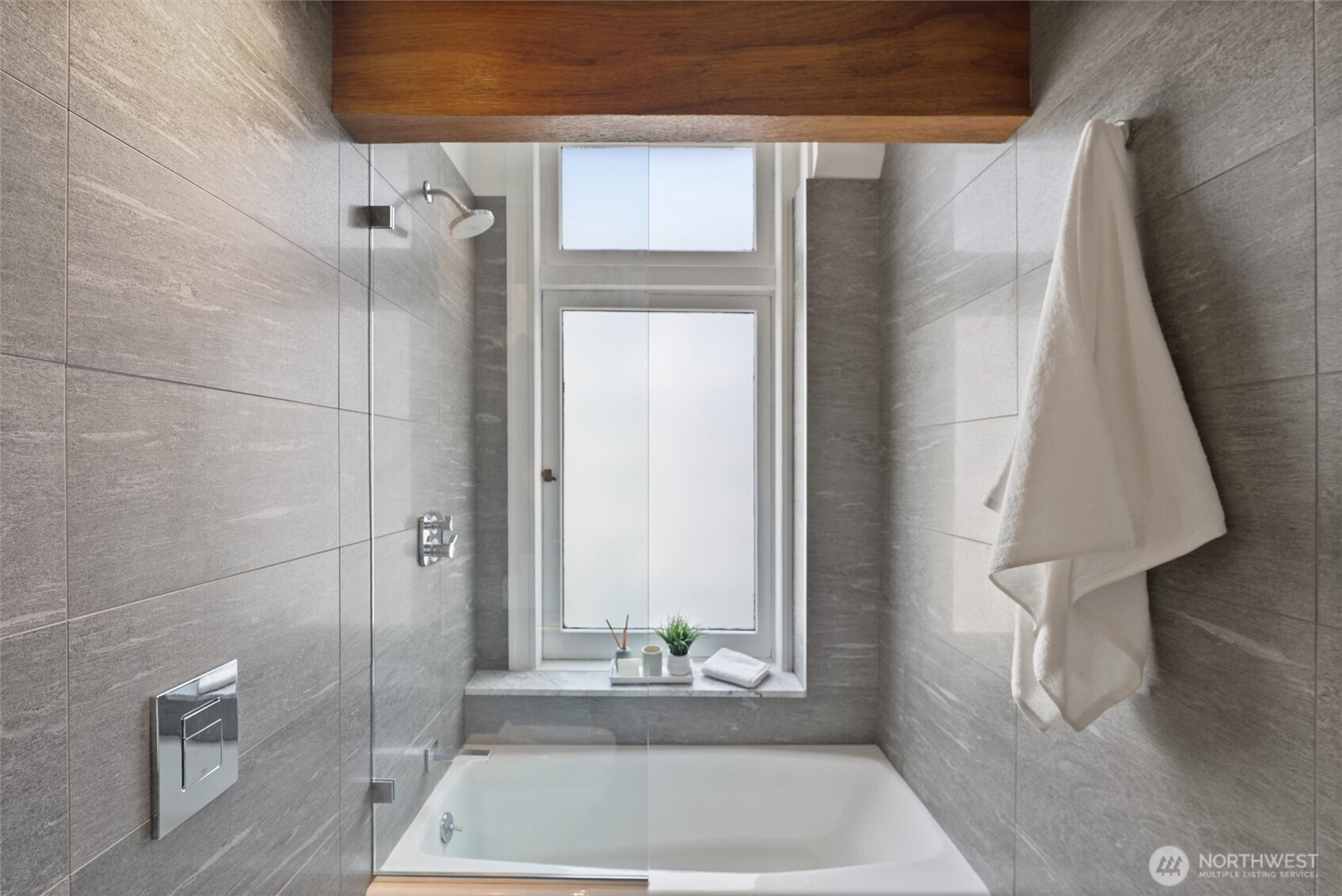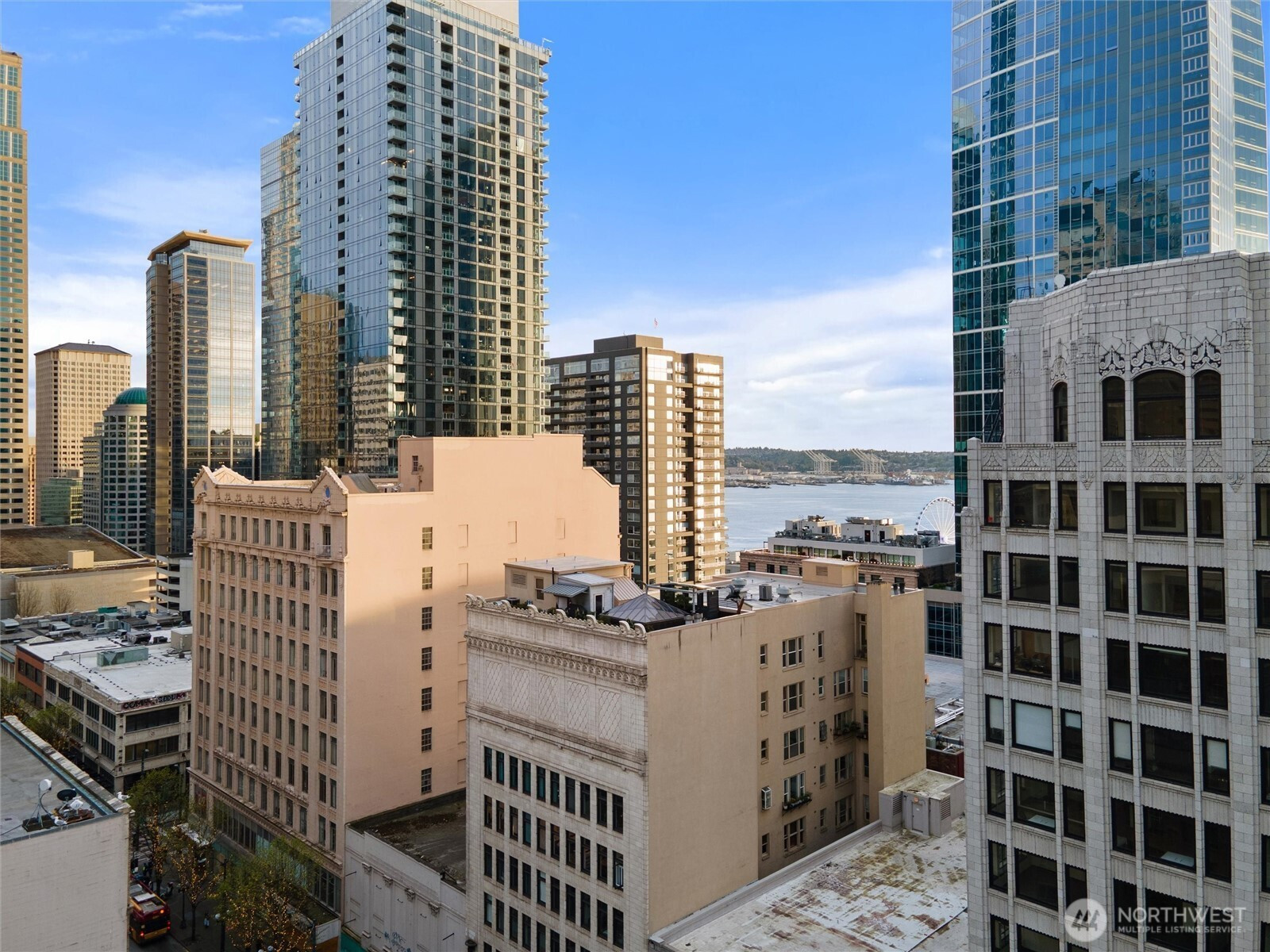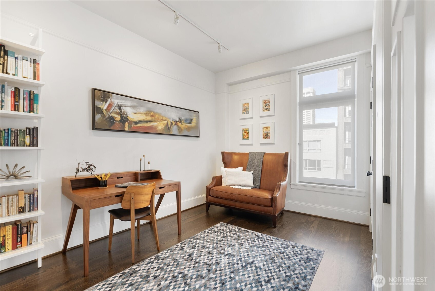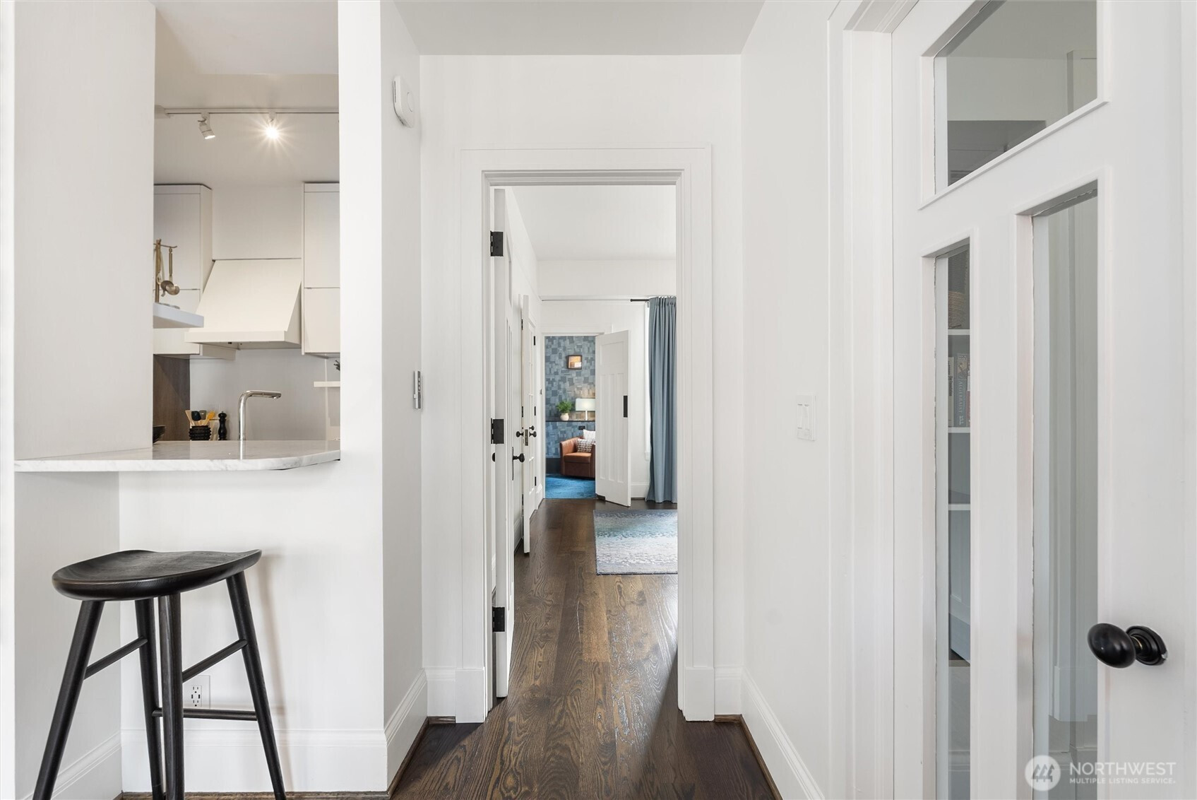Beautifully updated 3-bedroom, 1.75-bath condo in a historic downtown Seattle building just one block from Pike Place Market. This 1,377 sq. ft. home blends timeless character with modern style and feels like an elegant apartment in Europe. Soaring ceilings, oversized windows, and rich walnut hardwood floors create a warm, light-filled feel. The spacious living and dining areas flow into a designer kitchen with marble counters, sleek cabinetry, premium appliances, and a stunning vintage Seattle map mural. The flexible floor plan includes three spacious bedrooms, beautifully updated baths, and two separate entrances—allowing the condo to easily be divided into two apartments. Perfect for multigenerational living, rental income, or adding a smart investment property to your portfolio for the price of one. Unbeatable location near the waterfront, shopping, dining, entertainment, and all the excitement of downtown Seattle—including the upcoming FIFA World Cup 2026.