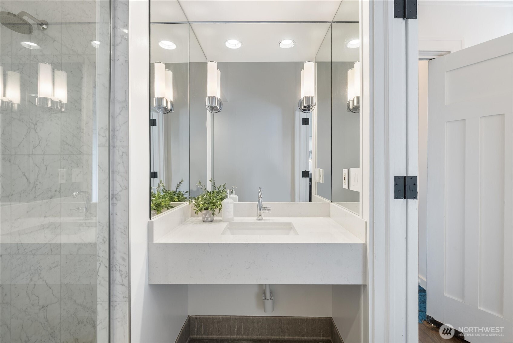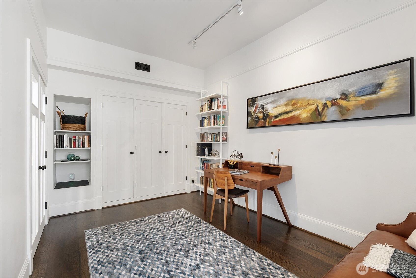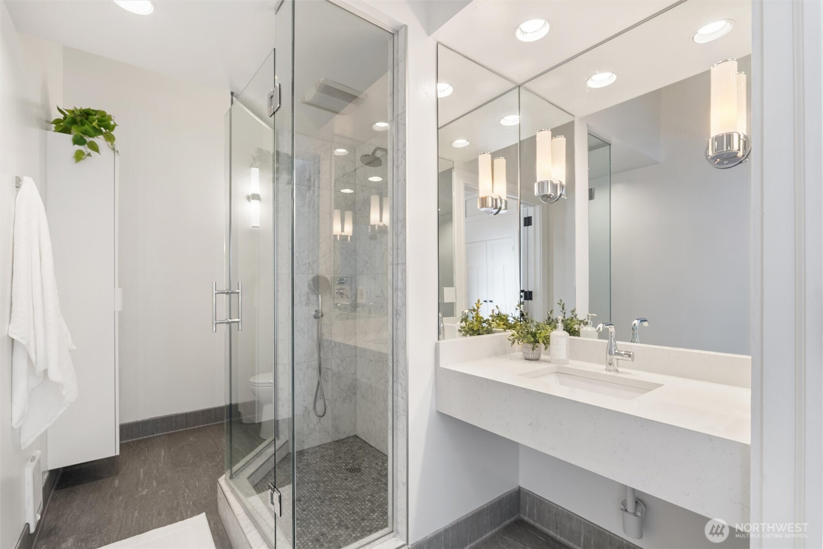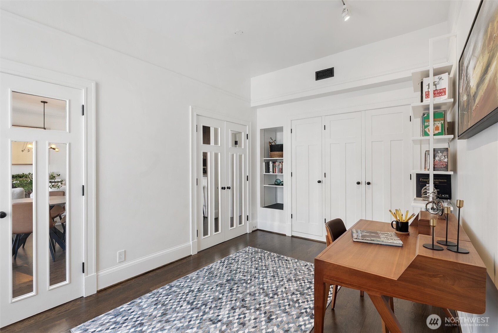 Beautifully updated 3-bedroom, 1.75-bath condo in a historic downtown Seattle building just one block from Pike Place Market. This 1,377 sq. ft. home blends timeless character with modern style and feels like an elegant apartment in Europe. Soaring ceilings, oversized windows, and rich walnut hardwood floors create a warm, light-filled feel. The spacious living and dining areas flow into a designer kitchen with marble counters, sleek cabinetry, premium appliances, and a stunning vintage Seattle map mural. The flexible floor plan includes three spacious bedrooms, beautifully updated baths, and two separate entrances—allowing the condo to easily be divided into two apartments. Perfect for multigenerational living, rental income, or adding a smart investment property to your portfolio for the price of one. Unbeatable location near the waterfront, shopping, dining, entertainment, and all the excitement of downtown Seattle—including the upcoming FIFA World Cup 2026.