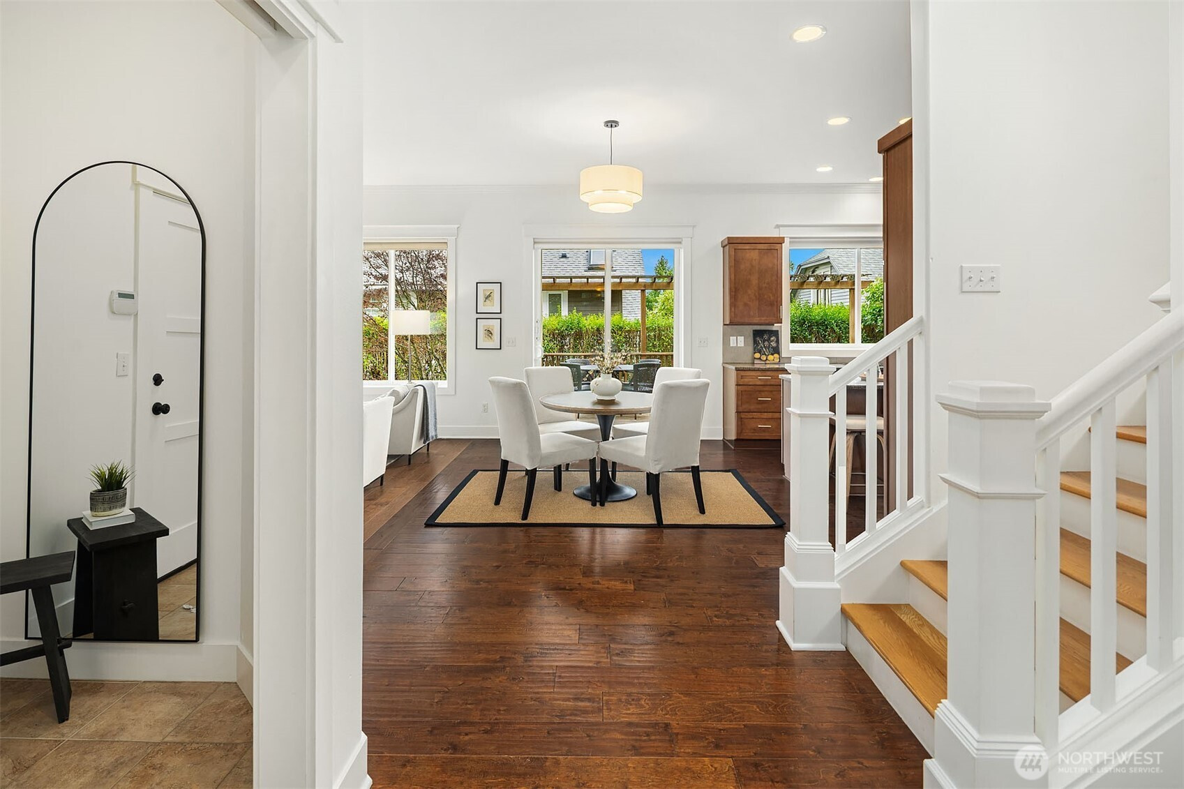 Built in 2011, this immaculate 4-bedroom, 3-bath Madrona home welcomes you with abundant natural light and sweeping views of Lake Washington, the mountains, and downtown Bellevue. Tall ceilings and a thoughtful floor plan elevate everyday living with all square footage finished and above grade. The main floor flows beautifully, with the kitchen, dining, and living room connecting seamlessly. The kitchen offers generous storage and workspace, an island with seating and stainless-steel appliances - including a Viking range and hood. Just off the main living spaces, a spacious Ipe deck invites outdoor dining, lounging, and effortless entertaining. A flexible main-floor bedroom works perfectly as a guest room or home office, and a well-placed mudroom leads directly to the attached 1-car garage (wired for level 2 EV charging) and additional off-street parking. Upstairs, 3 bedrooms and 2 baths include a luxurious primary suite featuring a large spa-like bath, a soaking tub with lake views, a private balcony, and an oversized walk-in closet. The second-floor family room is a standout space—framed by stunning views and its own balcony, it’s ideal as a media room, playroom, or quiet retreat. This prime Madrona location places you just steps from neighborhood shops, restaurants, cafés, parks, schools and the lake. With an easy commute in nearly any direction, this home offers the perfect blend of comfort, convenience, and modern living—everything you need, and nothing you don’t.