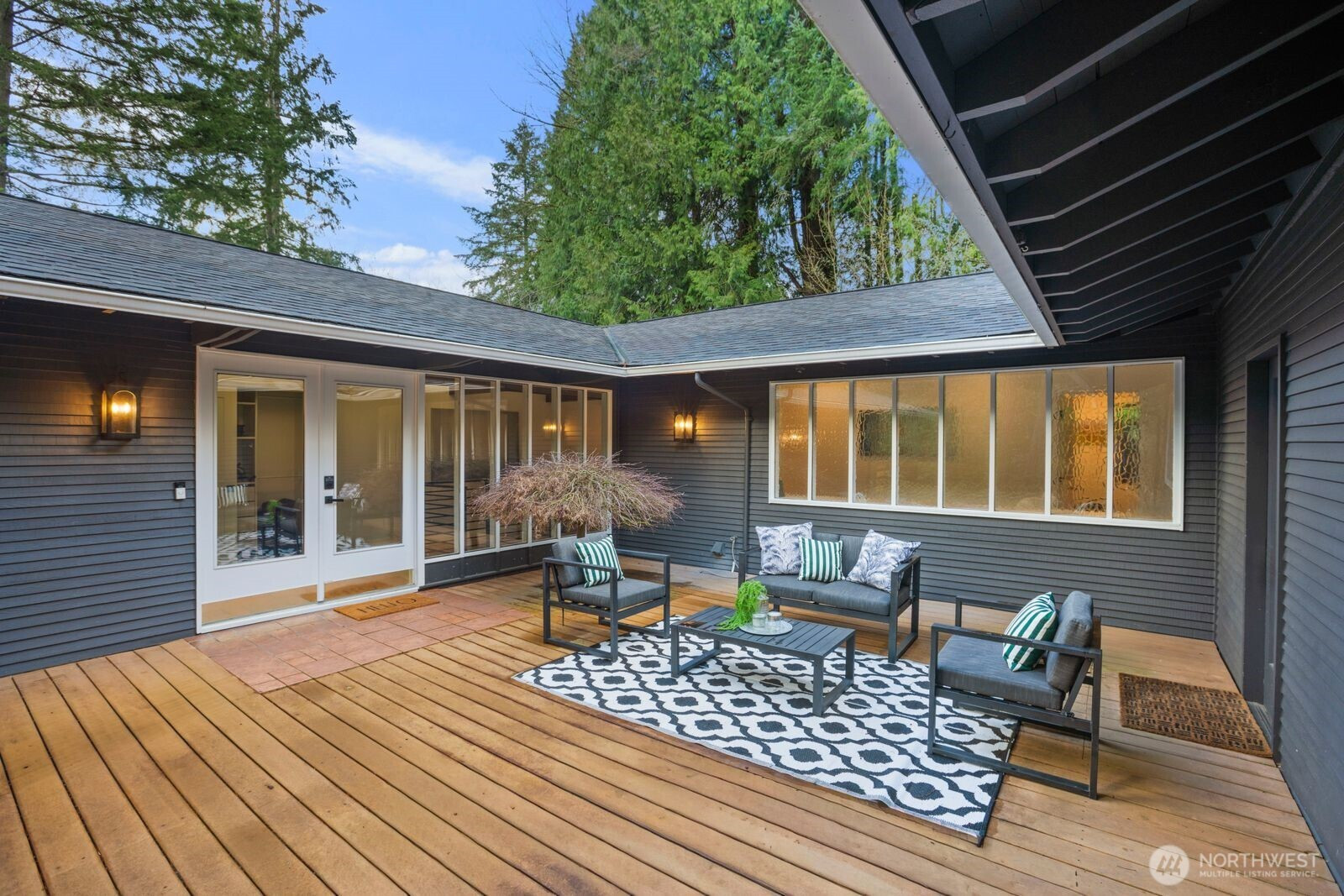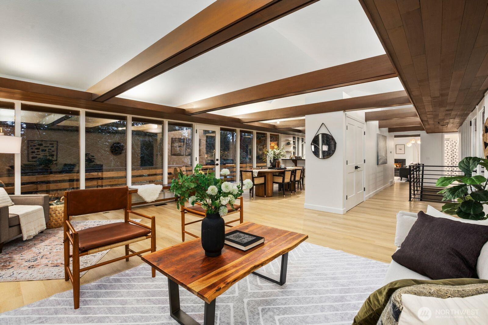 A rare offering that beautifully captures the spirit of mid-century modern design while incorporating thoughtful contemporary updates. Tucked into the sought-after Sycamore neighborhood, this home blends architectural character, privacy, & natural beauty just minutes from the heart of downtown Issaquah. Dramatic vaulted ceilings w/ wood beam accents anchor the stunning main living space, where walls of windows & an open, flowing layout create a perfect setting for everyday living & entertaining. The kitchen, dining area, and informal family room connect seamlessly, offering both comfort and style. The main level includes 3 spacious bedrooms, highlighted by a serene primary suite with a spa-inspired 5-piece bath and walk-in closet, along with a full hall bath and convenient main-level laundry. The lower level offers exceptional flexibility w/ a one-bedroom ADU complete with a separate entrance, private patio, & an updated kitchen, & bath—ideal for guests, or multigenerational living. Step outside to a lush, park-like setting featuring a level lawn area, gentle creek, & open, territorial views—an inviting backdrop that feels worlds away while remaining close to everything. Located in the highly desirable Sycamore neighborhood, just moments from charming downtown Issaquah, renowned hiking and outdoor recreation, top-rated schools, and a convenient commute. A truly special home where timeless architecture, natural surroundings, and modern comfort come together.